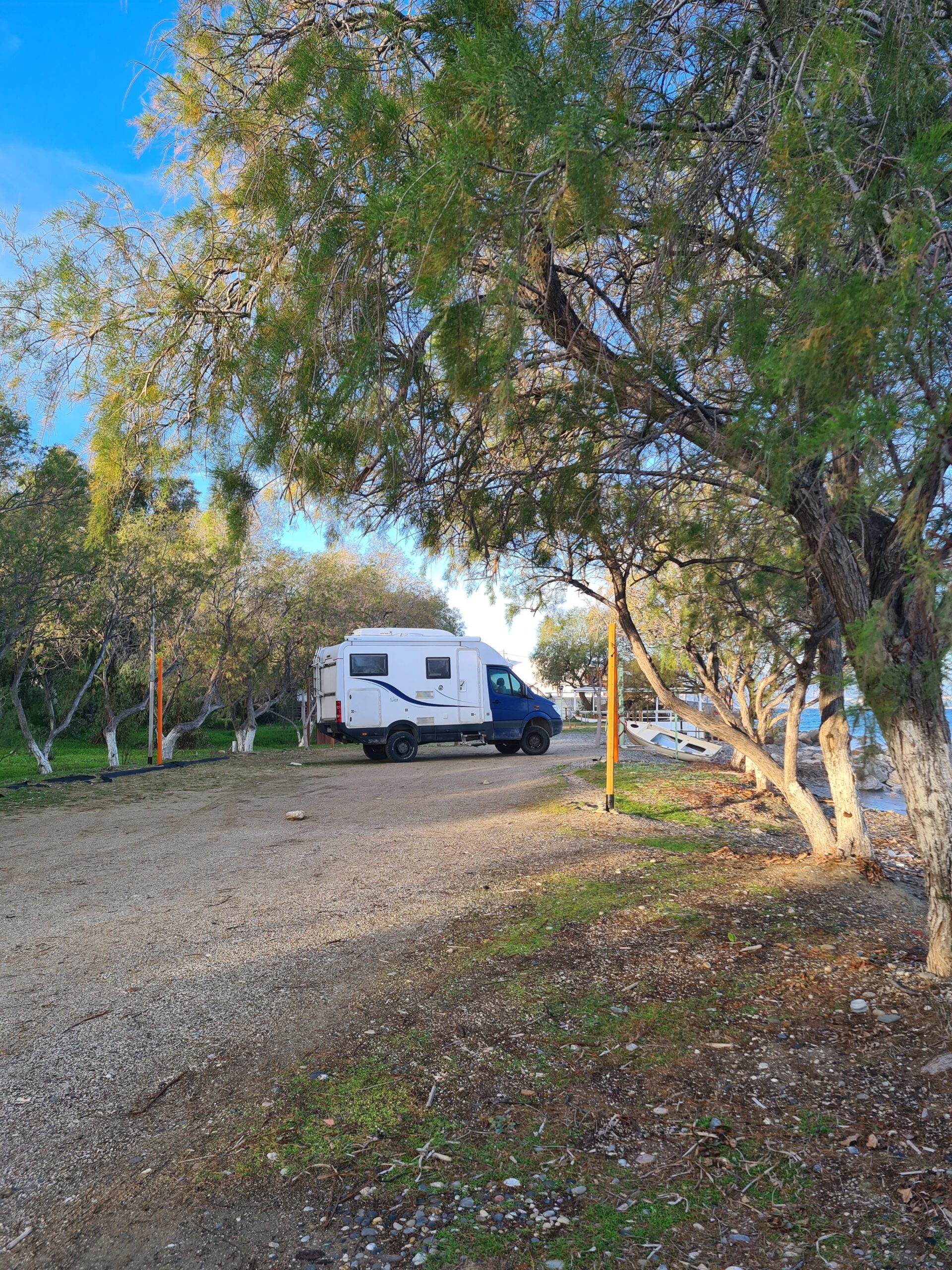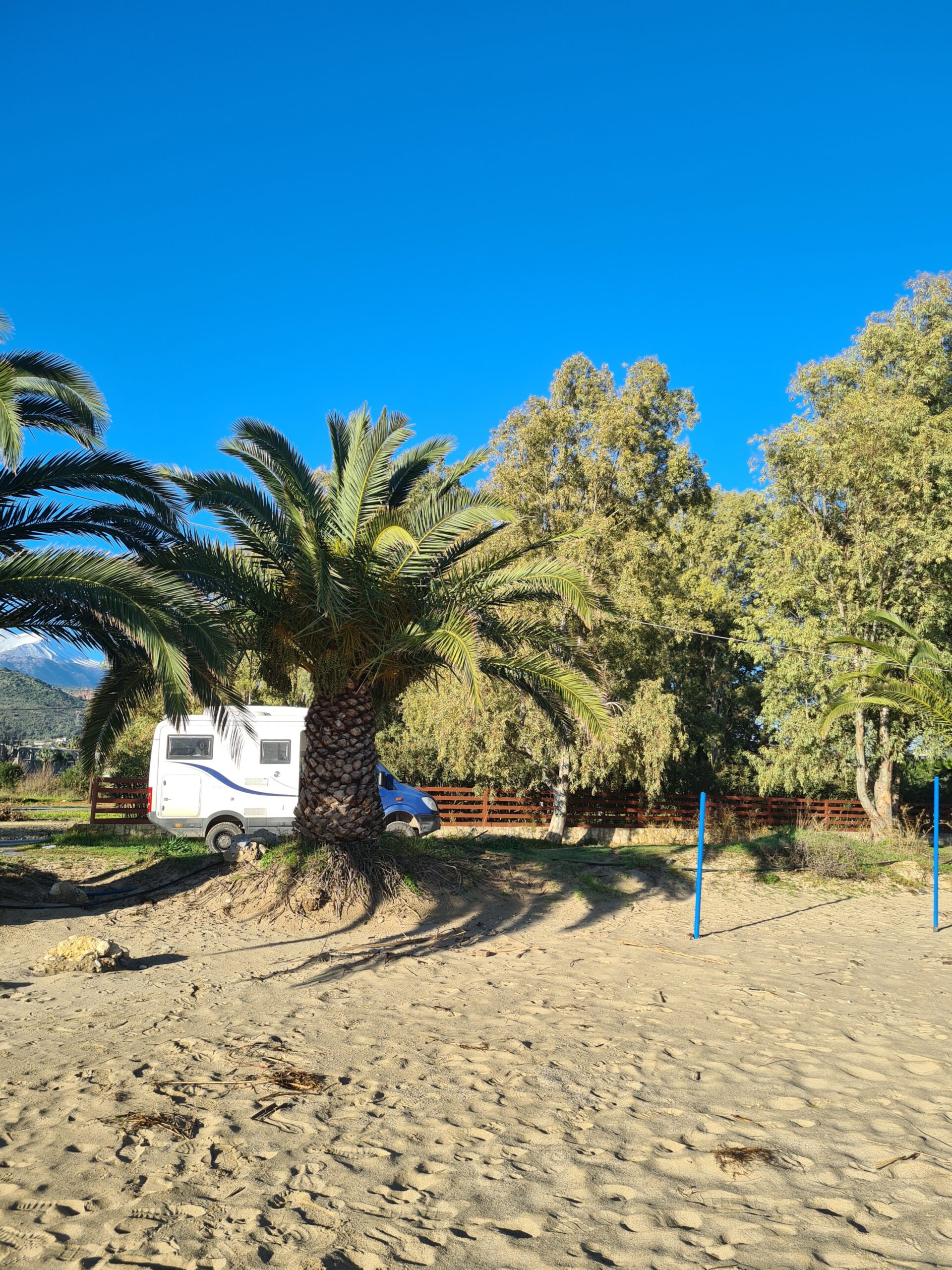 Wir hatten Glück mit unserem ruhigen Stellplatz unter Palmen.