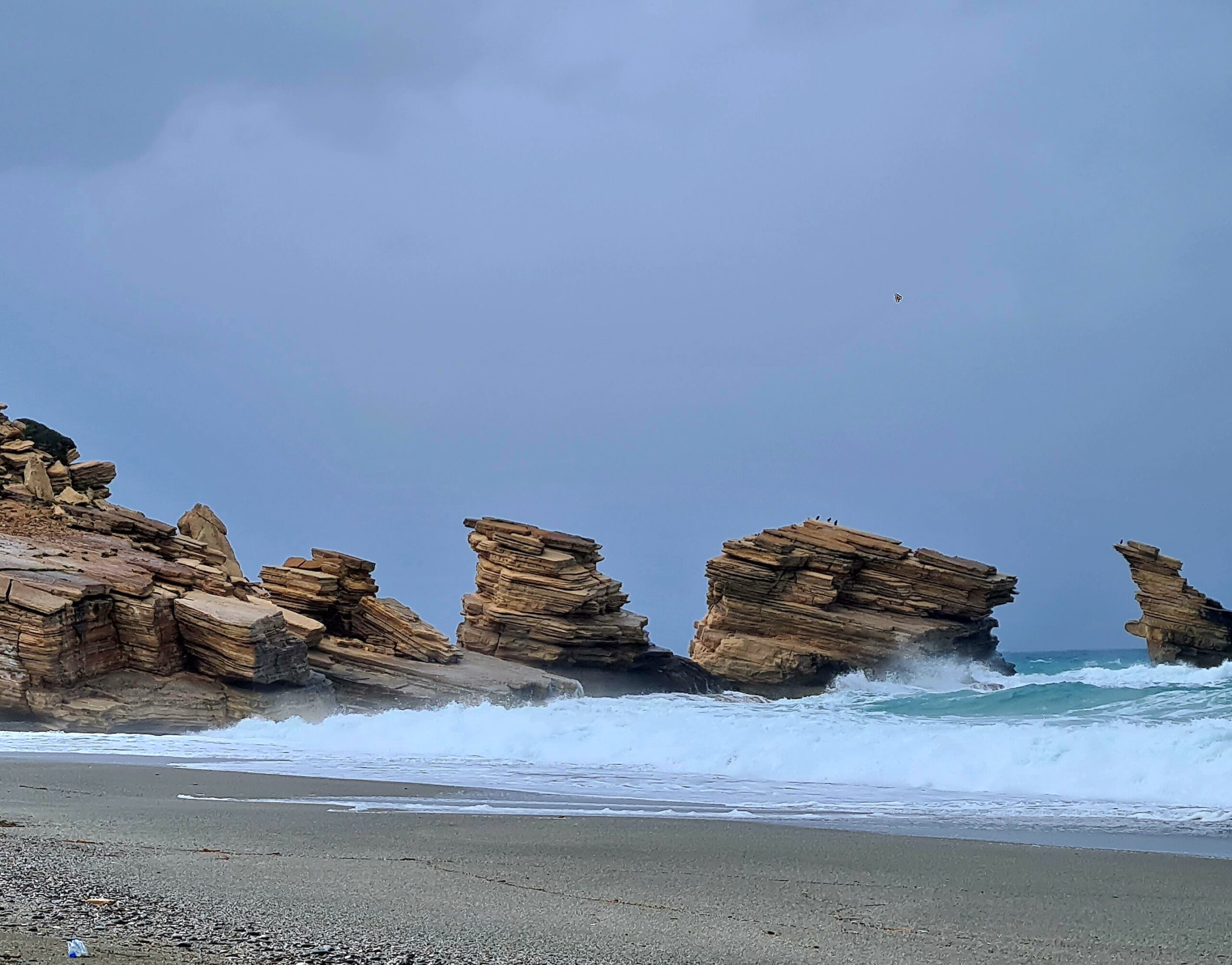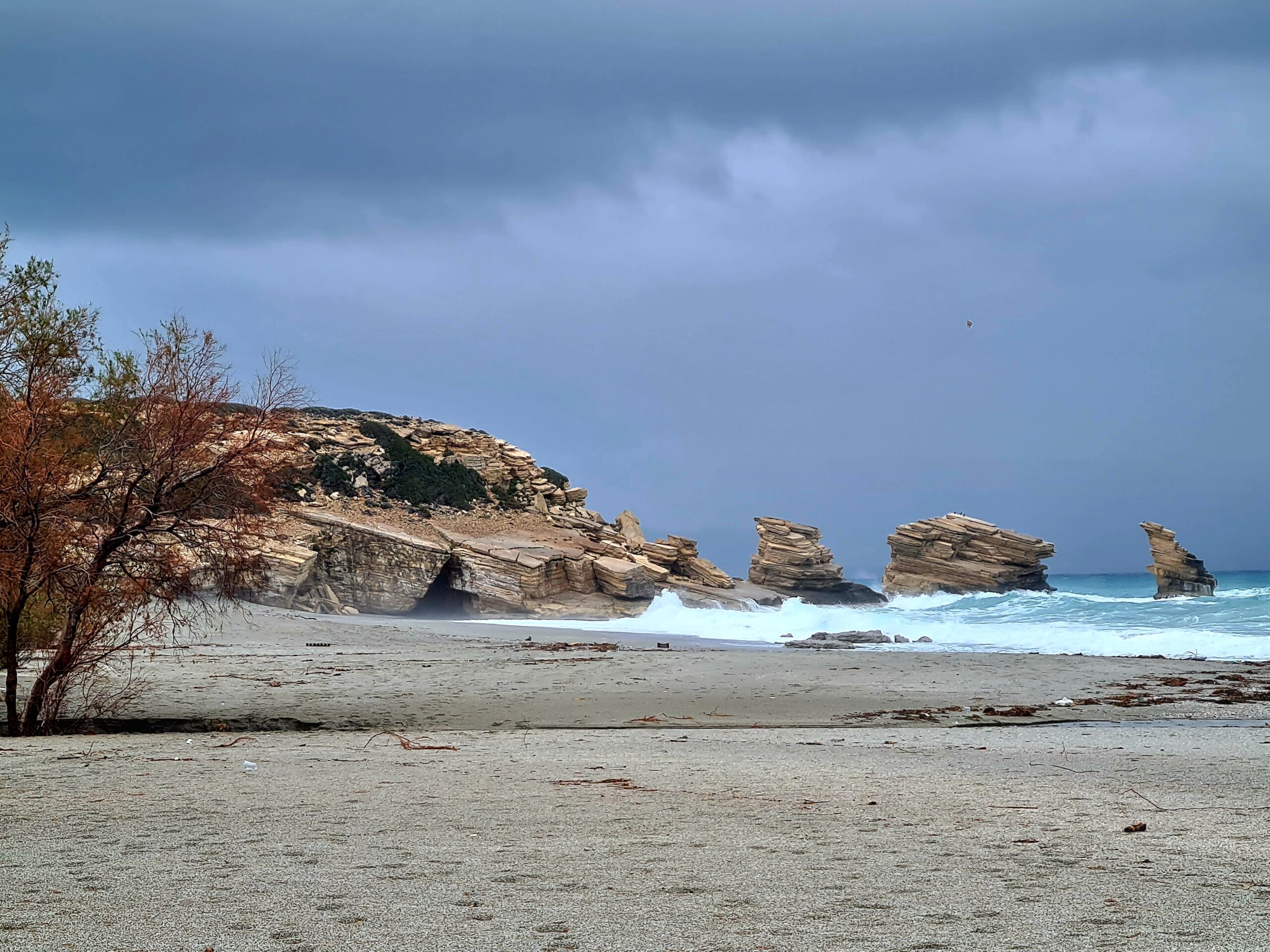 Es zieht sich immer mehr zu und einen Strandspaziergang zu den Tripetrasfelsen müssen wir abbrechen.