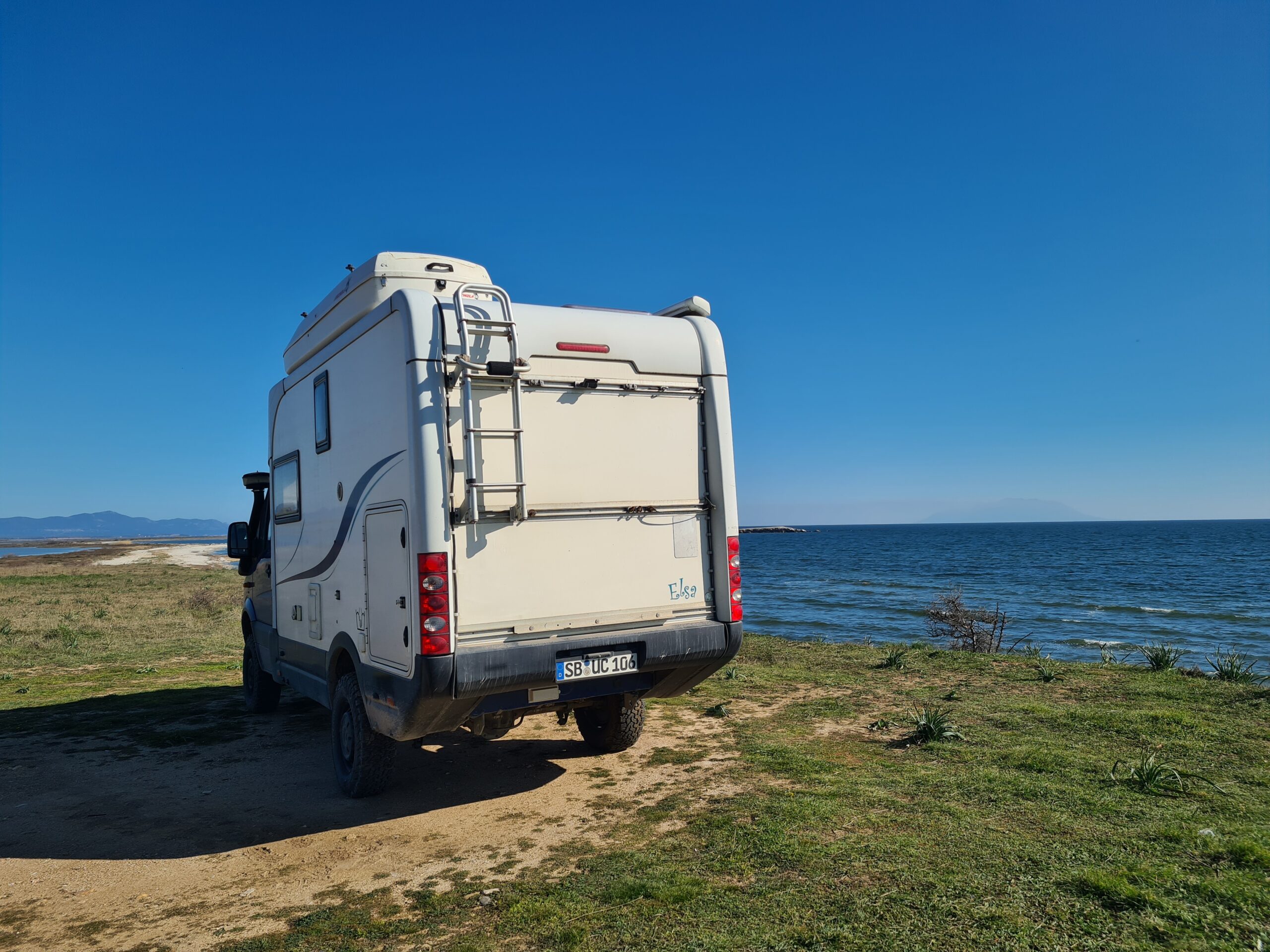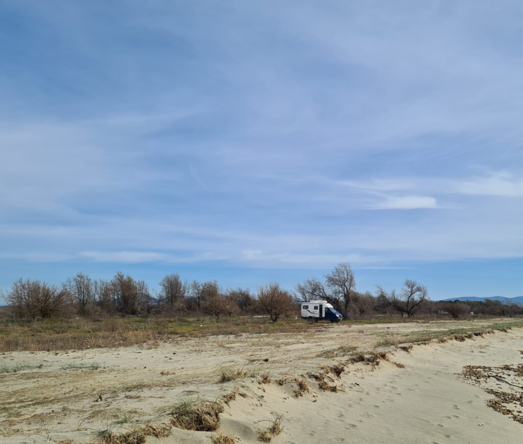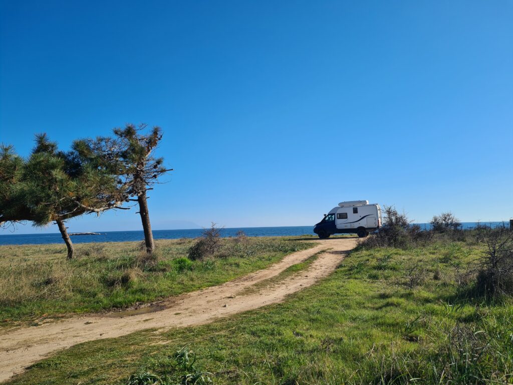 Nach der Mittagspause fahren wir noch ein paar Kilometer bis zu unserem Übernachtungsplatz Paralia Gomati.