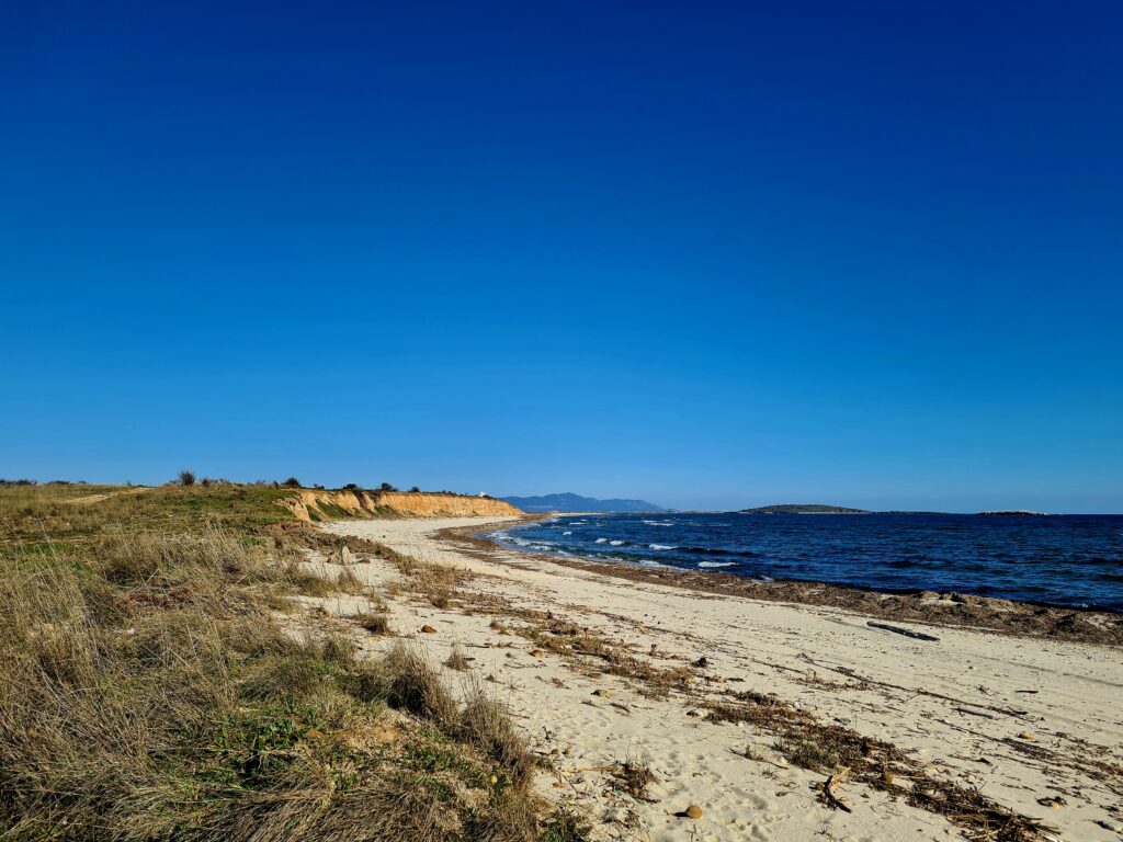 Nach dem Frühstück machen wir noch einen schönen Spaziergang am Strand von Develiki.