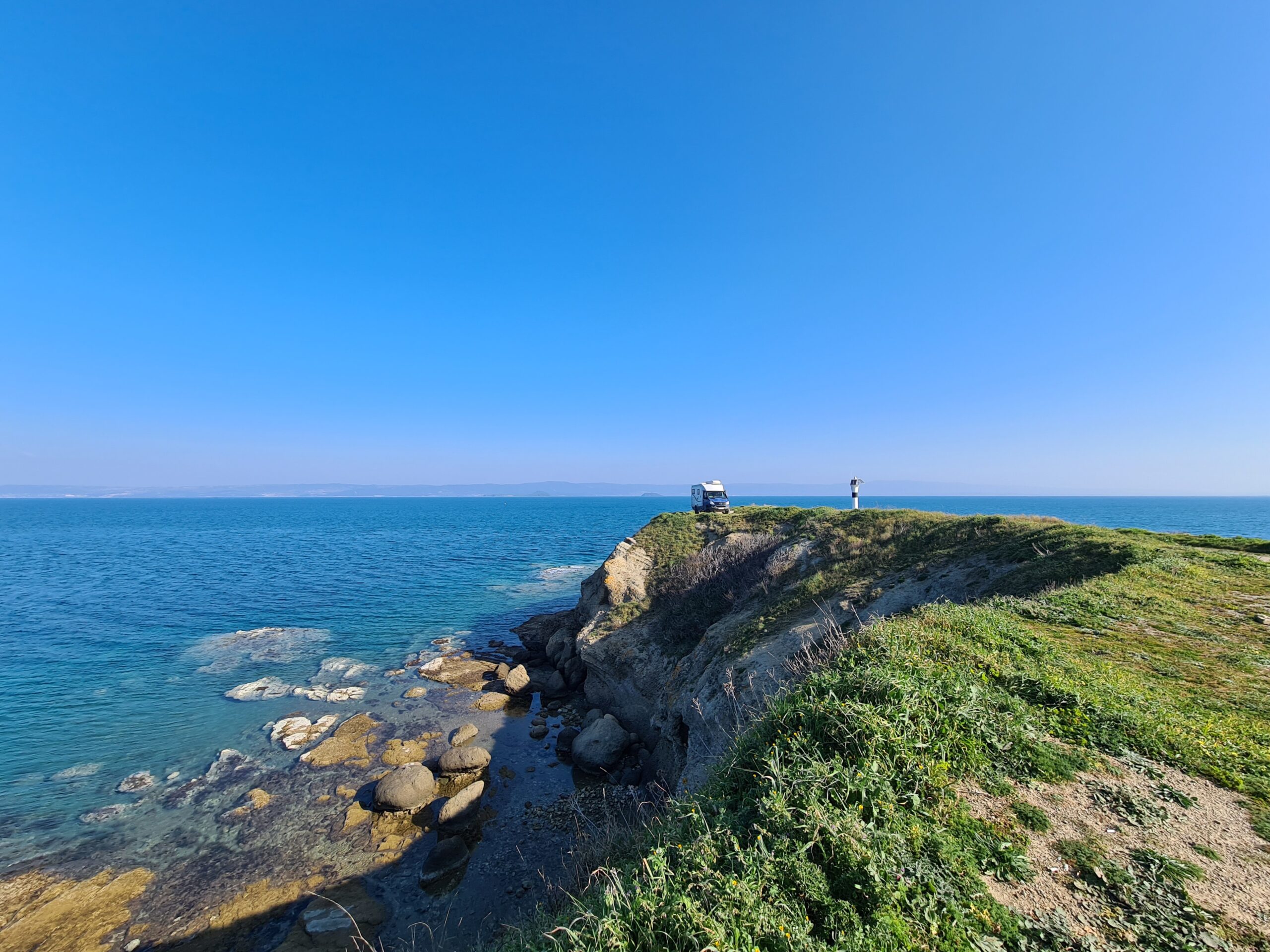 Nur 14 Kilometer weiter finden wir einen ruhigen Stellplatz am Strand.