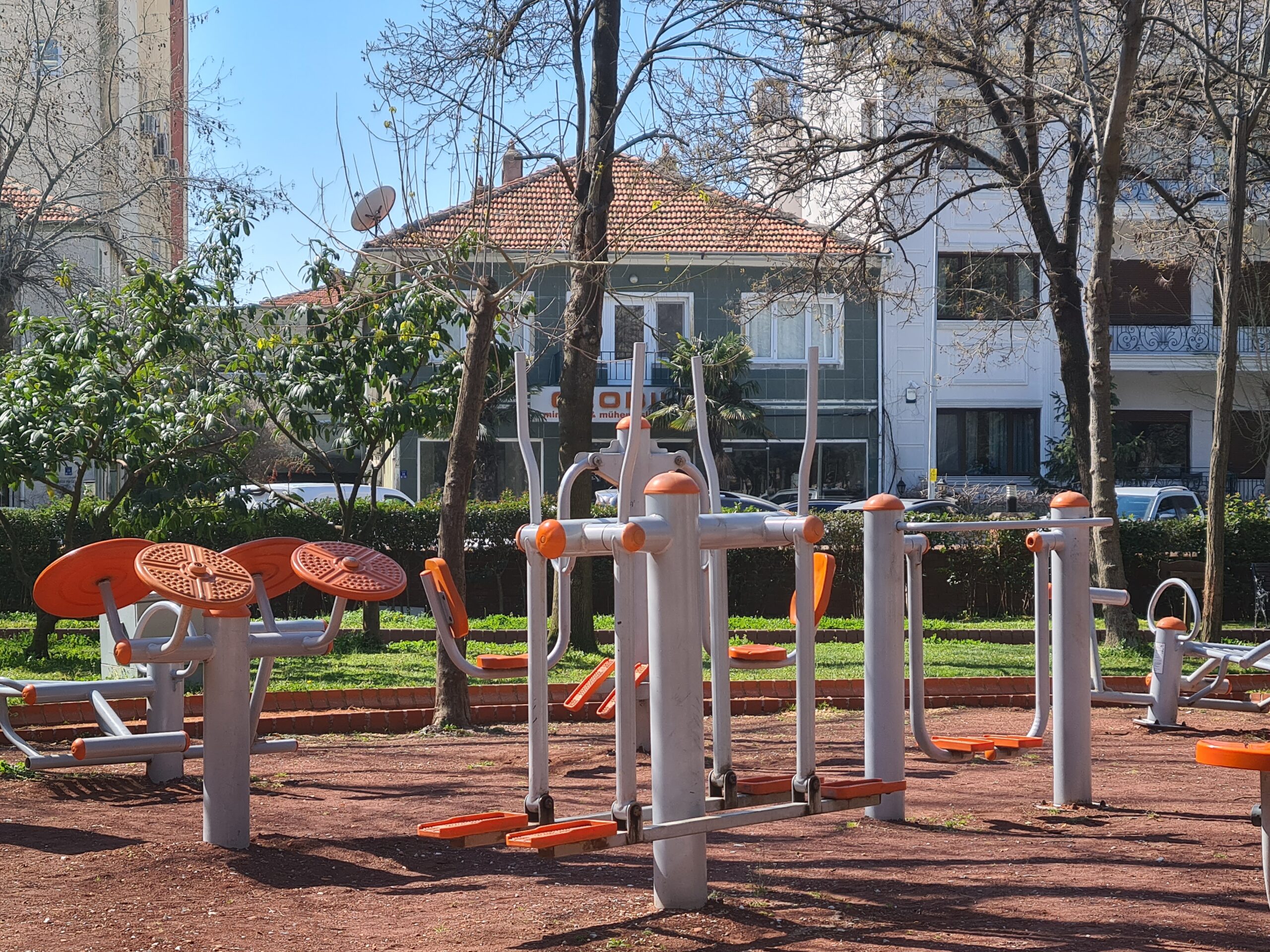 Wir parken neben einem Park mit tollen Spielgeräten. Solche Spielplätze habe ich in Deutschland noch nicht gesehen.
