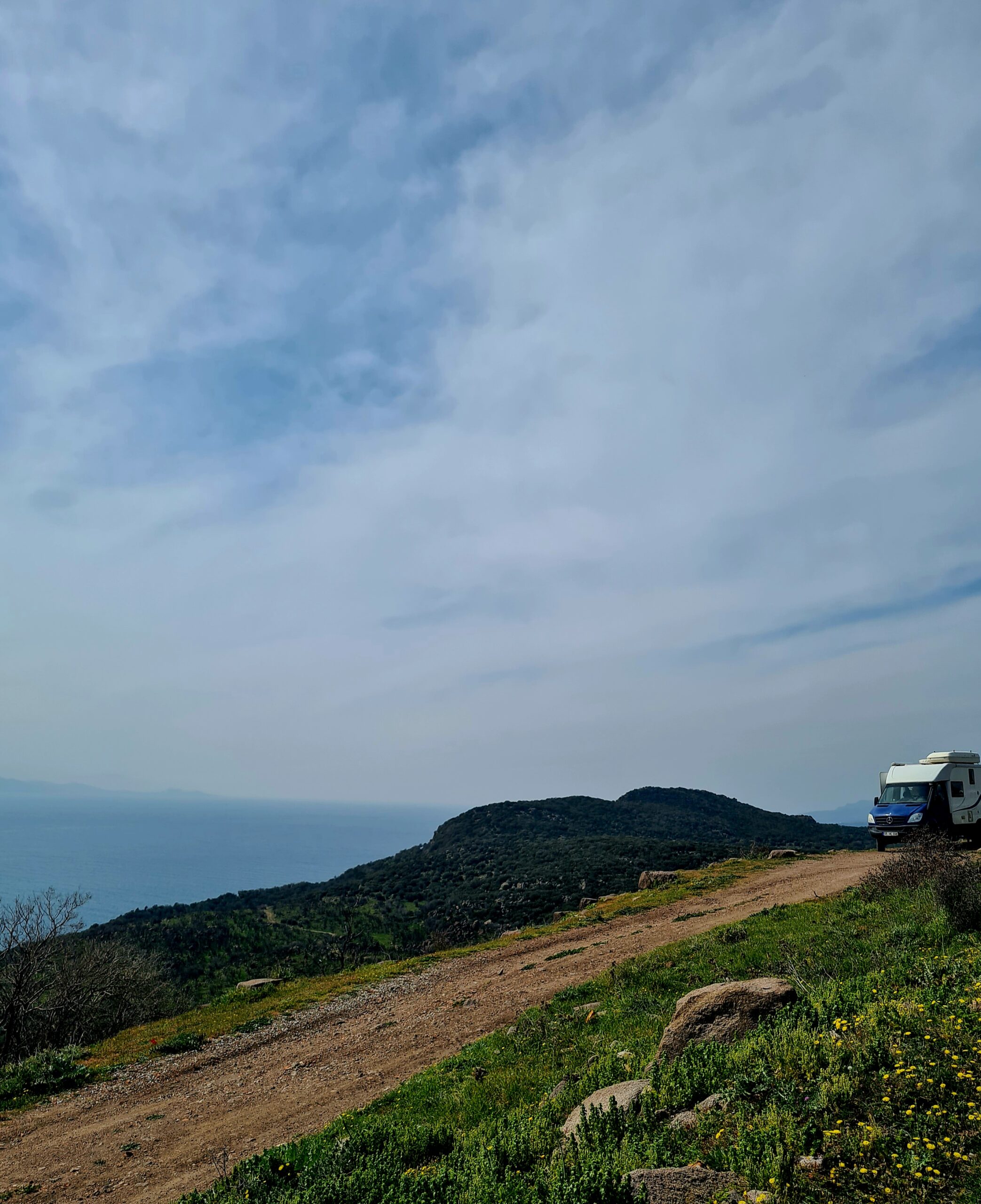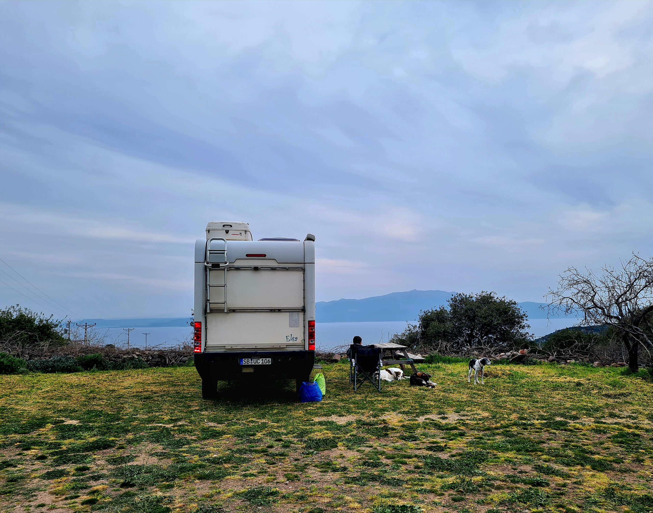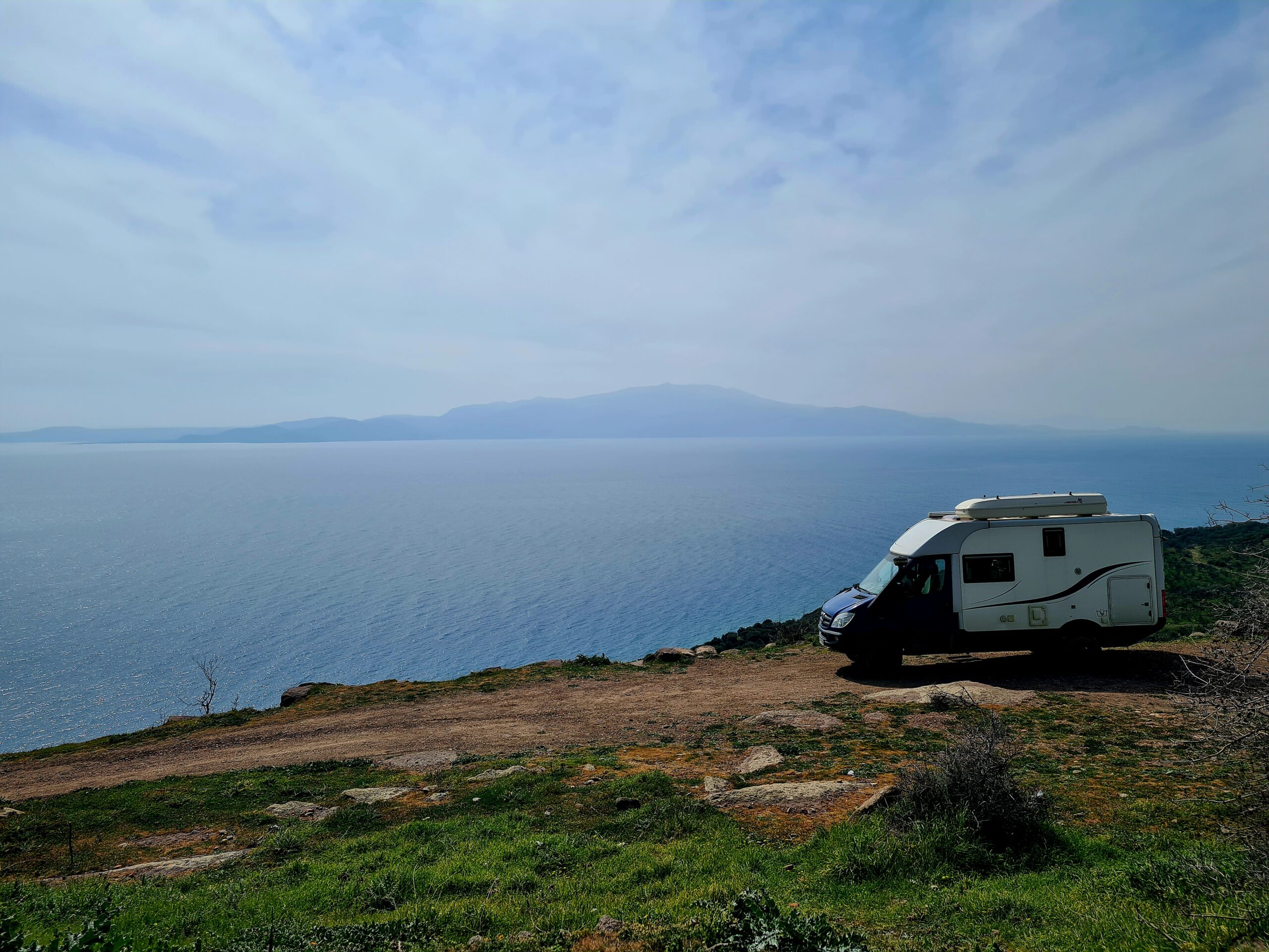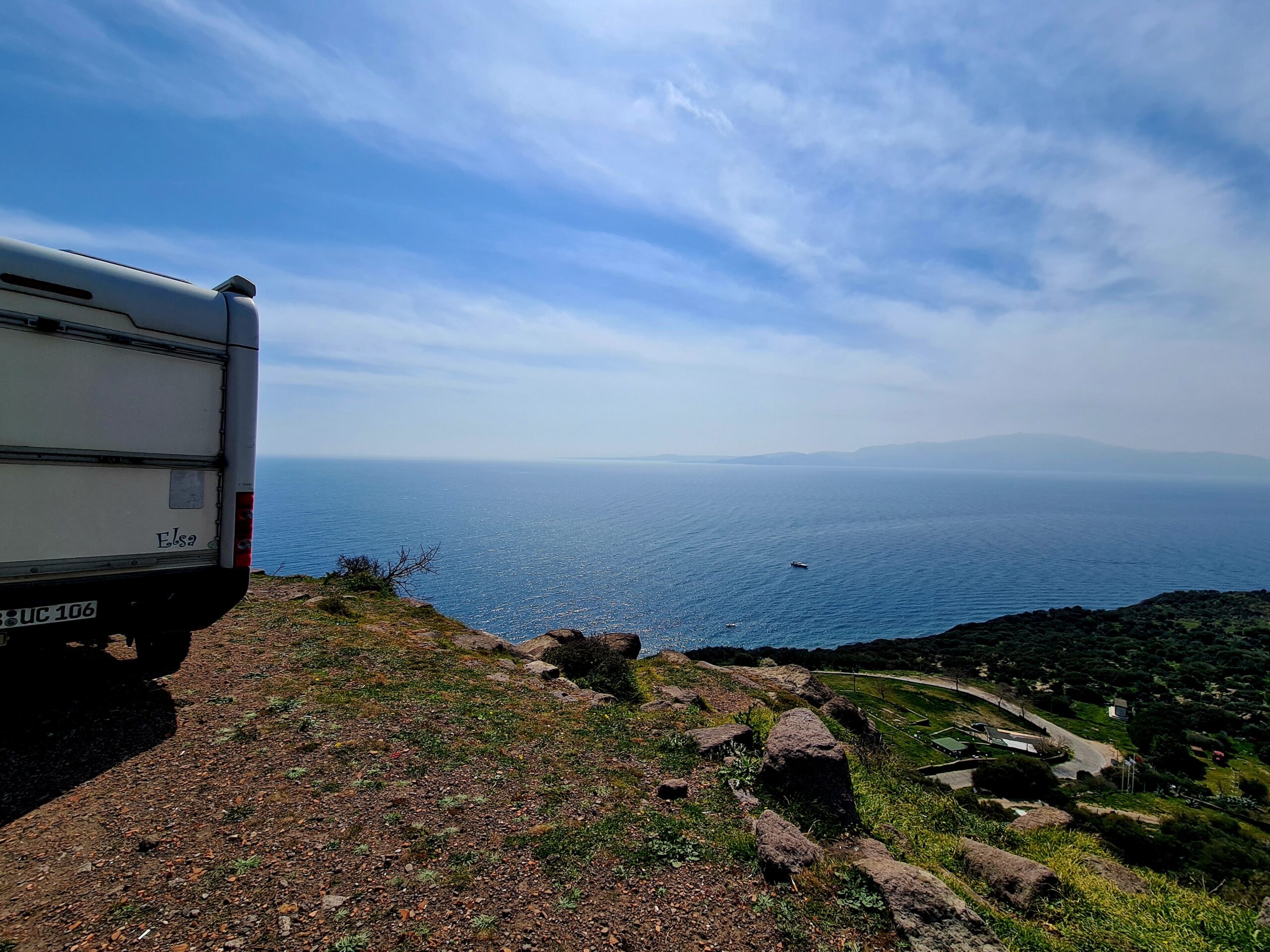 Unser Stellplatz mit Blick zur Insel Lesbos.
