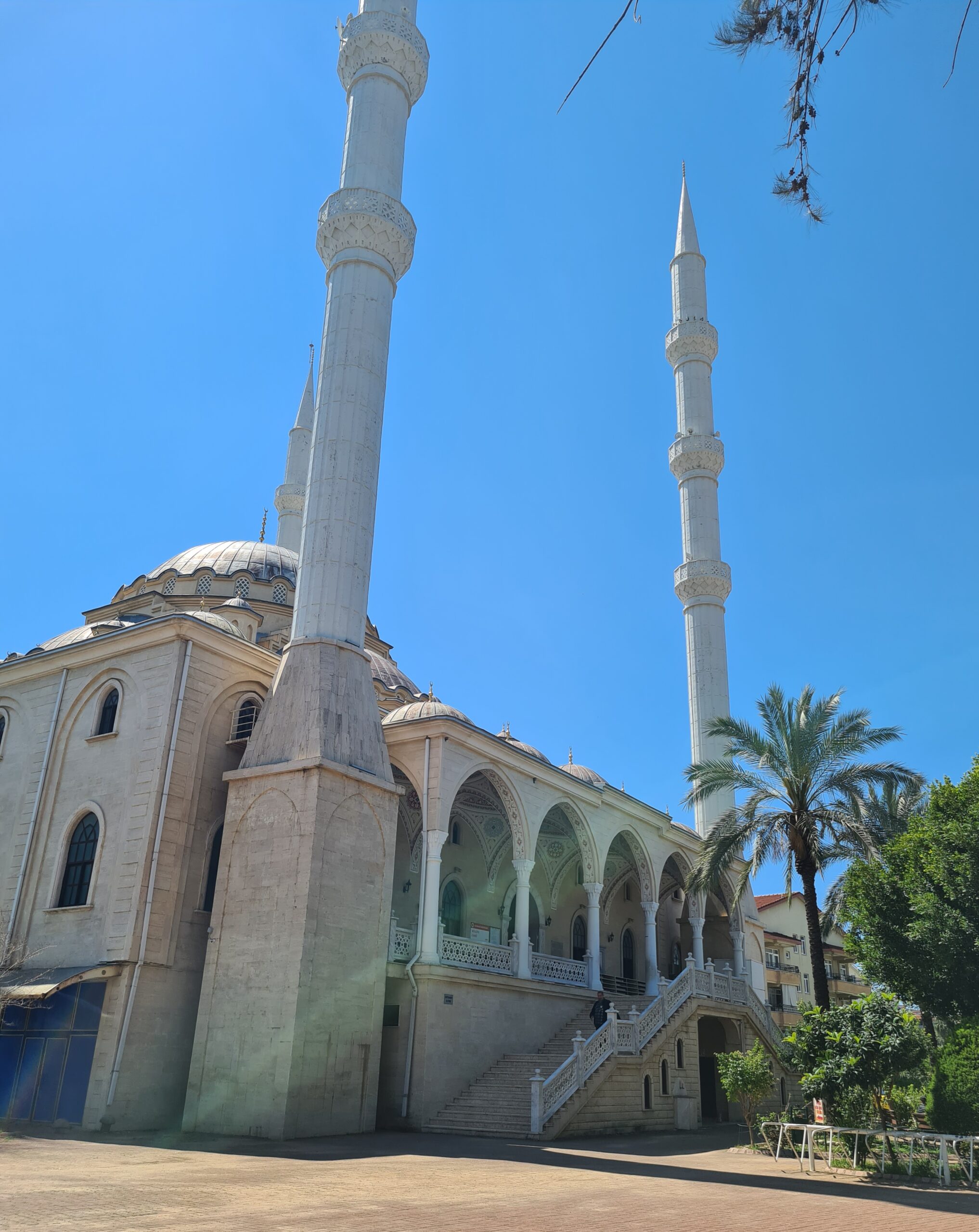 Zuerst fahren wir nach Manavgat zum Einkaufen und sehen uns die große Moschee an. Das steht ja schon länger auf Carmens Bucket-List, weil sie immer im Religionsunterricht davon erzählt hat, aber als „Ungläubige“ nie eine besuchen durfte. Hier in der Türkei ist das zum Glück anders.