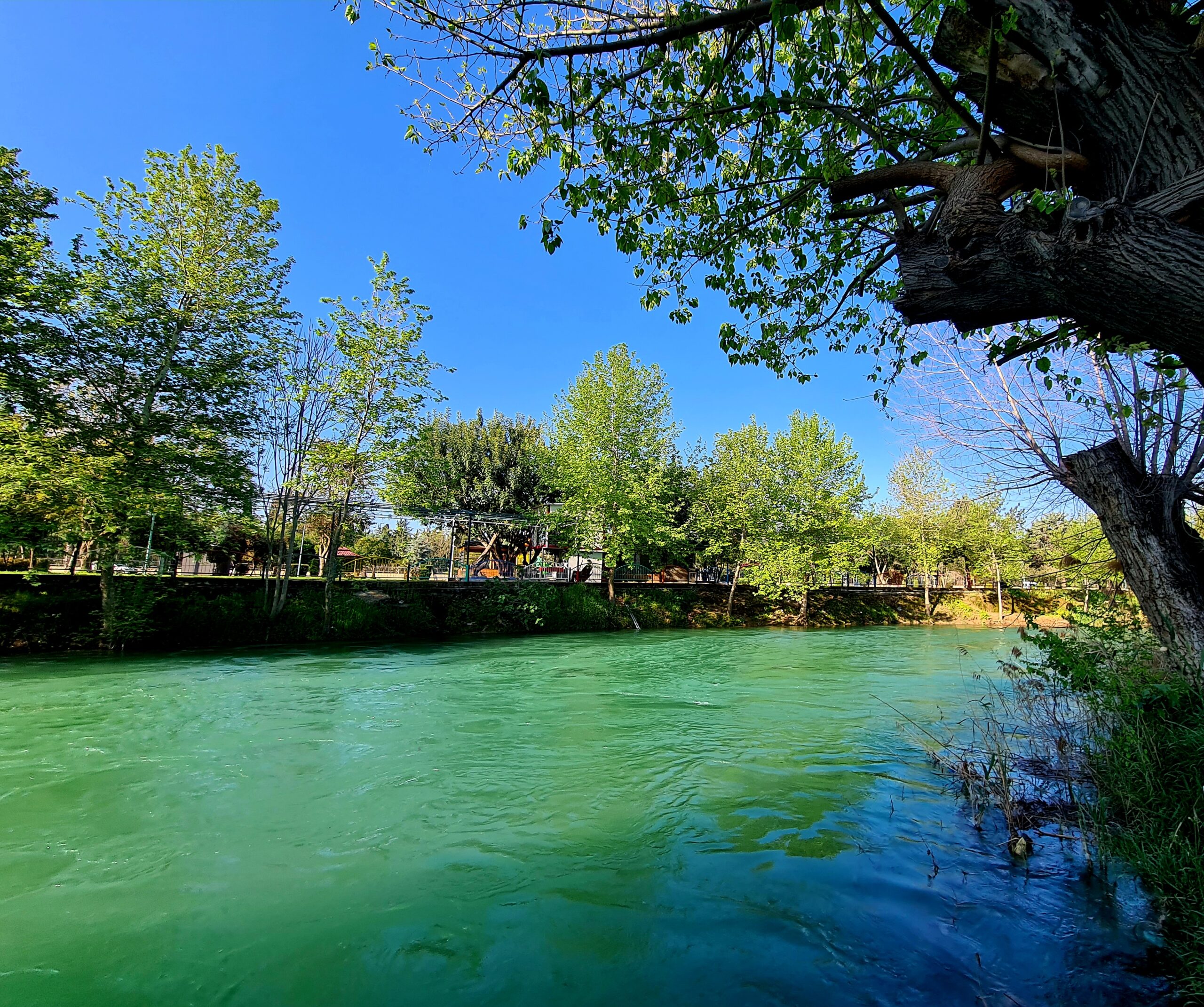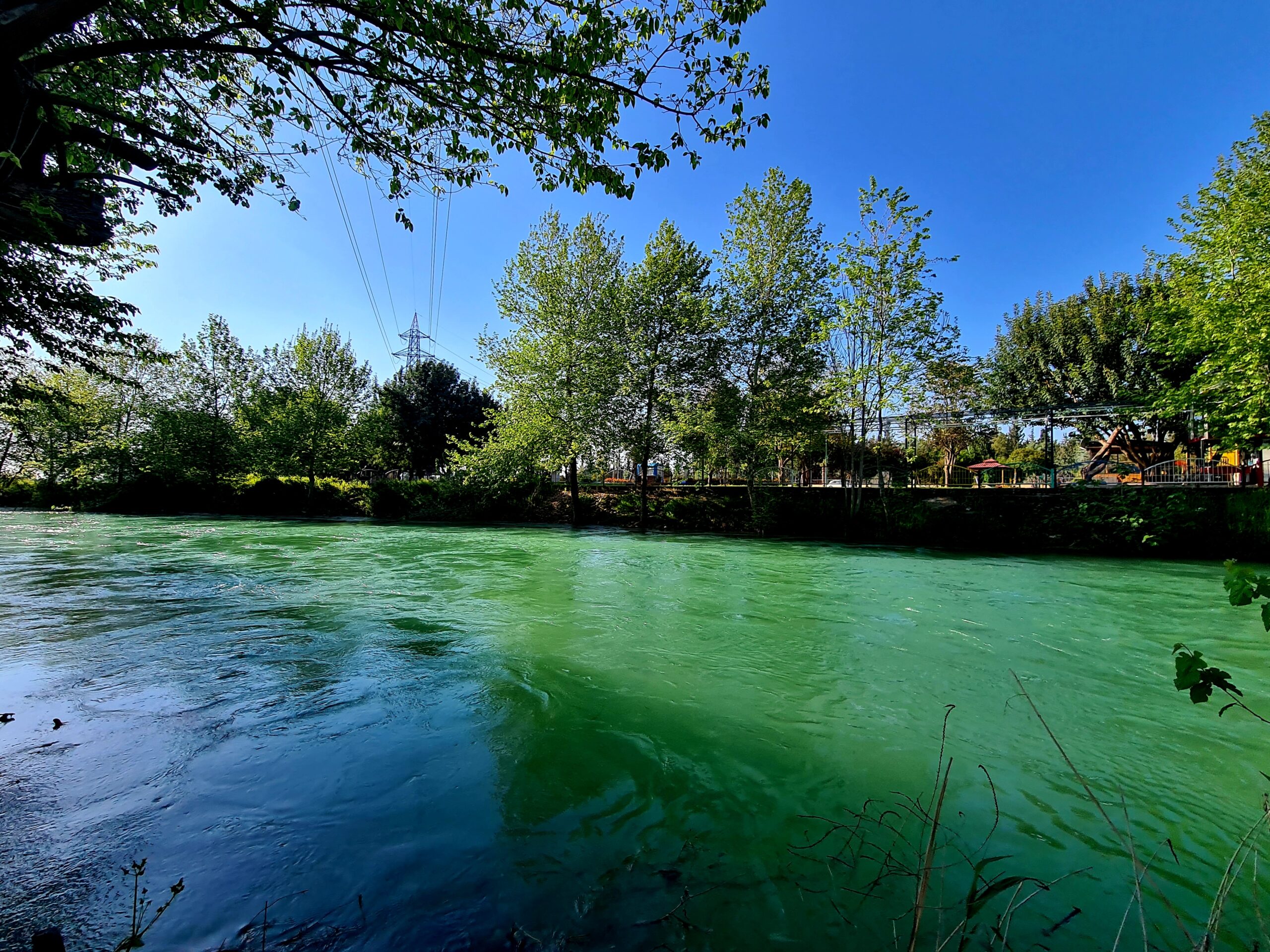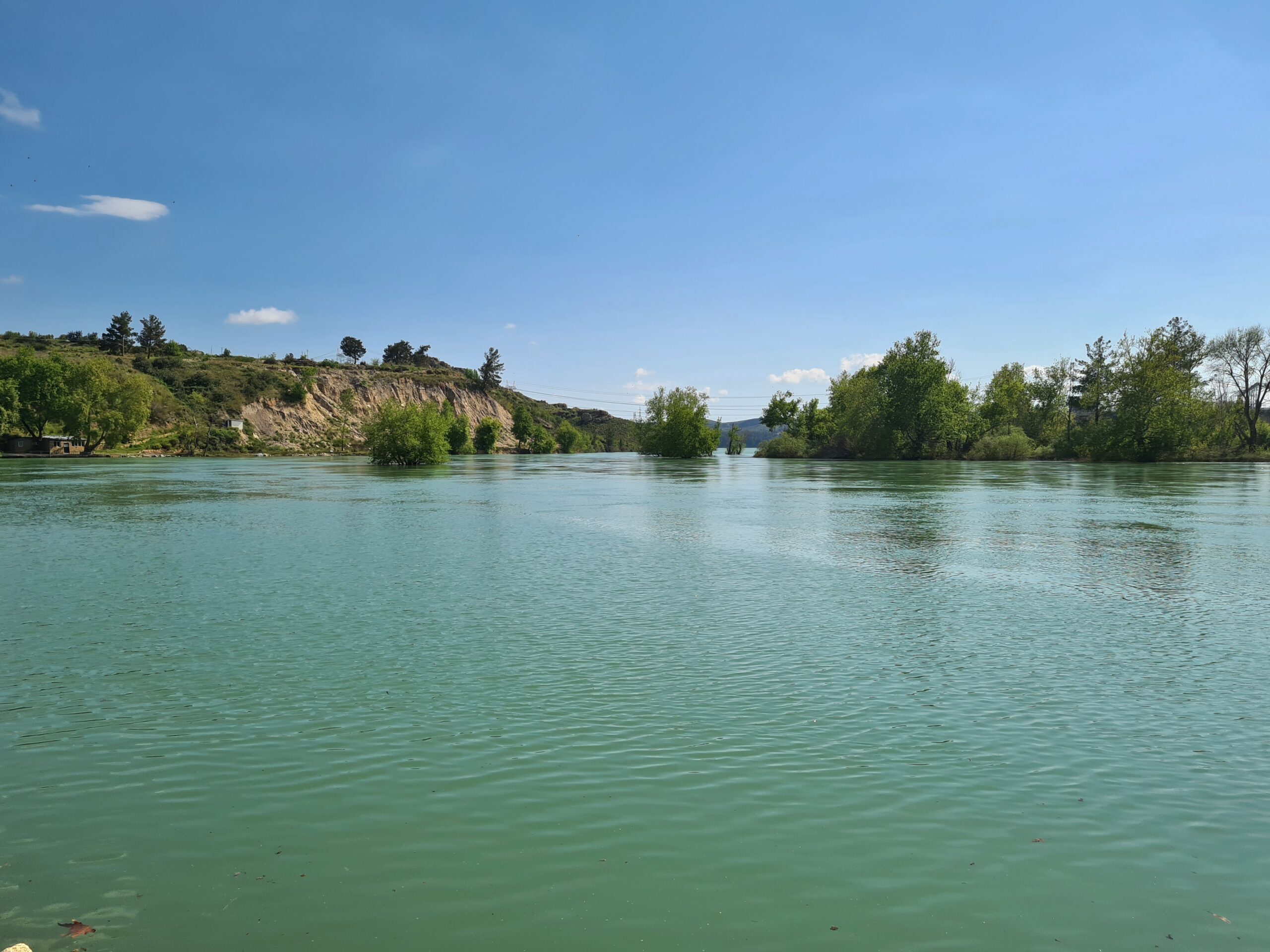 Der Fluss fließt direkt an unserem Wohnmobil vorbei.