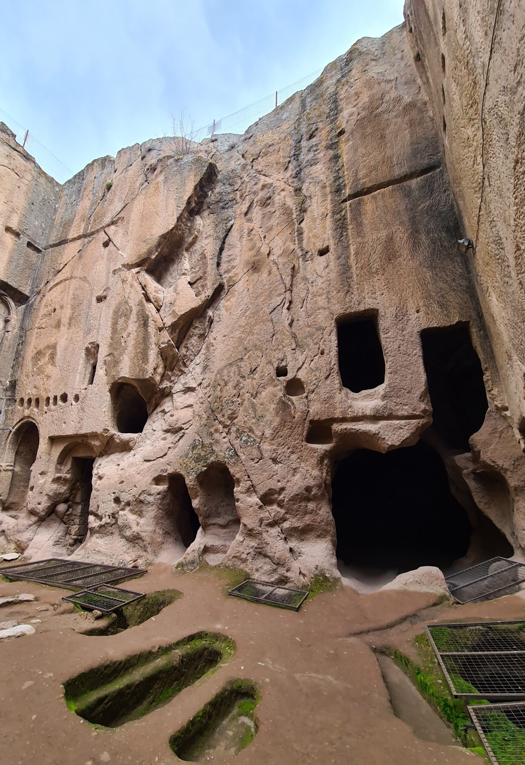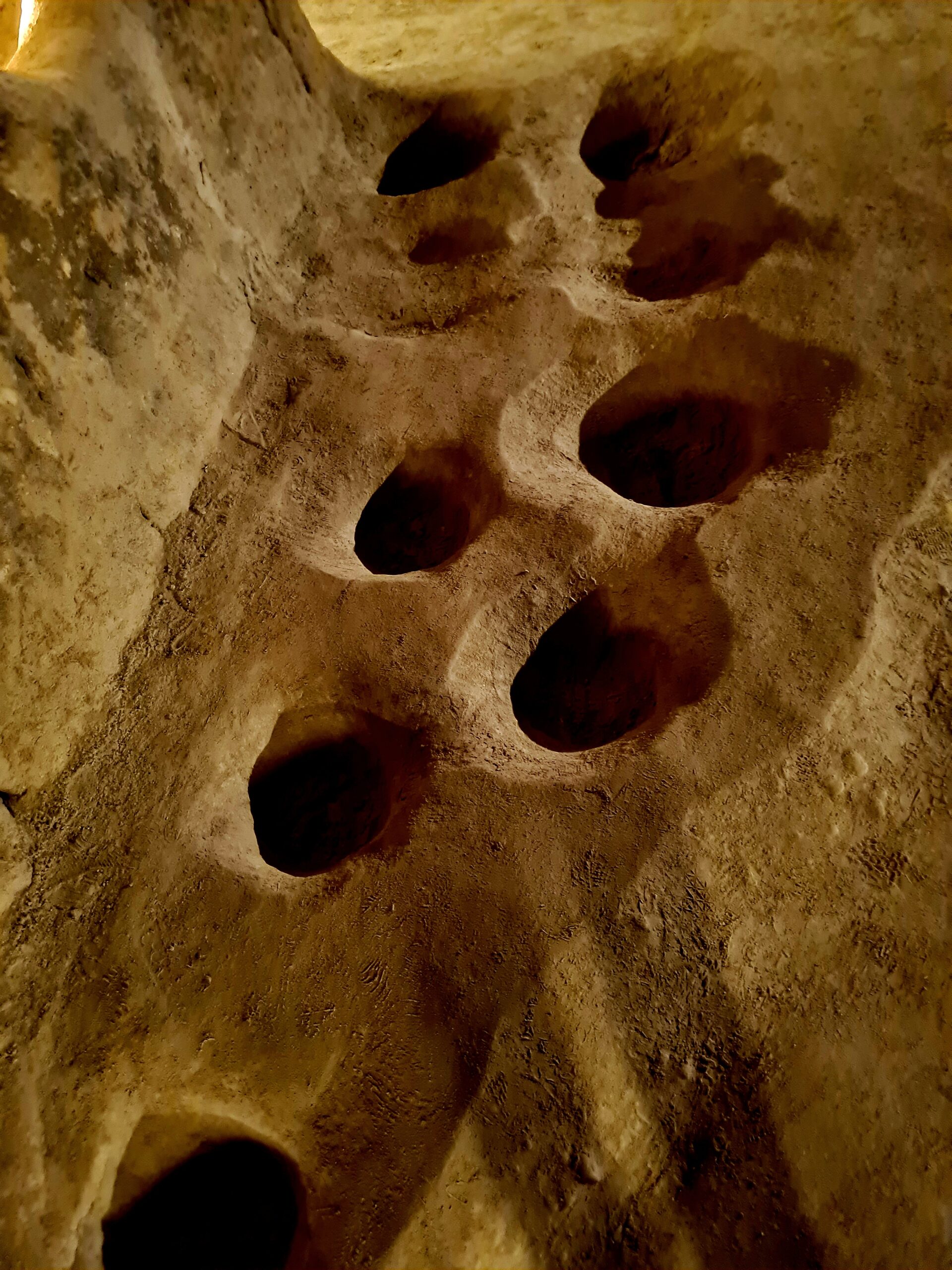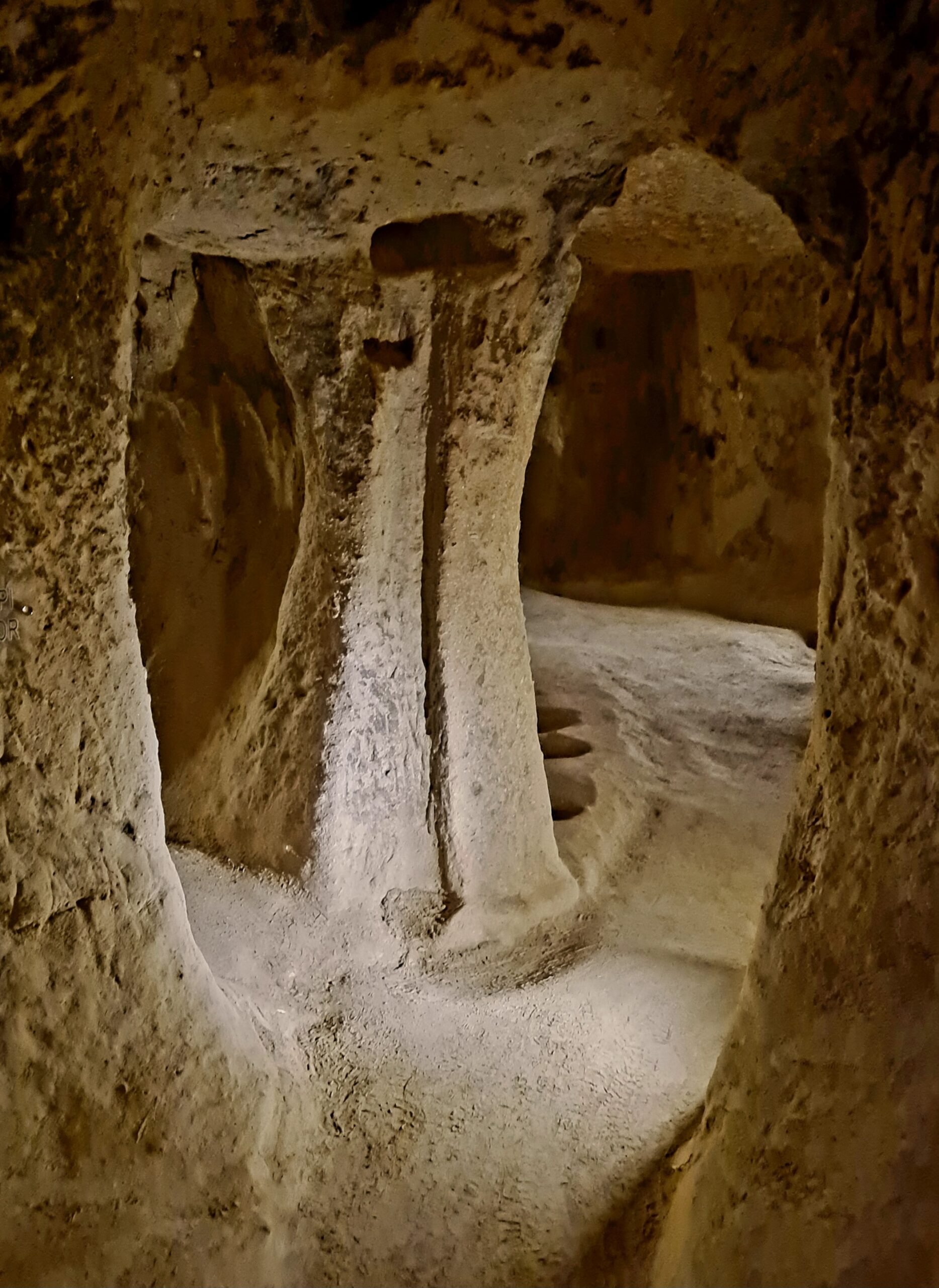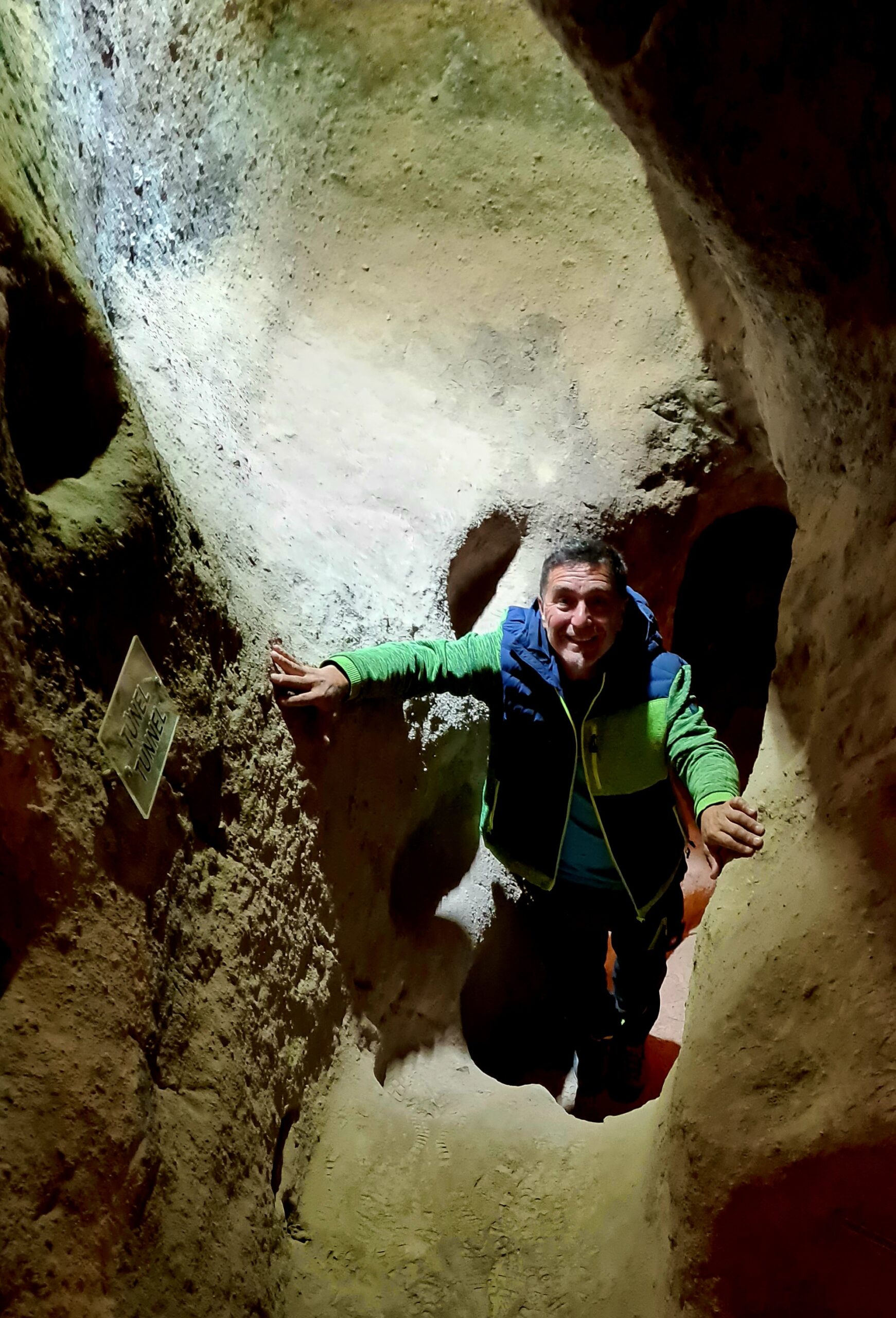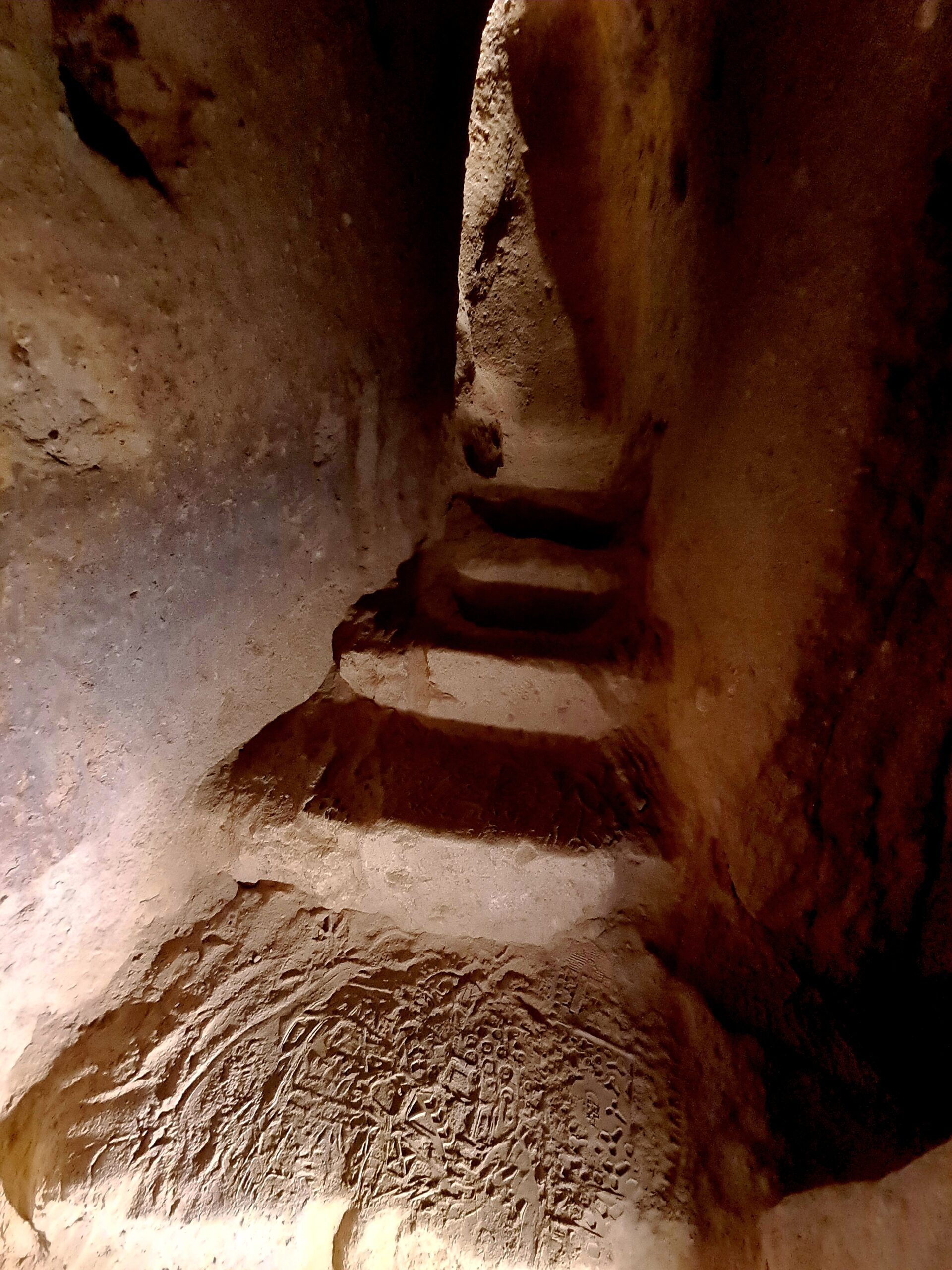Dann fahren wir weiter zu einer unterirdischen Stadt. Es gibt hier in Kappadokien mindestens 50 unterirdische Städte. Manche haben unterirdisch 18 Stockwerke und können 20 000 Menschen aufnehmen. Es gab ein ausgeklügeltes Kommunikationssystem und Belüftungsschächte. Es ist kaum zu fassen, dass man schon 800 nach Christus solche Projekte umsetzen konnte.