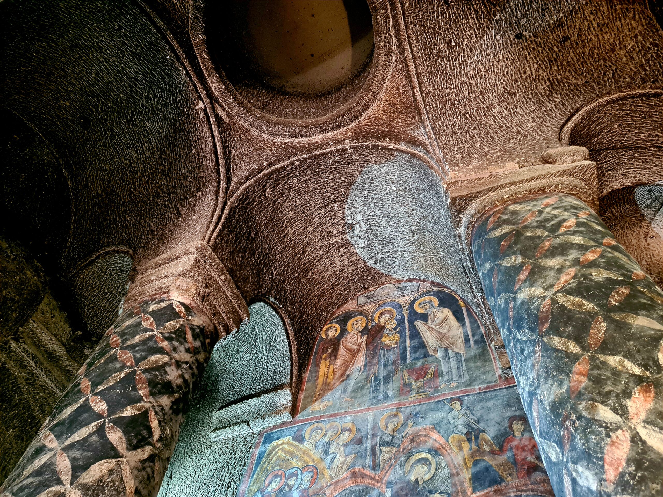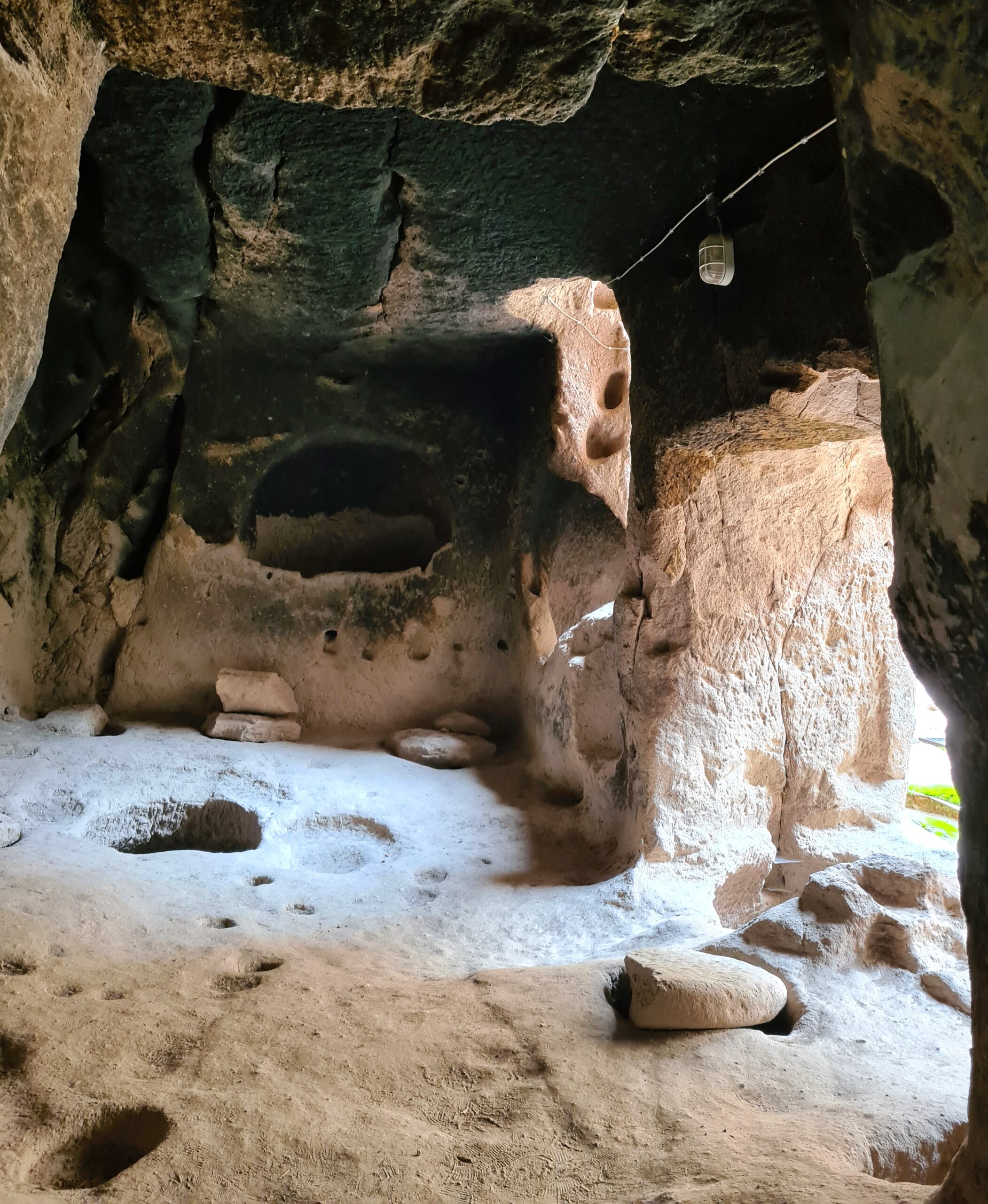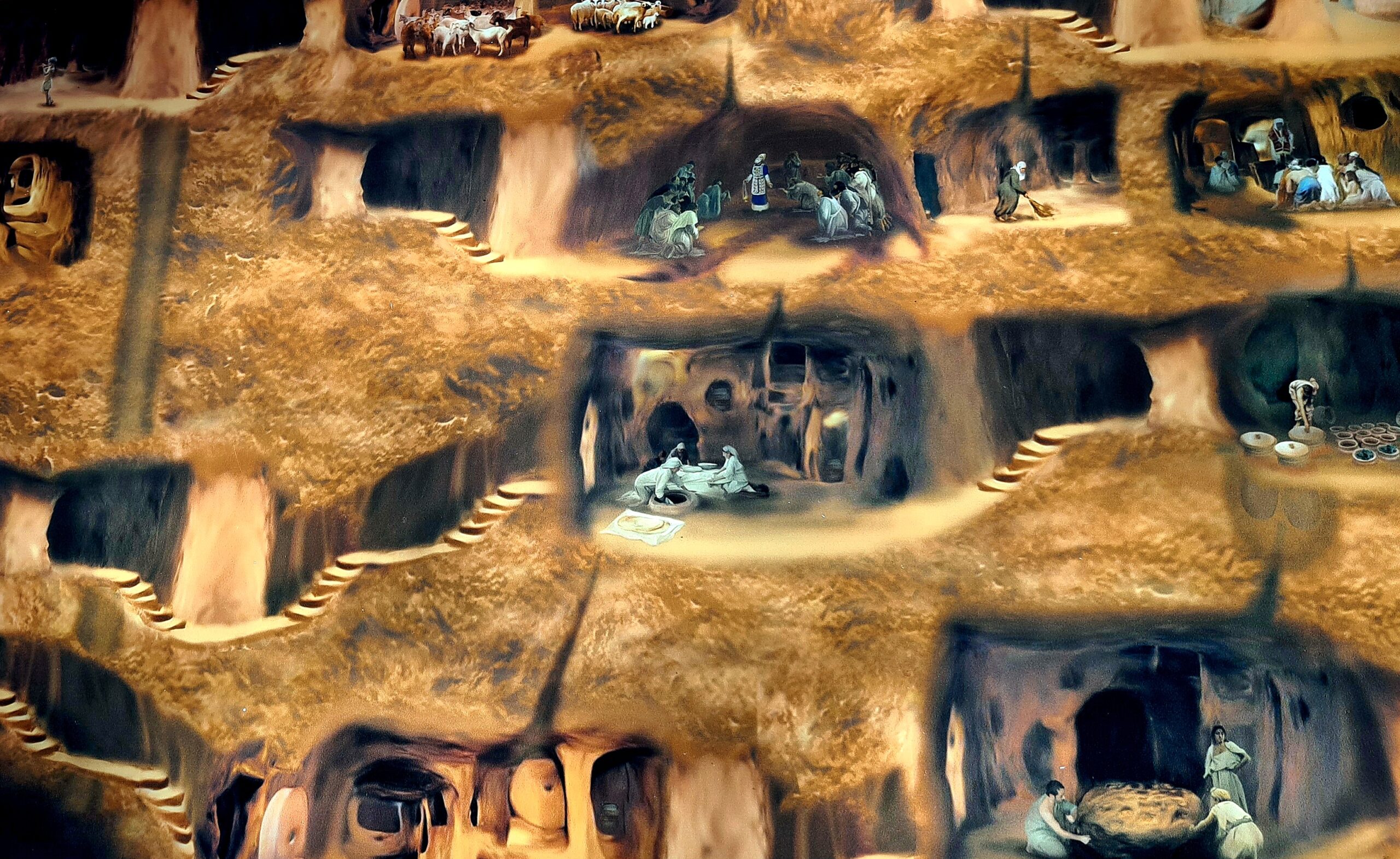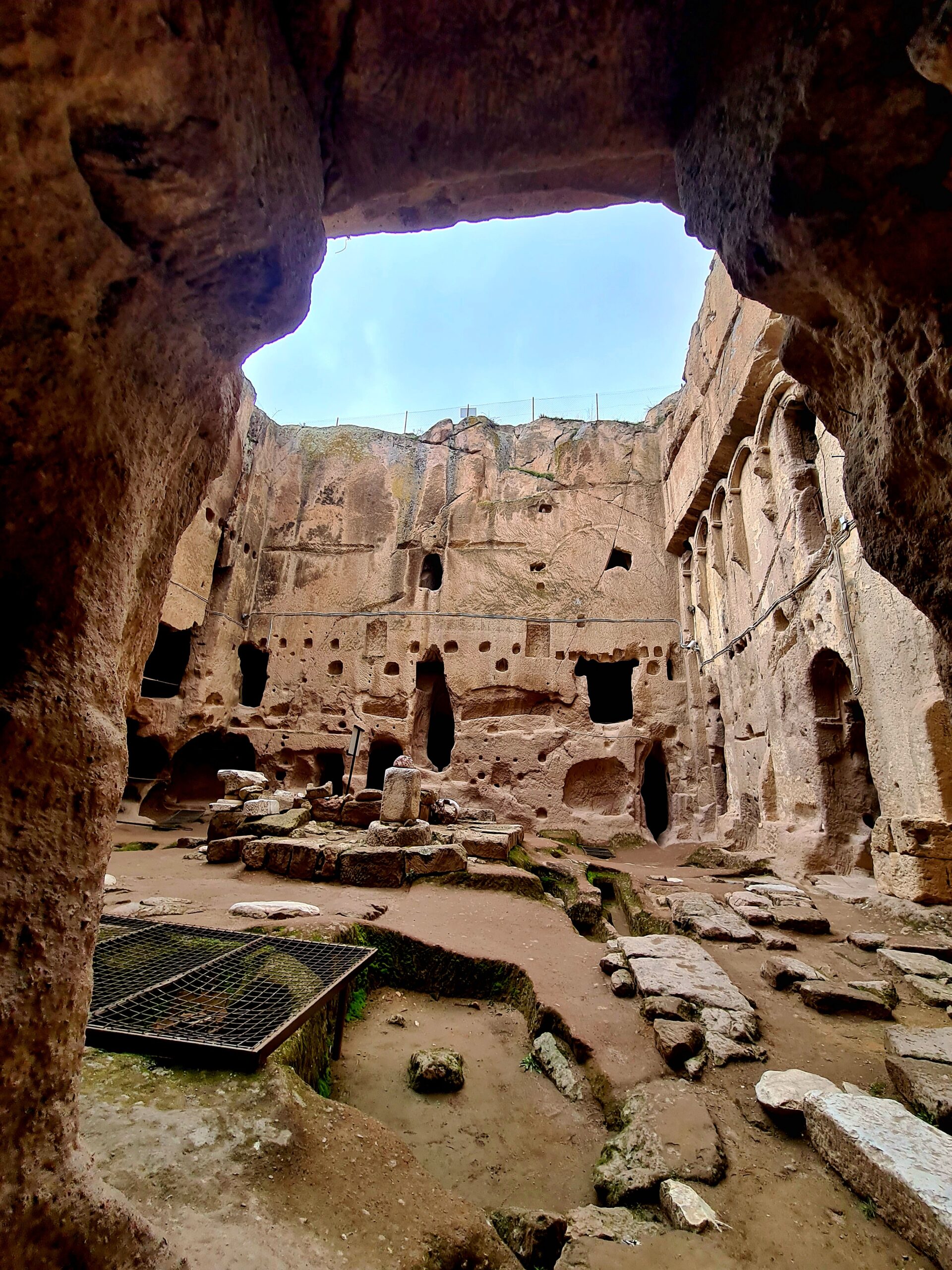 Dann fahren wir weiter zu einer unterirdischen Stadt. Es gibt hier in Kappadokien mindestens 50 unterirdische Städte. Manche haben unterirdisch 18 Stockwerke und können 20 000 Menschen aufnehmen. Es gab ein ausgeklügeltes Kommunikationssystem und Belüftungsschächte. Es ist kaum zu fassen, dass man schon 800 nach Christus solche Projekte umsetzen konnte.