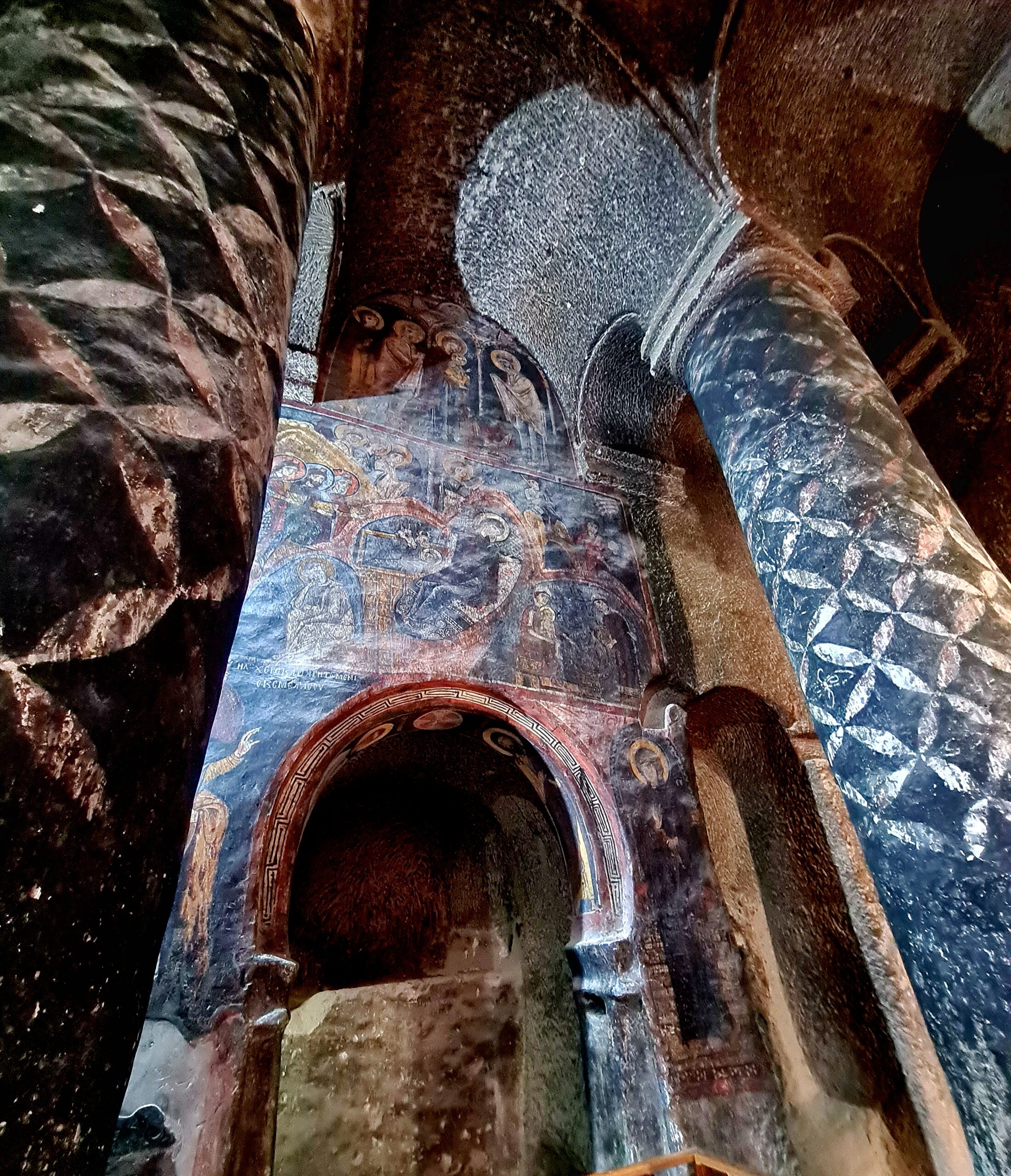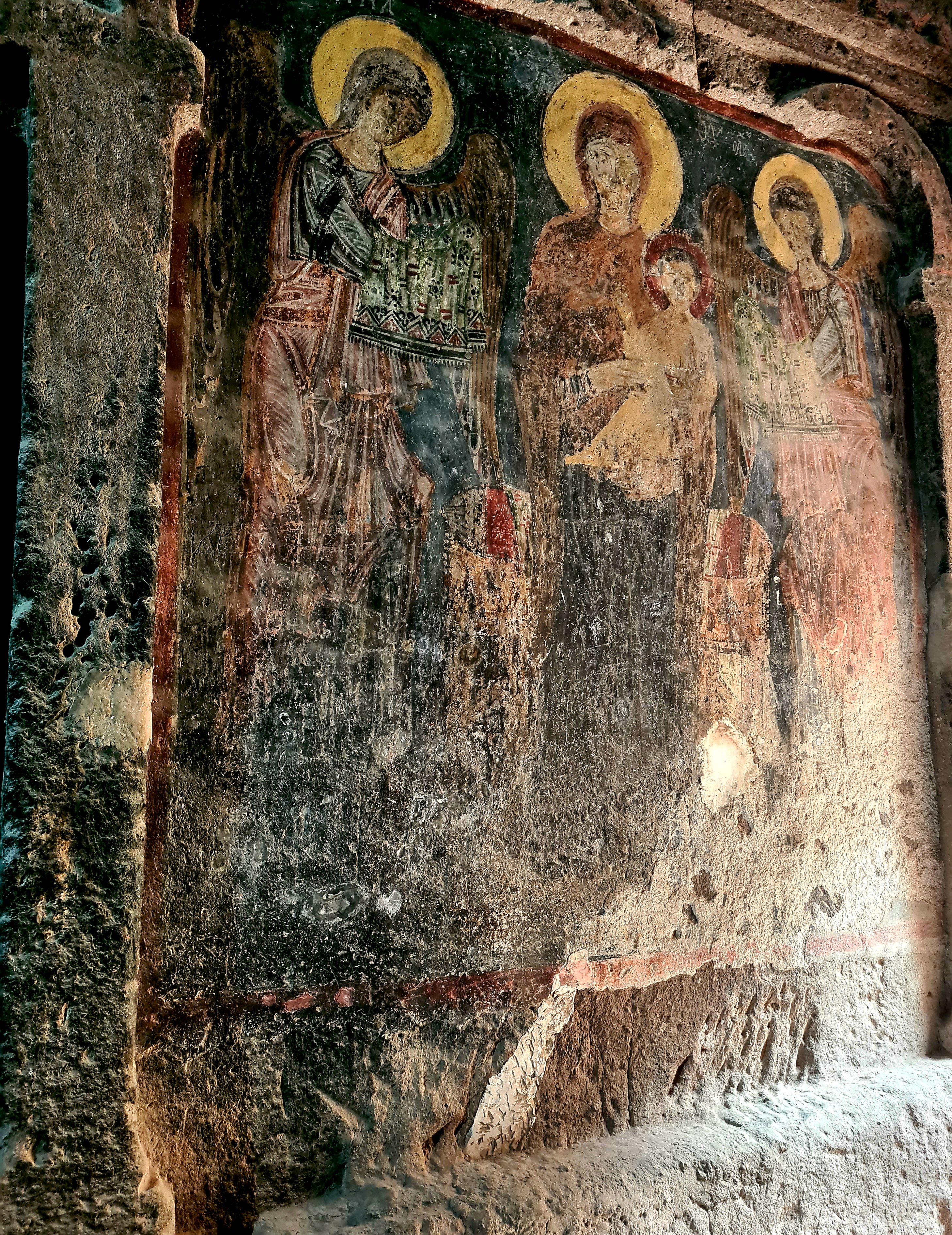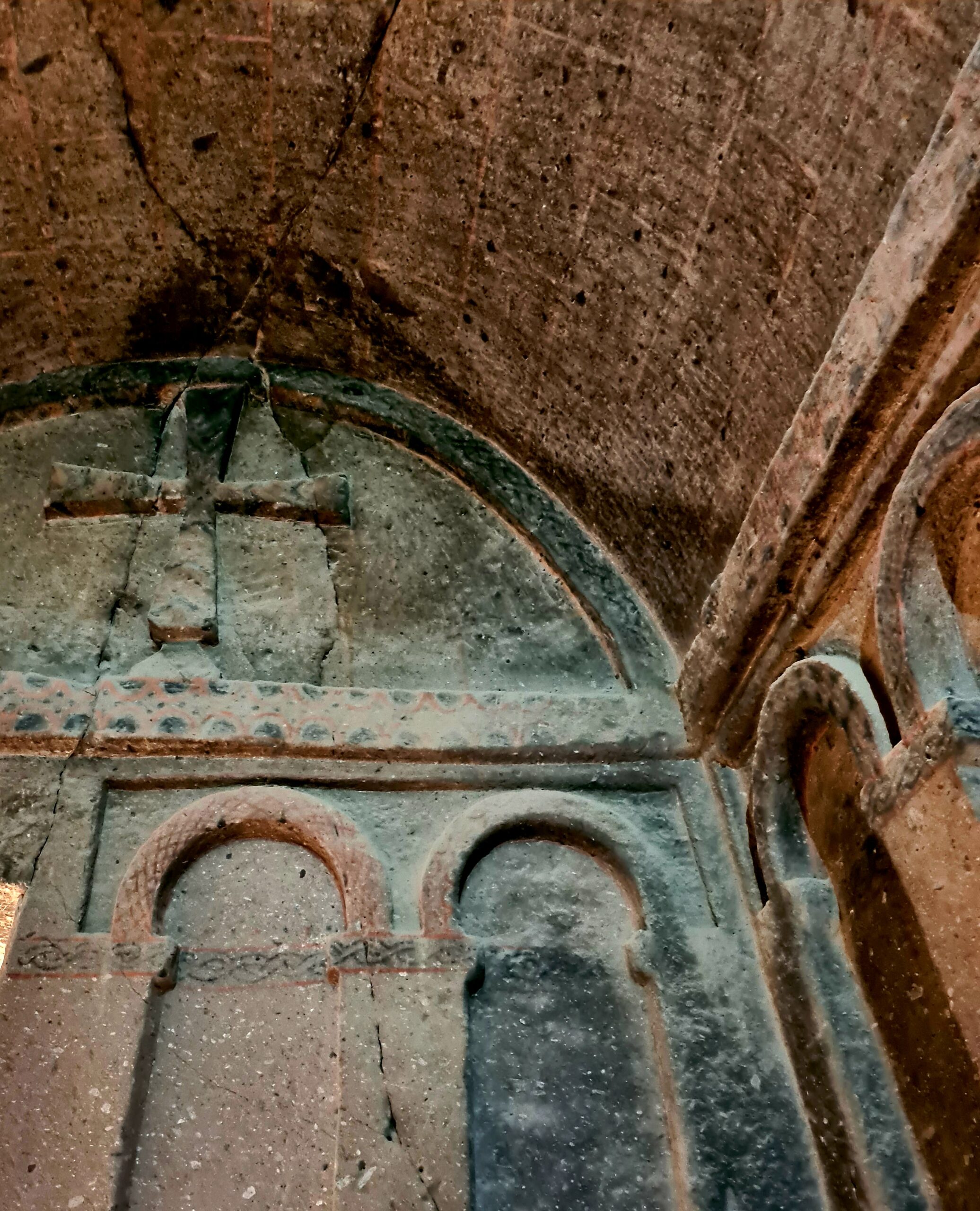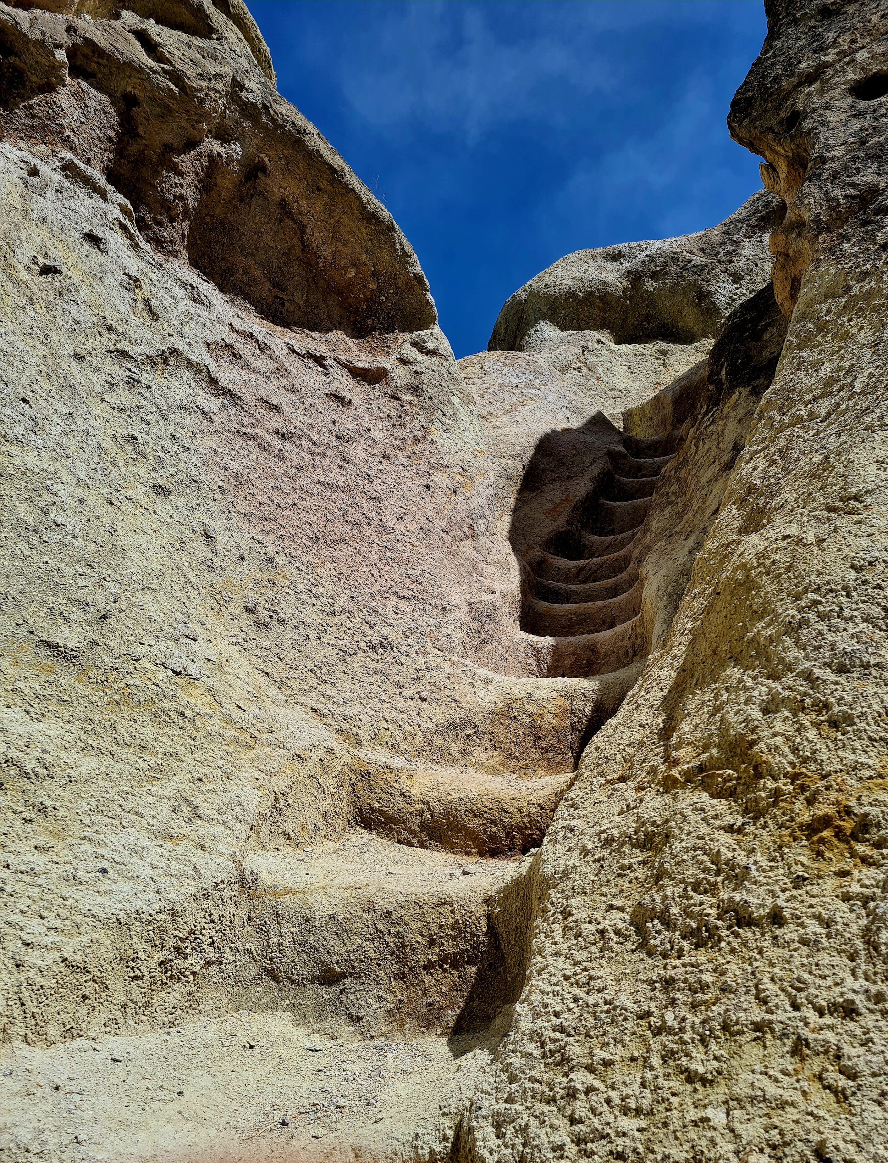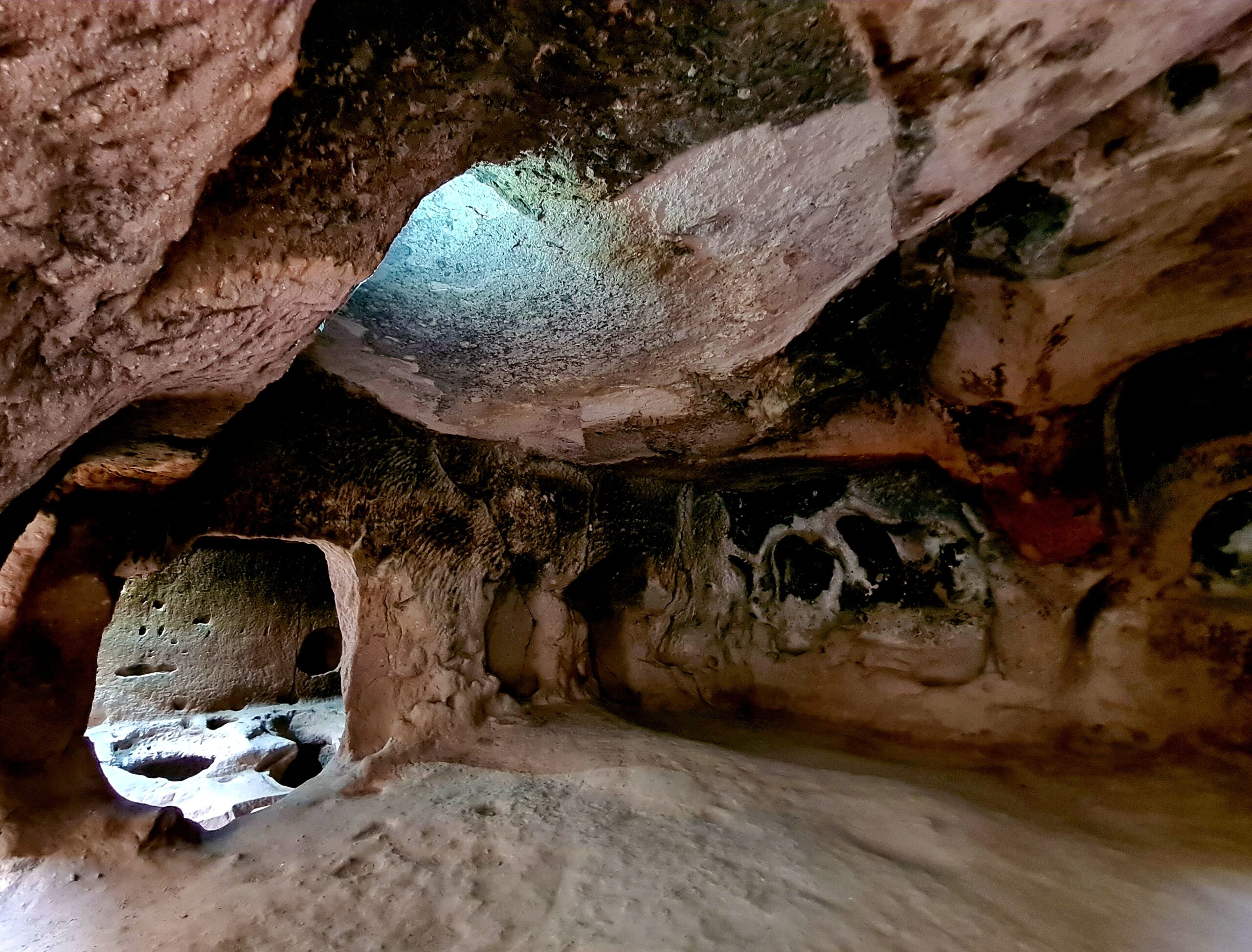 Dann fahren wir weiter zu einer unterirdischen Stadt. Es gibt hier in Kappadokien mindestens 50 unterirdische Städte. Manche haben unterirdisch 18 Stockwerke und können 20 000 Menschen aufnehmen. Es gab ein ausgeklügeltes Kommunikationssystem und Belüftungsschächte. Es ist kaum zu fassen, dass man schon 800 nach Christus solche Projekte umsetzen konnte.