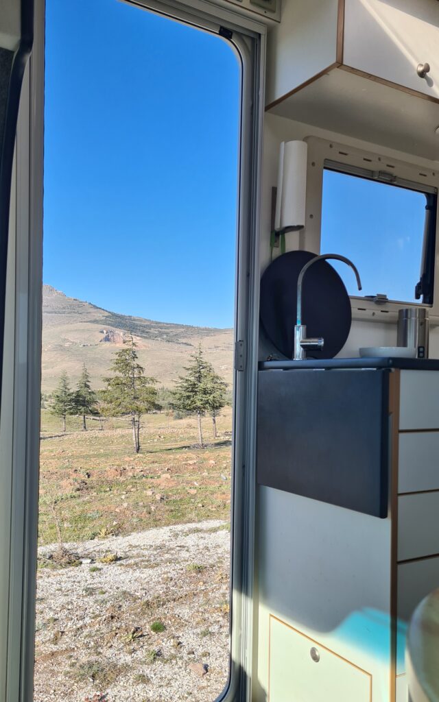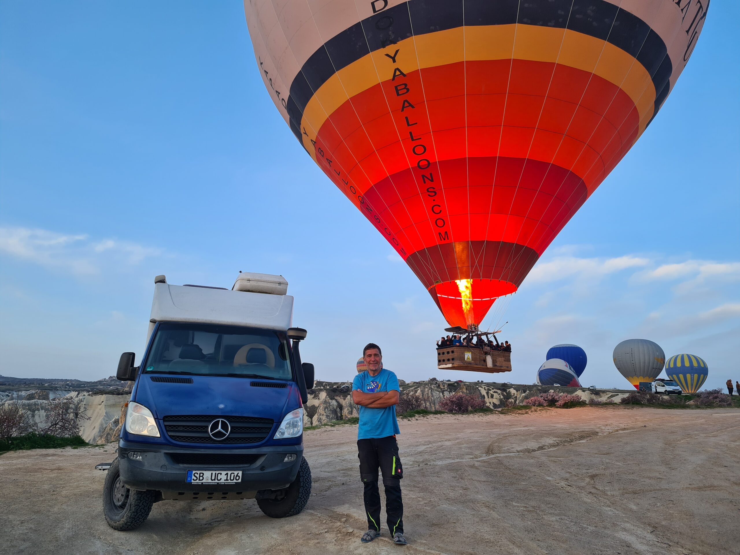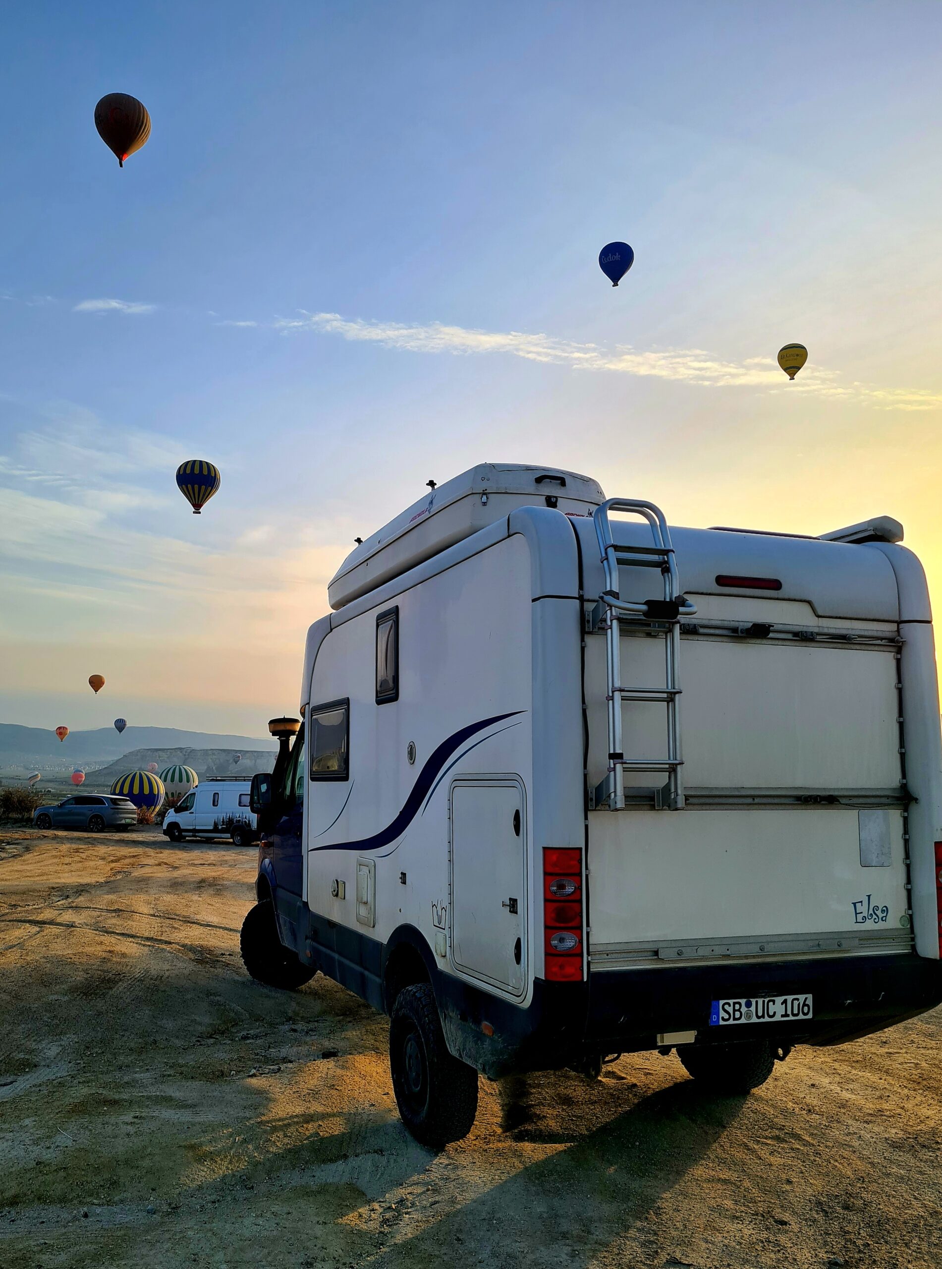Damit wir morgen früh die Ballons über Kappadokien sehen können, fahren wir zu einem Übernachtungsplatz oberhalb von Göreme.