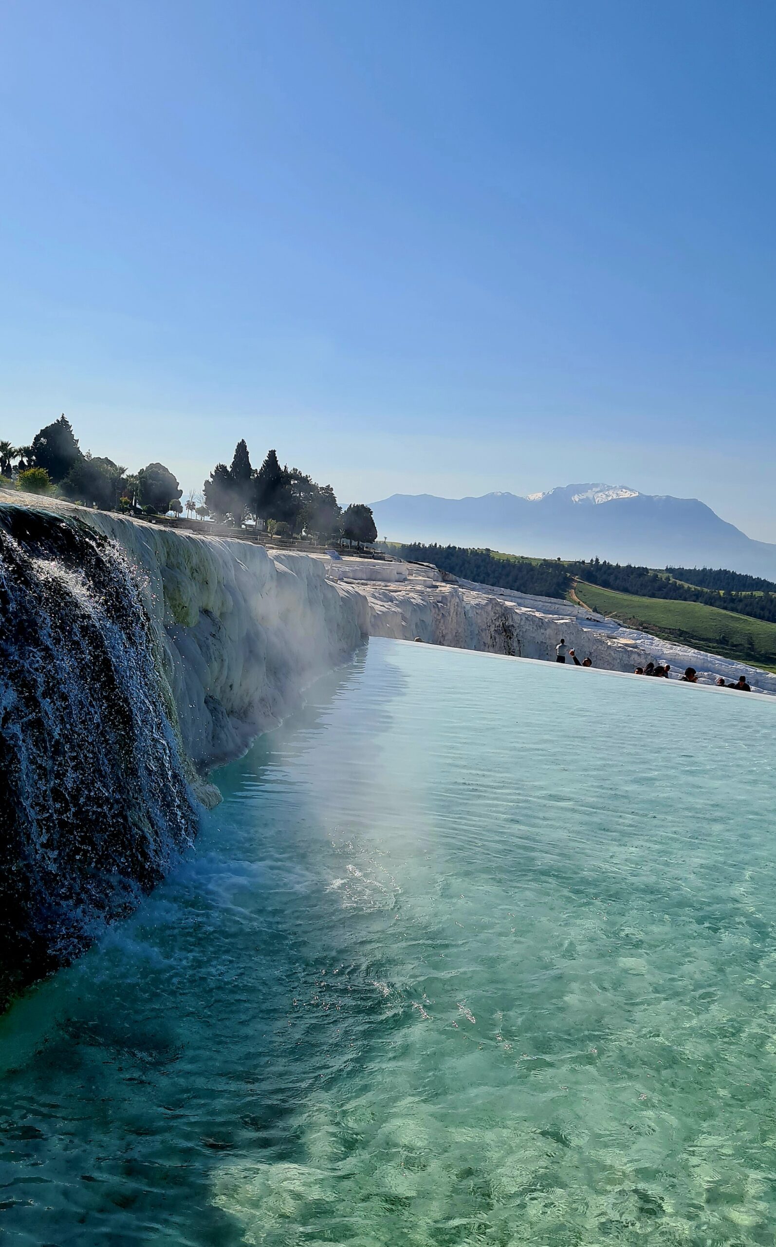 Eigentlich wollten wir heute zu den wunderschönen weißen Travertinterassen, aber es ist bedeckt.