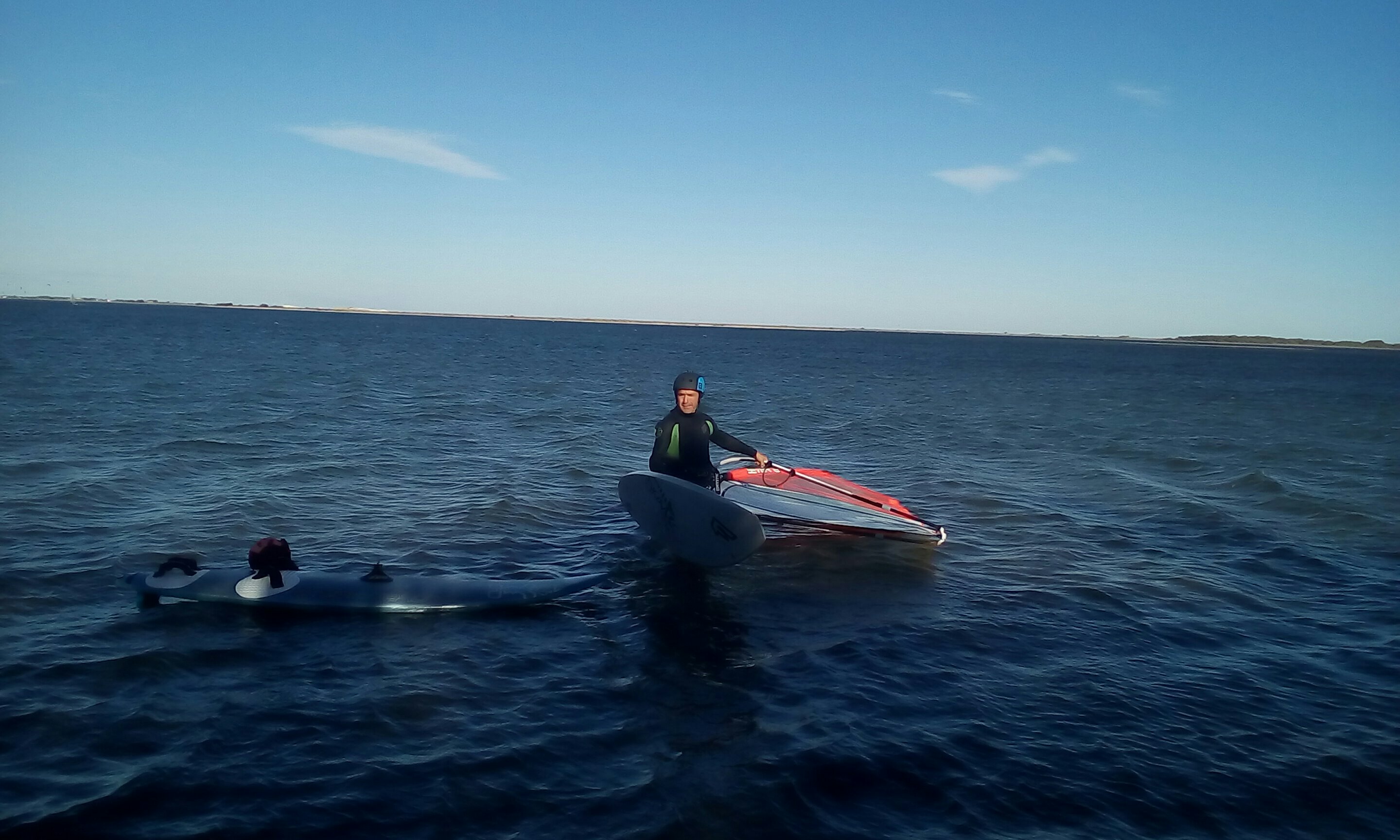 Für uns ein Traum, aber für Nichtsurfer war dieser Tag abgesehen vom Sonnenschein sicher nicht so toll, weil man beim Sonnenbad gesandstrahlt wurde. Heute Abend stößt Mischa zu uns.