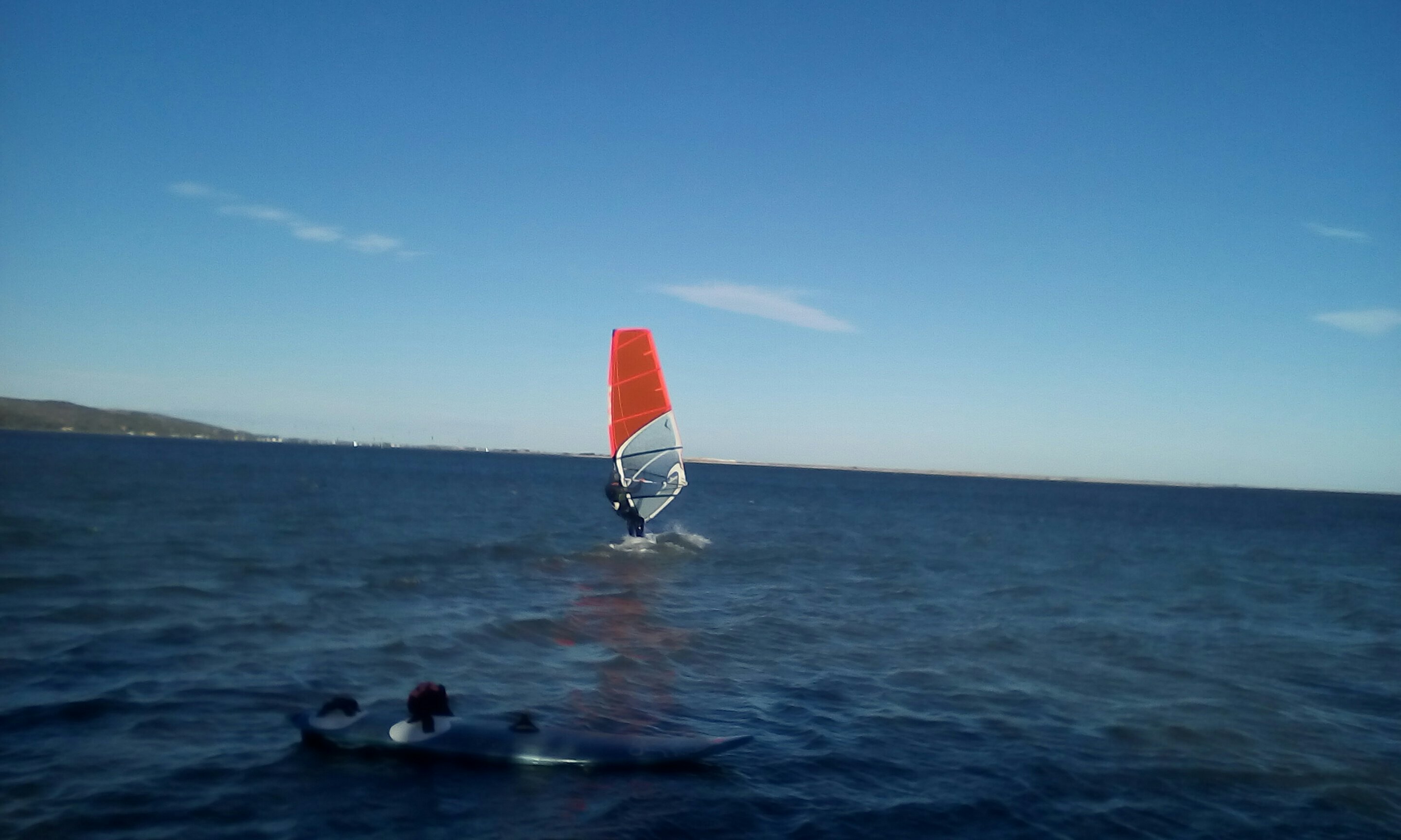Heute waren wir wieder nur auf dem Wasser. Morgens war der Trami extrem böig. Mittags einigermaßen konstant, bei 6 Beaufort. Carmen hätte umriggen müssen, weil sie das 5.3 nicht mehr halten konnte, also übernimmt Uwe Carmens Material und Carmen strickt und liest.