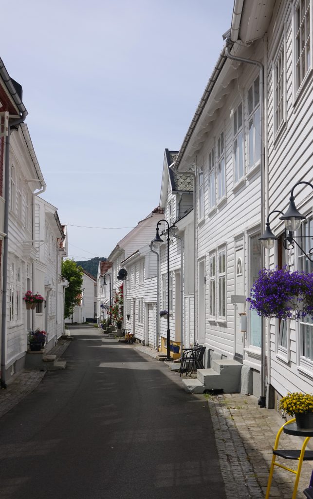 Von Lindesnes aus fahren wir nach Flekkefjord und bummeln durch die Altstadt.