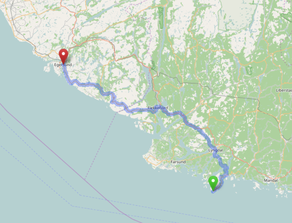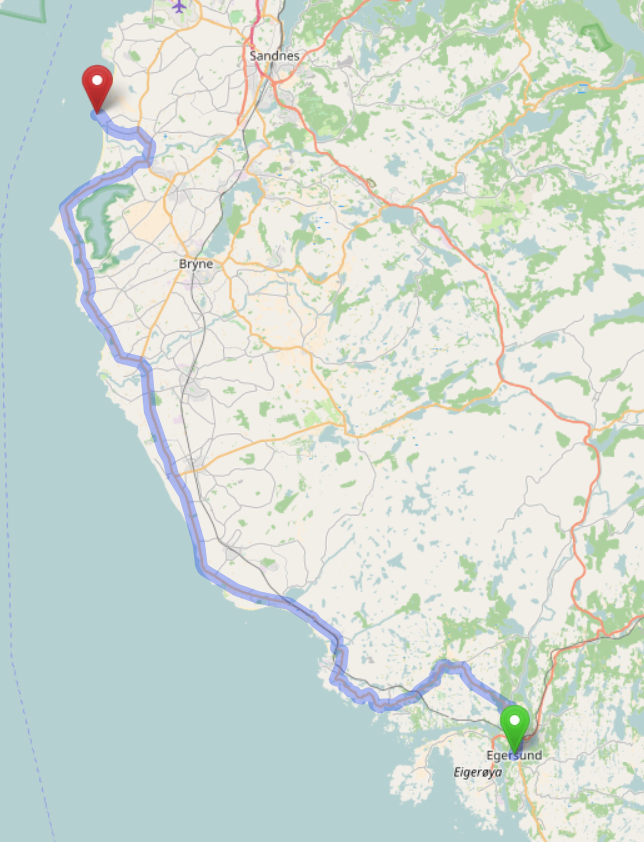 Eigentlich hatten wir uns Egersund als Zwischenstopp ausgesucht, aber der Tipp aus dem Womo-Forum erweist sich als Flopp. Also fahren wir weiter nach Sele Hafen.