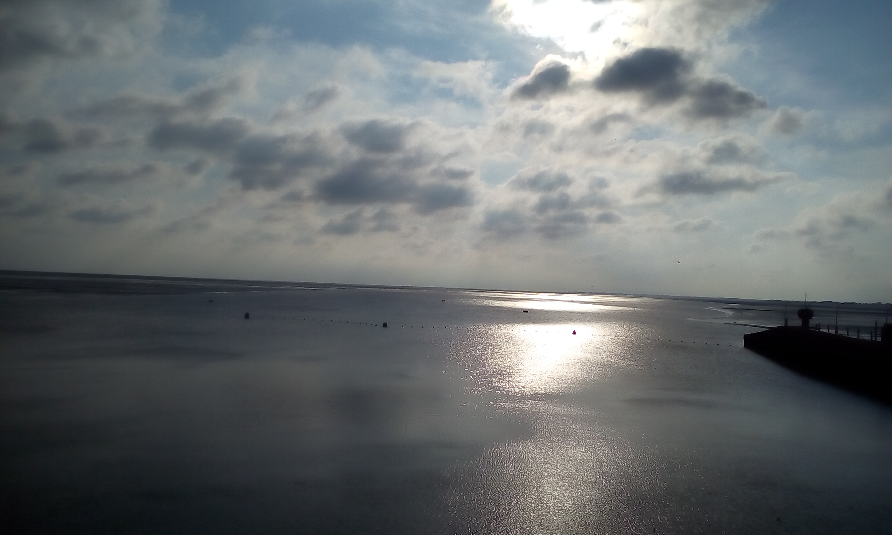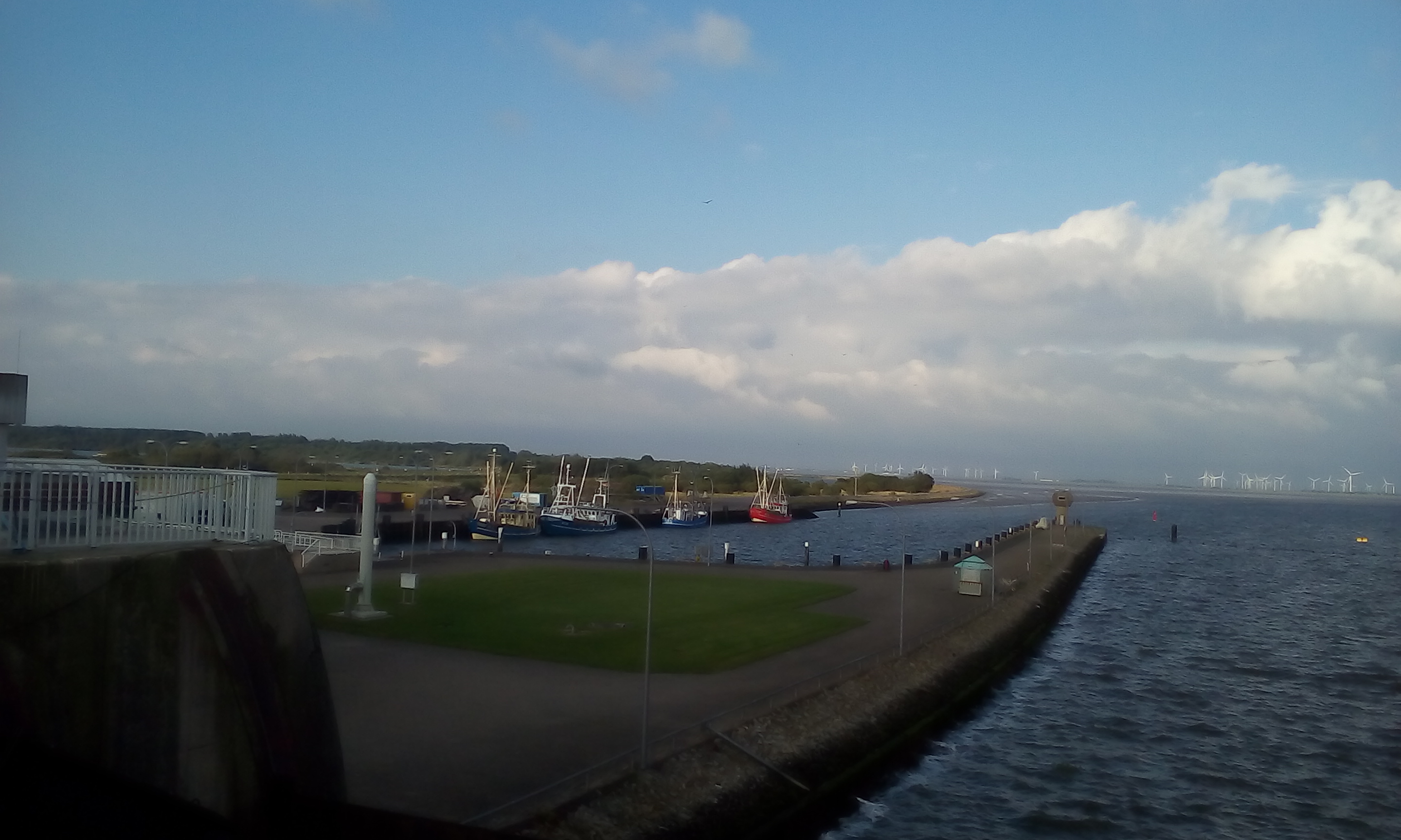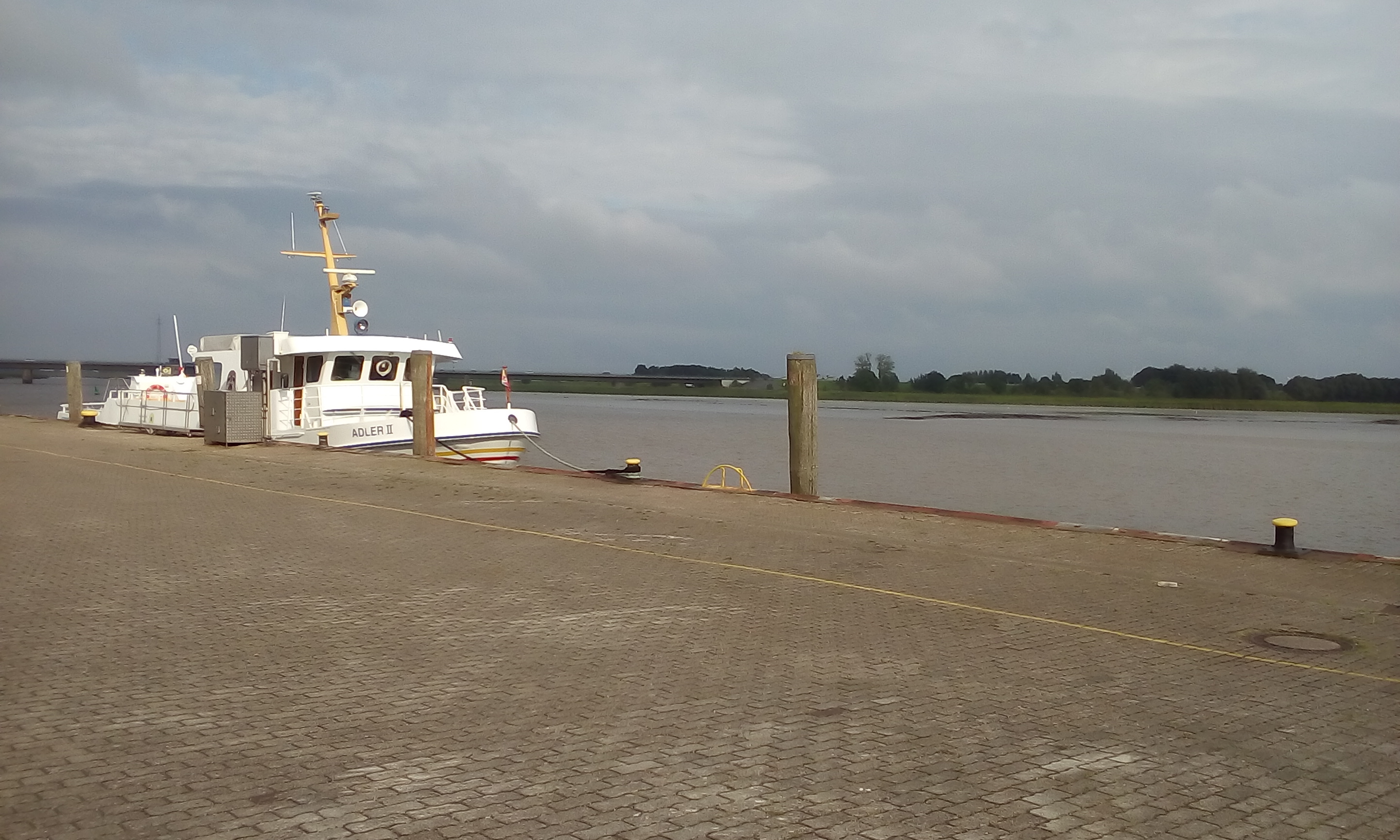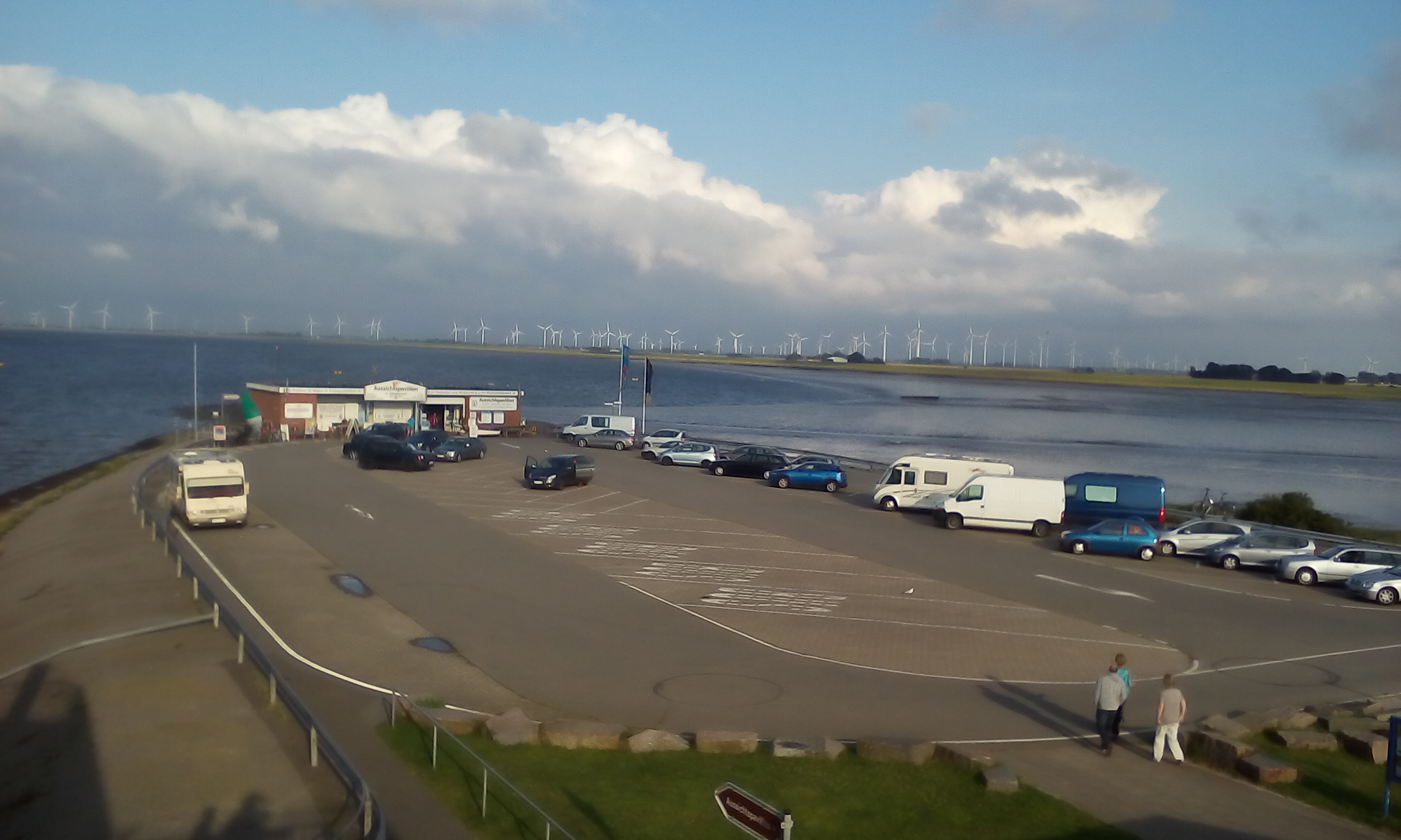 Eigentlich wollten wir ja zu unserem Lieblingsplatz Eiderblick, aber dort war es uns zu voll. Also stellen wir uns an den Kai, an dem tagsüber die Ausflugsschiffe anlegen. Mal sehen, wie es wird, schließlich ist Samstag und dann könnte das die Partymeile der Jugend sein.