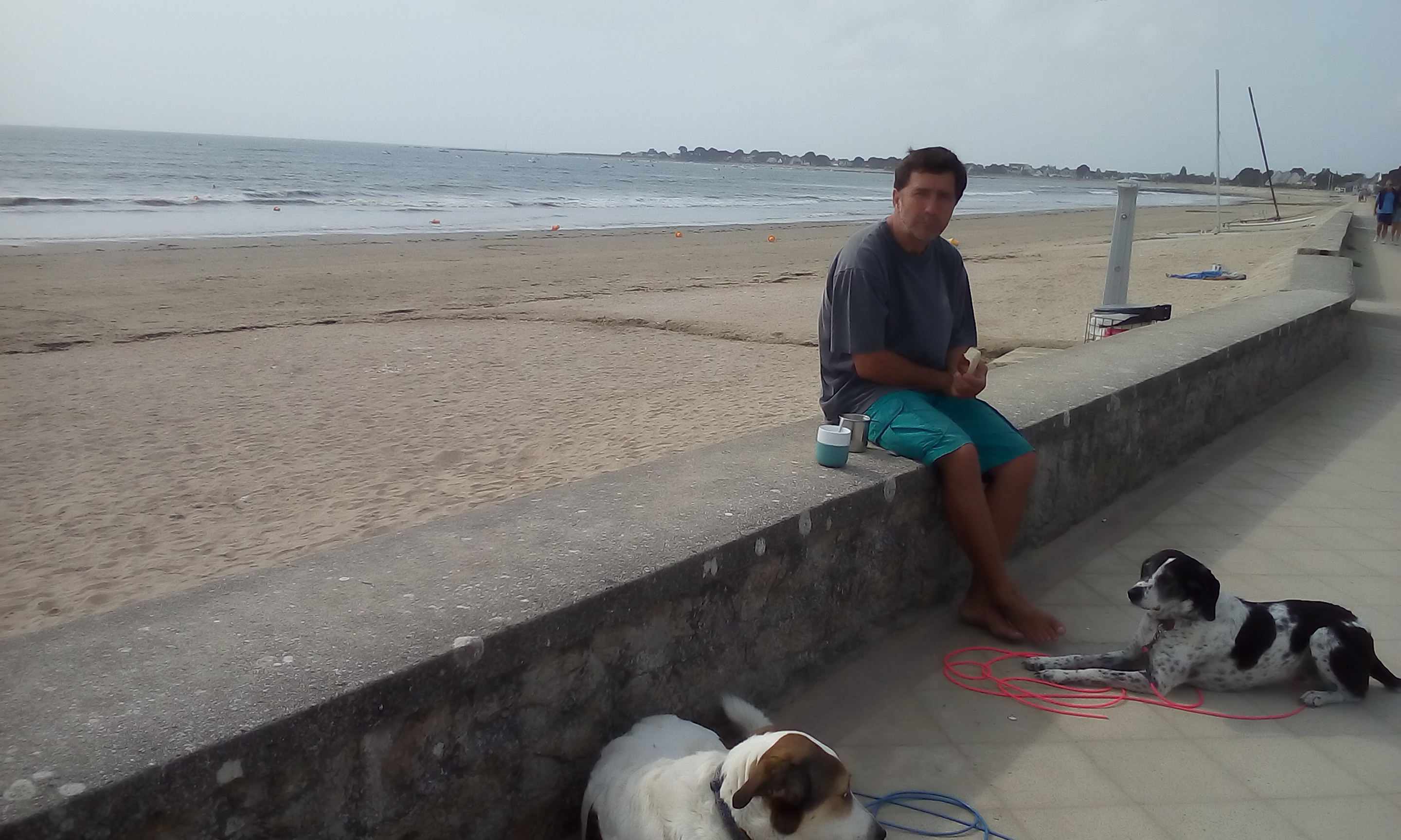 Morgens wurden auf dem Markt von Arzon die Vorräte ergänzt und anschließend Gas getankt. Es geht Wind, daher fahren wir zum Spot von Damgan. Gefunden haben wir ihn nicht, am Stadtstrand ist sogar surfen verboten. Auch das Parken für Wohnmobile ist nicht erlaubt, also fahren wir weiter nach Tréhervé.
