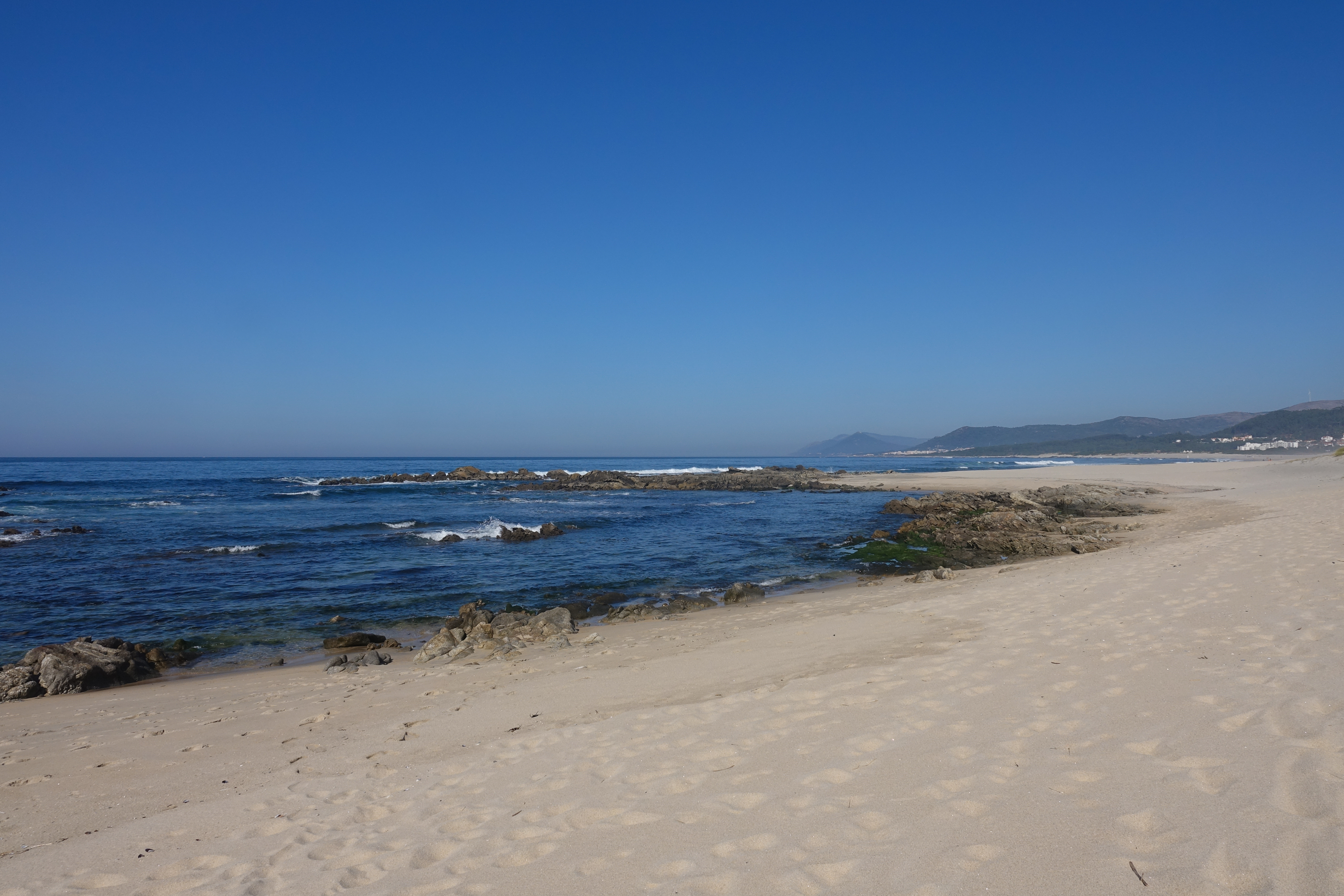Mit ein bisschen Wehmut verlassen wir die wunderschöne Nergabucht, aber wir wollen ja heute noch nach Portugal. Vor 2 Jahren waren wir schon einmal in der Hauptsaison hier und fanden es wunderbar. Heute wollen wir nur ca. 60 km bis Afife. Zuerst frischen wir unsere Vorräte auf und tanken noch einmal Gas. Und am Mittag stehen wir schon am Strand von Afife.