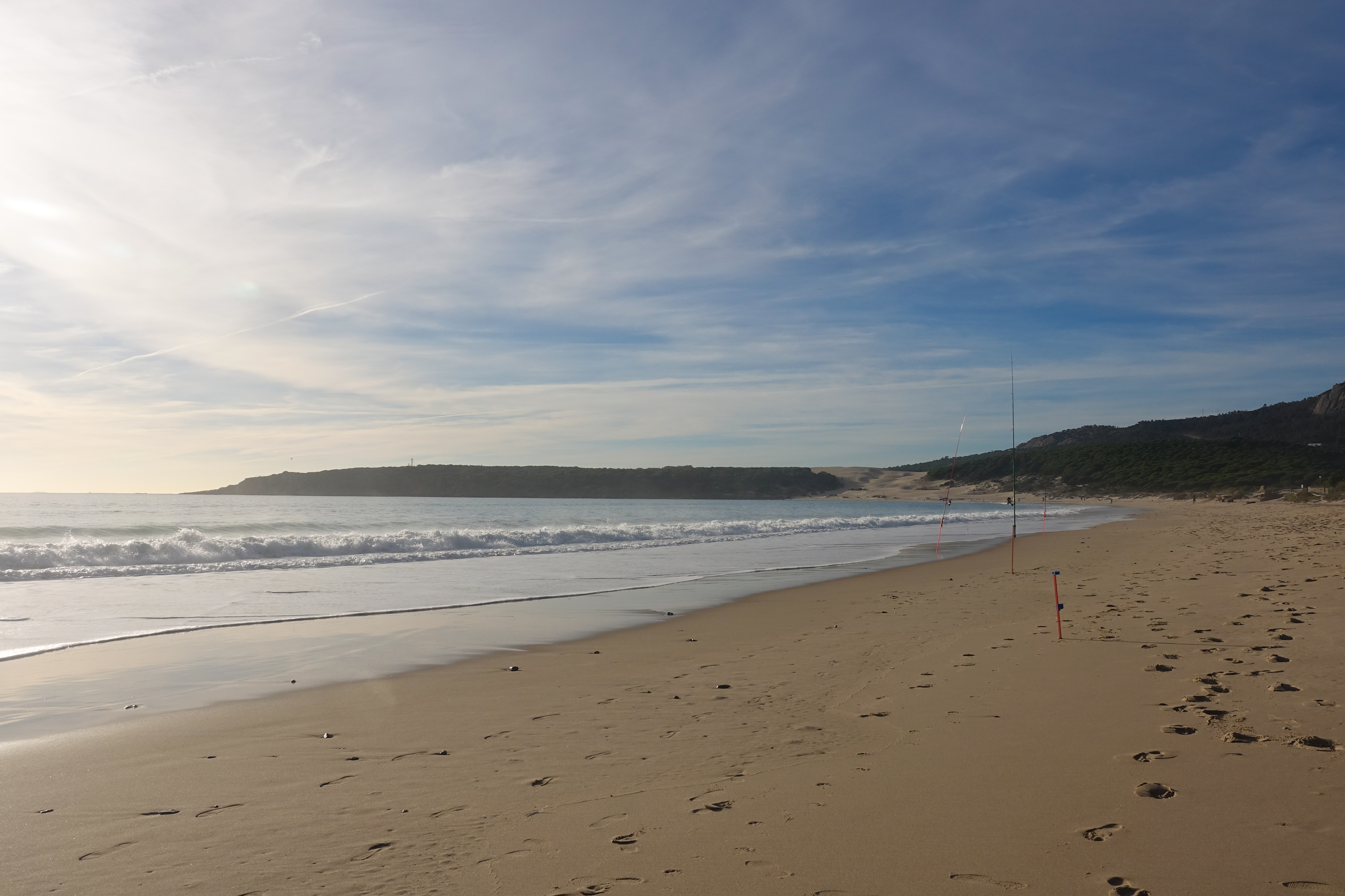 Ursprünglich wollten wir in Barbate übernachten, aber der Strandparkplatz war dermaßen übersät mit Scherben zertrümmerter Autoscheiben, dass wir ihn für zu unsicher hielten. Der Strand ließ allerdings nichts zu wünschen übrig.