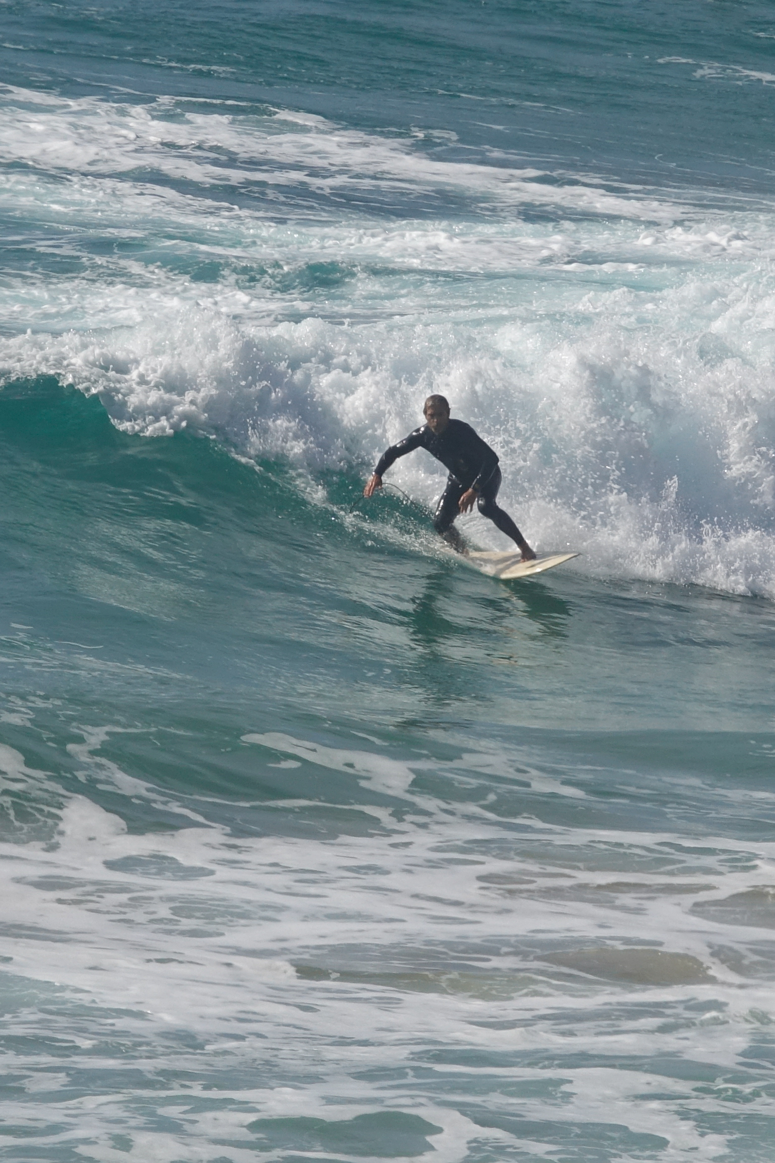 Dafür will Uwe es jetzt wissen und stürzt sich mit dem Bodyboard in die Wellen. Klappt nicht ganz, ist die meiste Zeit unter Wasser. Deshalb gibt es nur Bilder von den Profis.