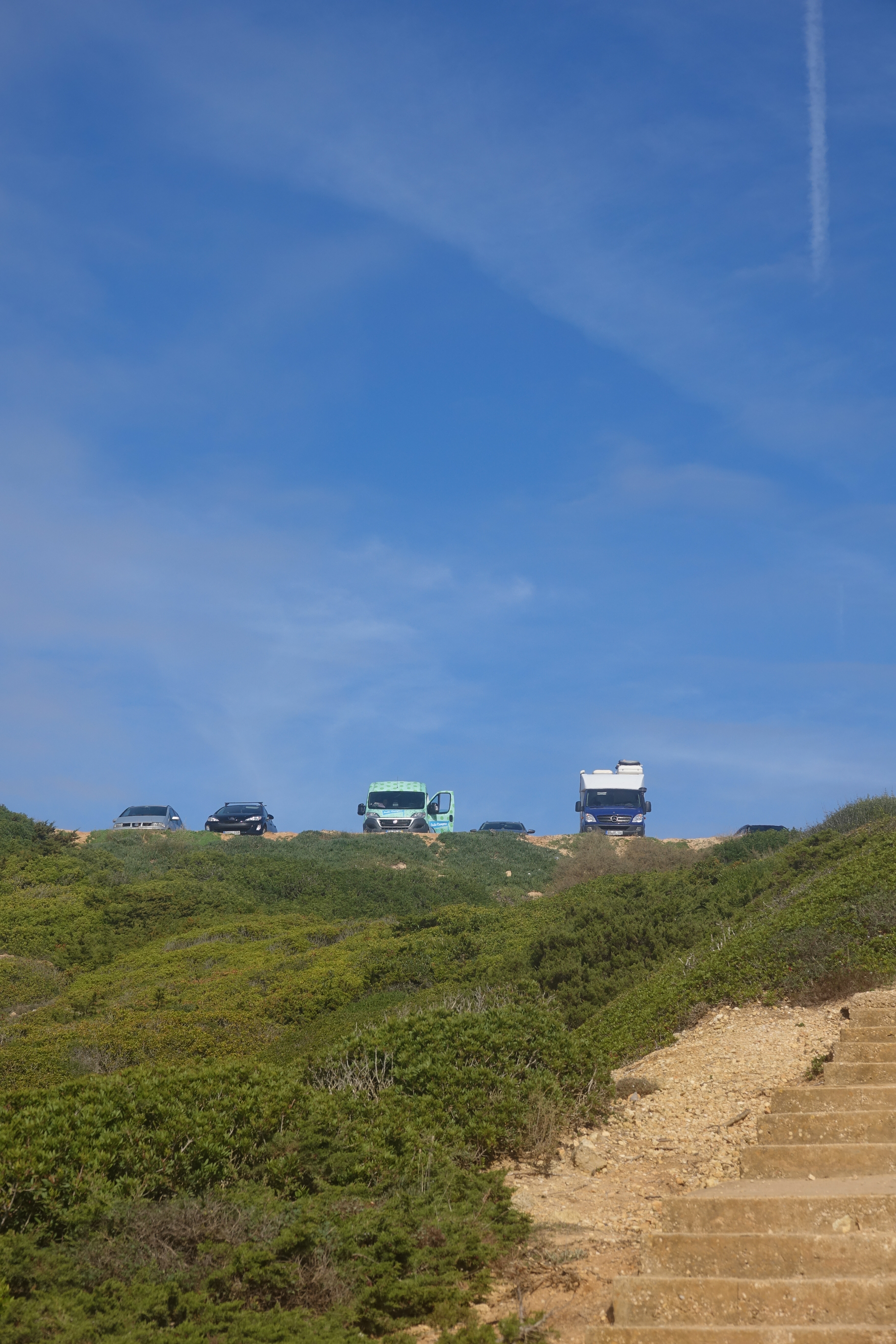 Der Nachteil der Buchten an der Algarve ist, dass das Wohnmobil oben auf den Klippen steht und man selbst viele Stufen entfernt unten am Strand ist.