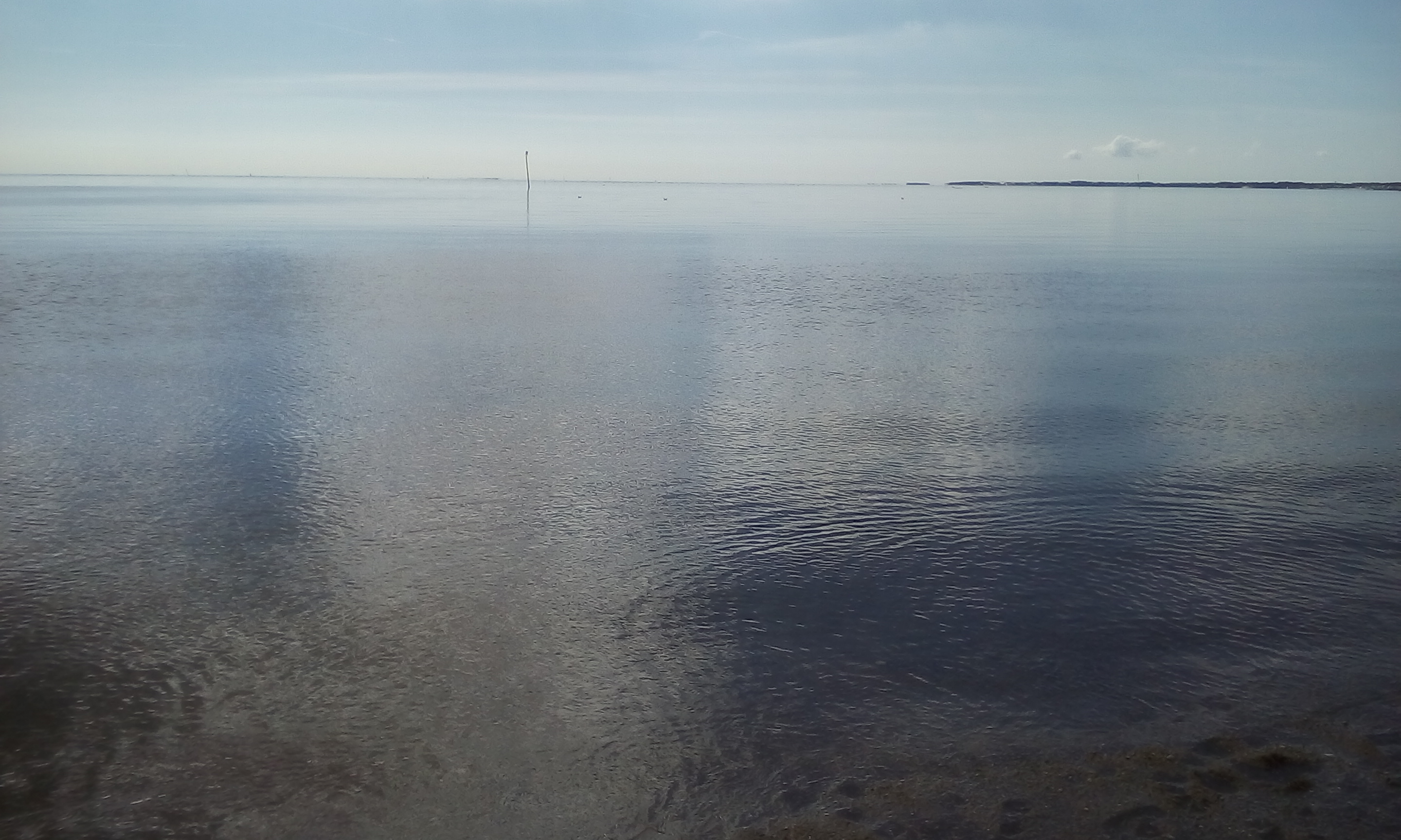 Das Wasser ist spiegelglatt. Und so sieht’s auf der anderen Seite des Sandarms aus.