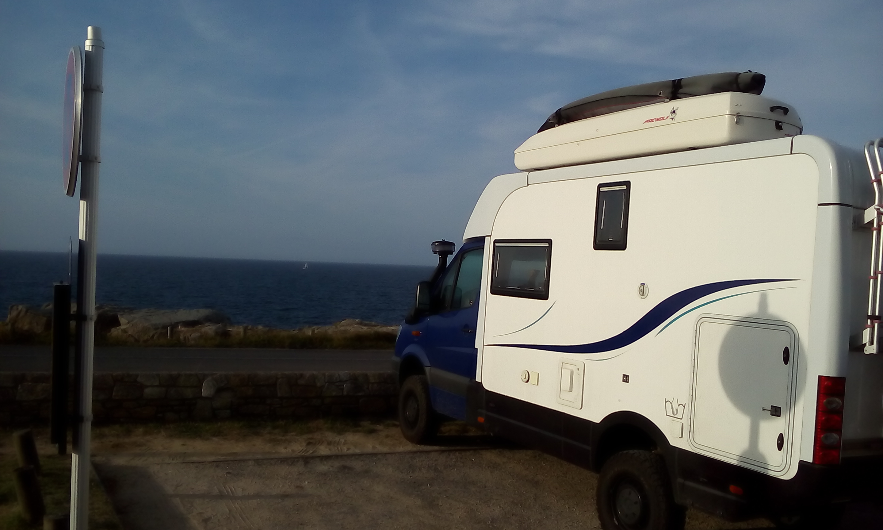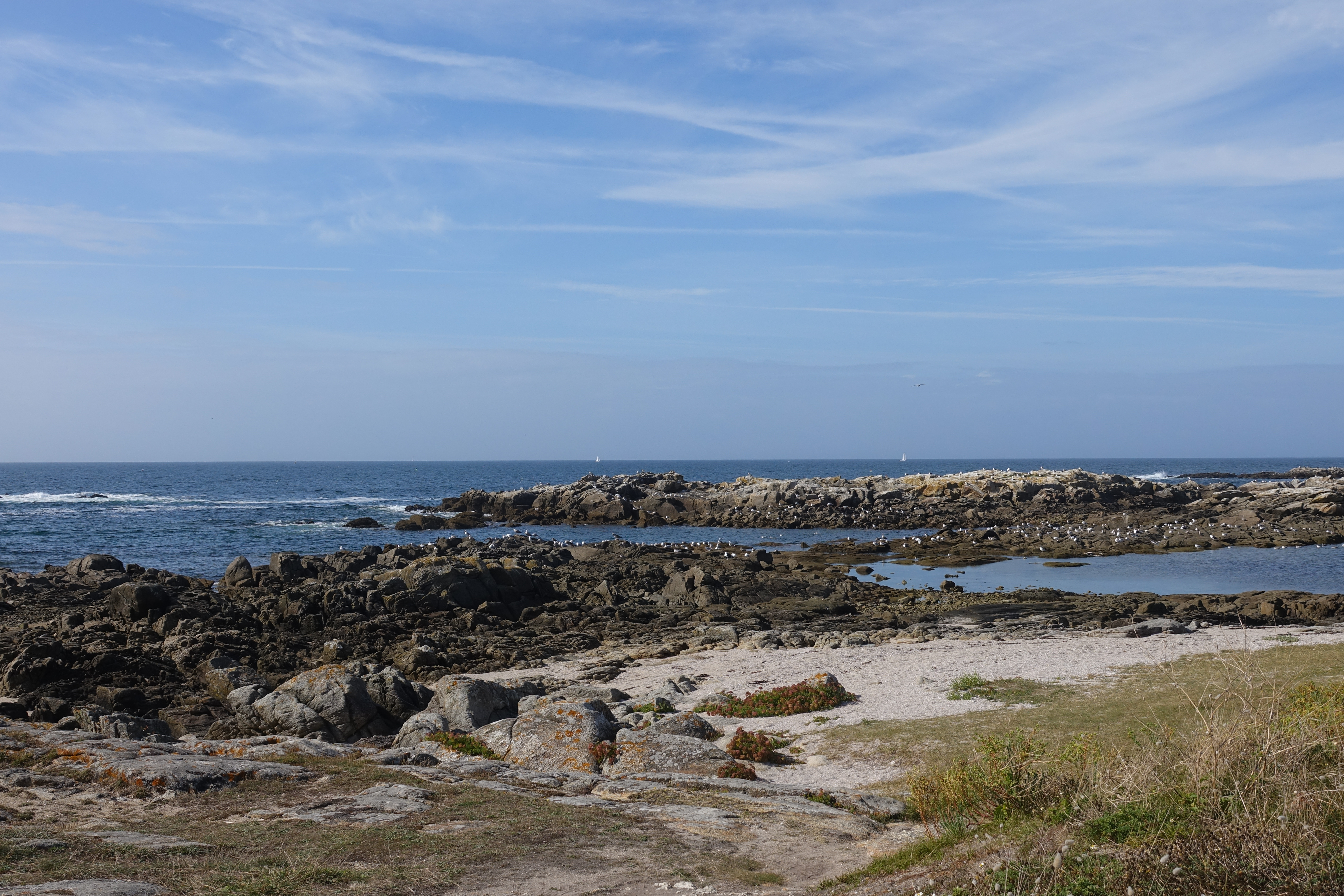 Das ist unser Stellplatz in Croisic. Die Aussicht ist wunderschön, aber zum Baden ist die Felsküste eher ungeeignet.