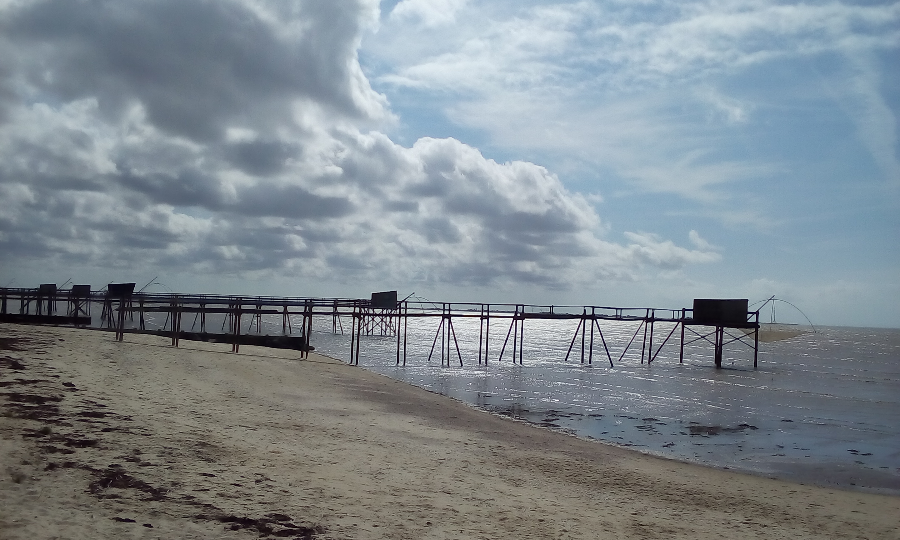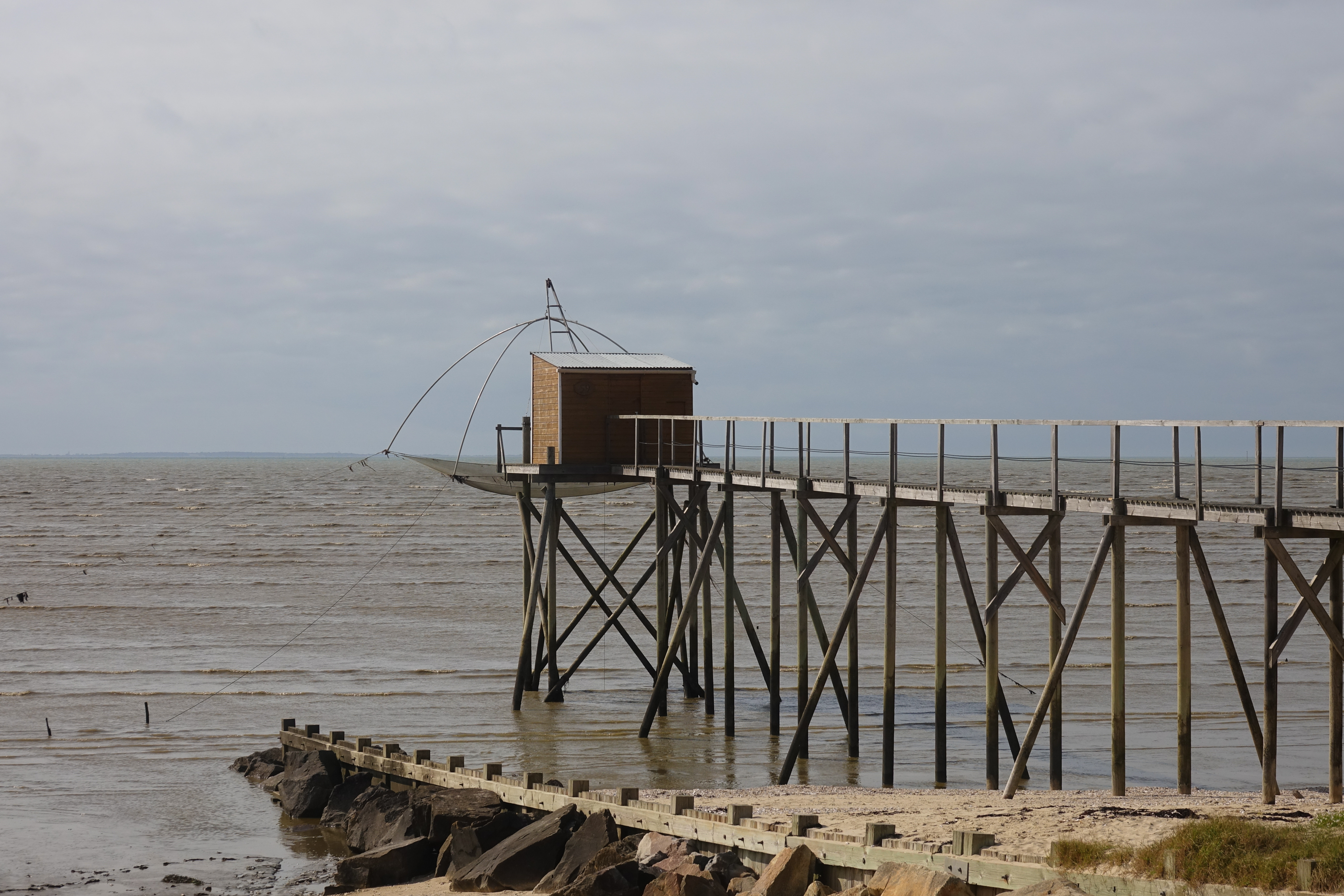 In Les Moutiers-en-Retz legen wir eine Mittagspause ein. Hier gibt es seltsame Stege zum Fischen.