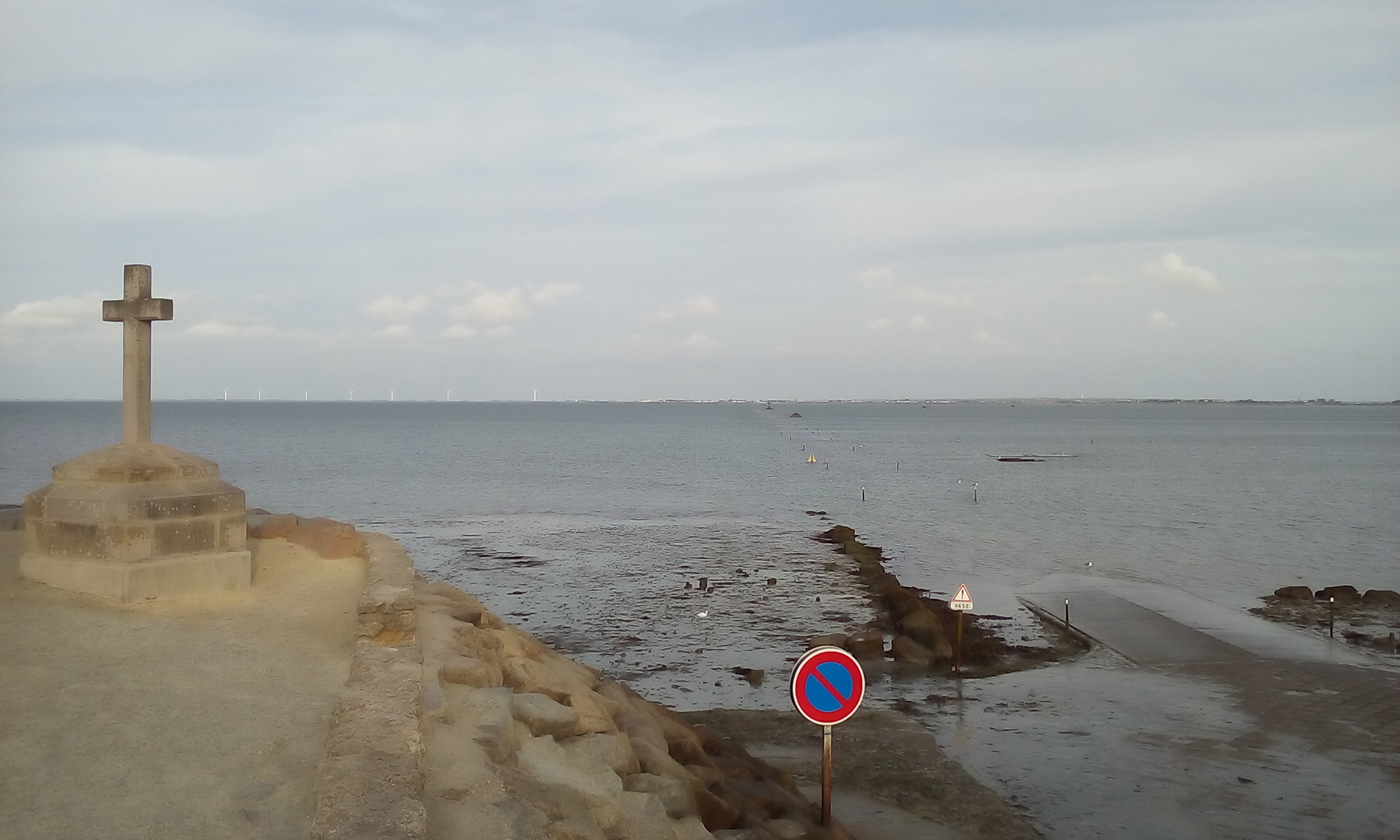 Wir entschließen uns die Passage du Gois heute und morgen zu machen. Die Passage du Gois ist eine über 4000 Meter lange Furt, die nur bei Ebbe befahrbar ist. Wie von Geisterhand erscheint eine Straße aus dem Meer. Eine Stunde vor und nach Tiefstand der Ebbe kann die Straße befahren werden. Leider sind die Gezeiten heute ungünstig, es dämmert schon als wir losfahren können.