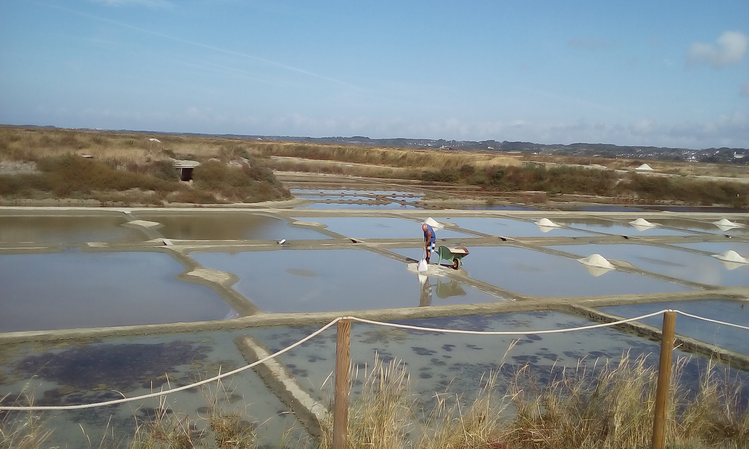 Das berühmte Fleur de Sel wird auch hier hergestellt, die besondere Farbe und der außergewöhnliche Geschmack kommen wohl von den vielen Möwen.