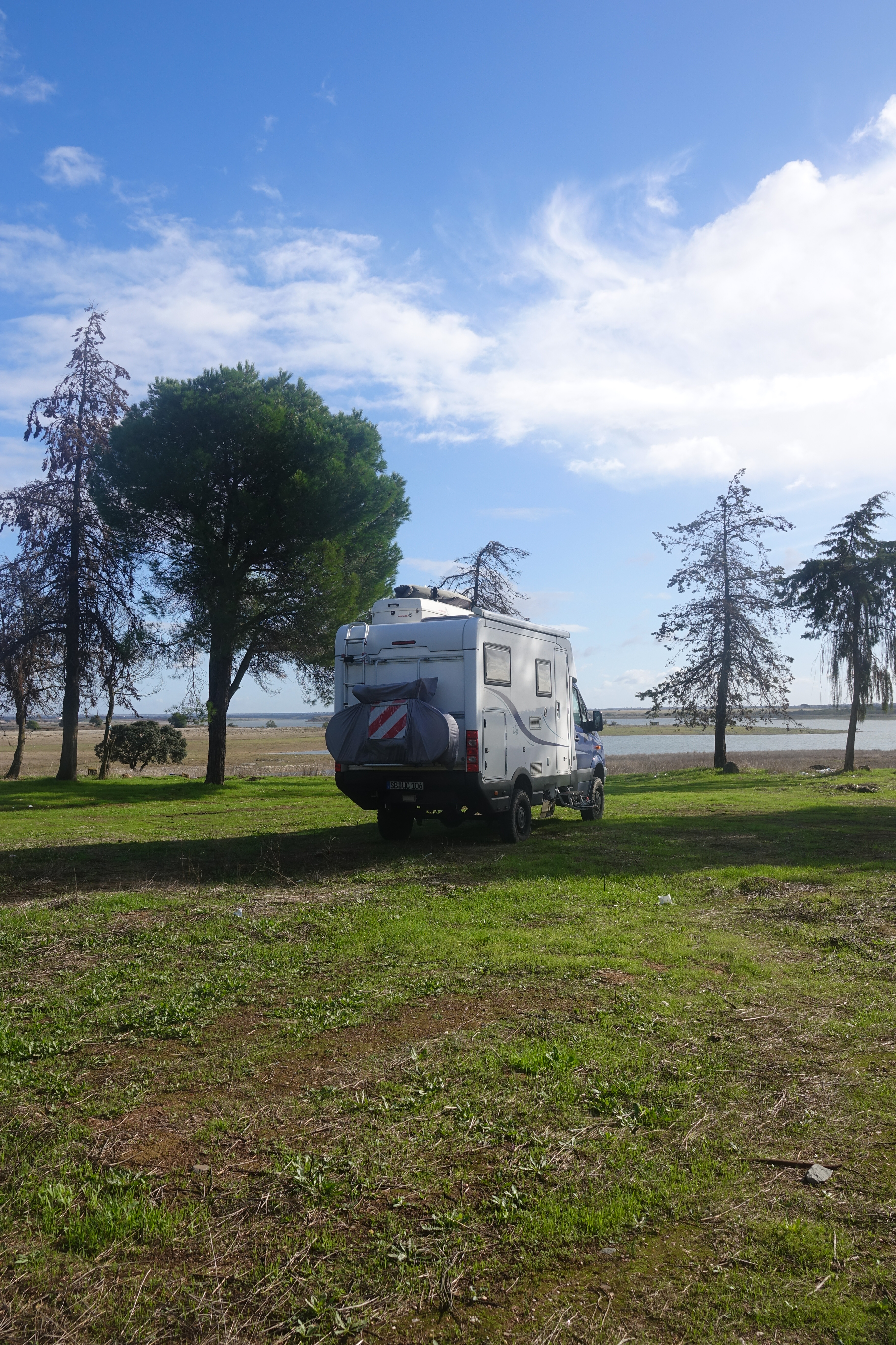 Barragem heißt auf Portugiesisch Staumauer. Wir haben heute Nacht superruhig geschlafen, so ganz ohne Wellenrauschen. Das macht doch einen Riesenunterschied. Wir haben gelesen, mit anderen Wohnmobilfahrern erzählt und getrödelt. Eigentlich haben wir hier nur Leute getroffen, die im Süden überwintern, den Job hingeschmissen haben und die waren zum Teil jünger als wir.