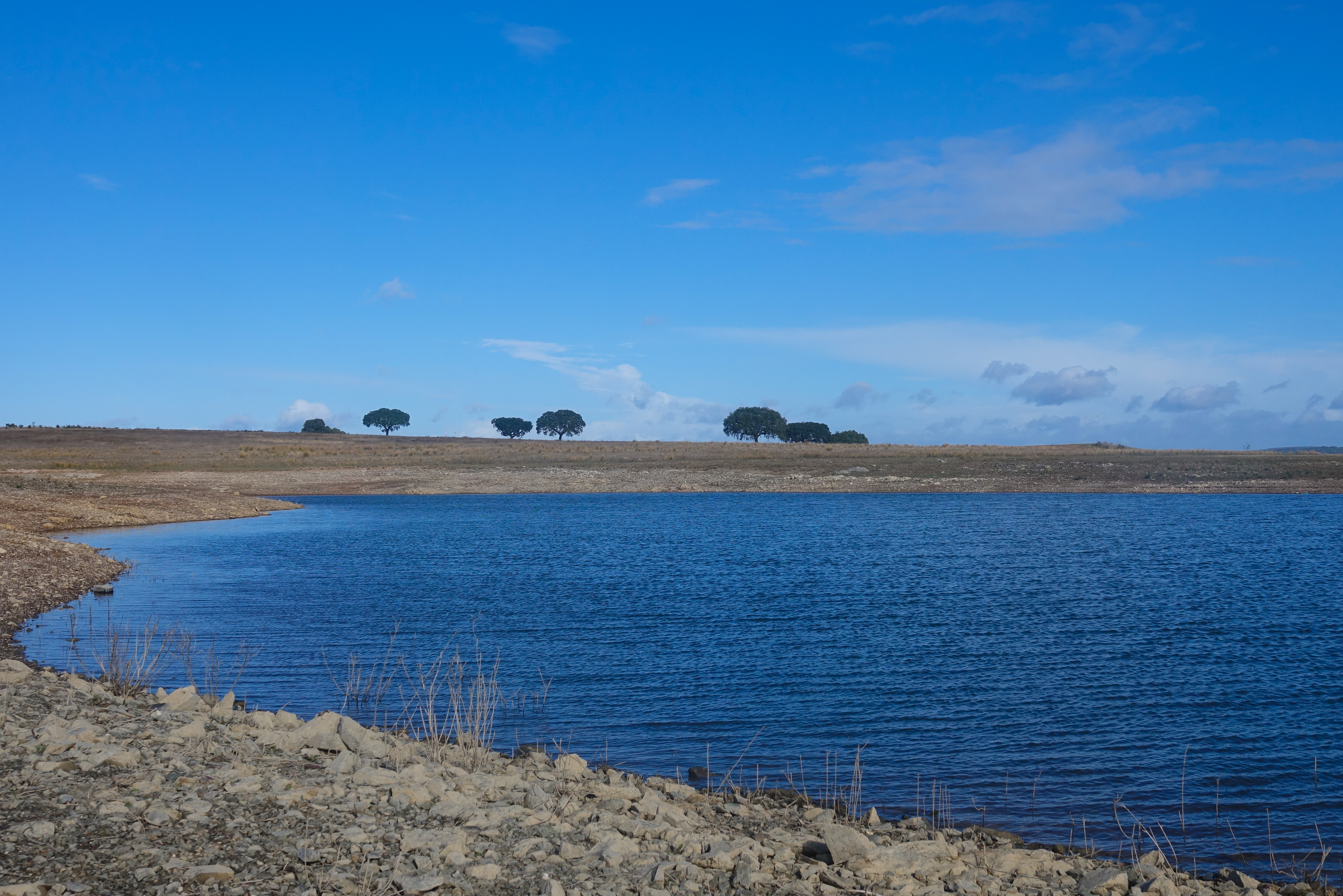 Eigentlich ist der Wasserstand des Stausees Monte da Rocha wesentlich höher, aber es hat wohl noch nicht genug geregnet.
