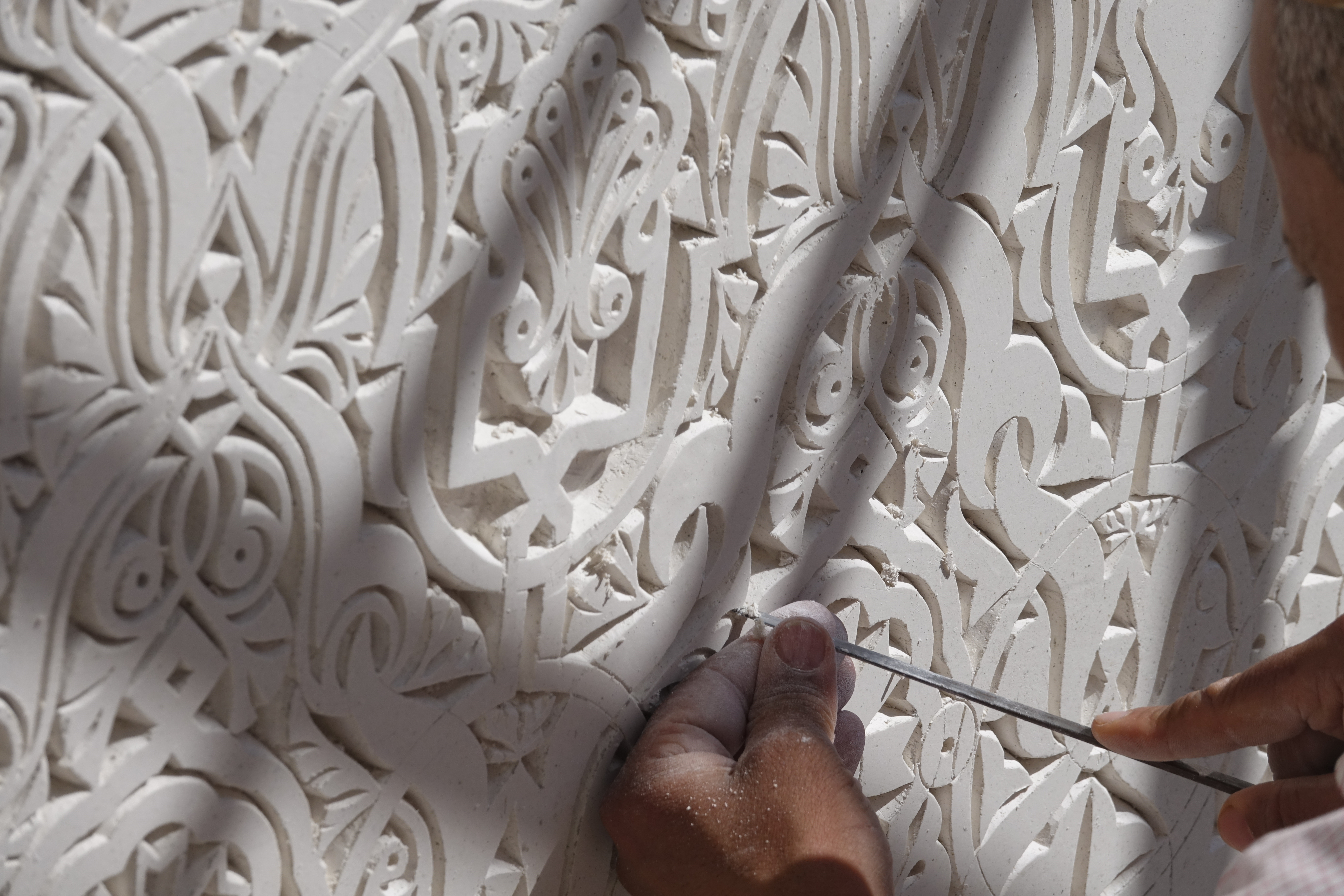 Als wir vorwitzig in einen Innenhof spitzen, können wir den Handwerkern beim Erstellen der filigranen Stuckarbeiten zuschauen.