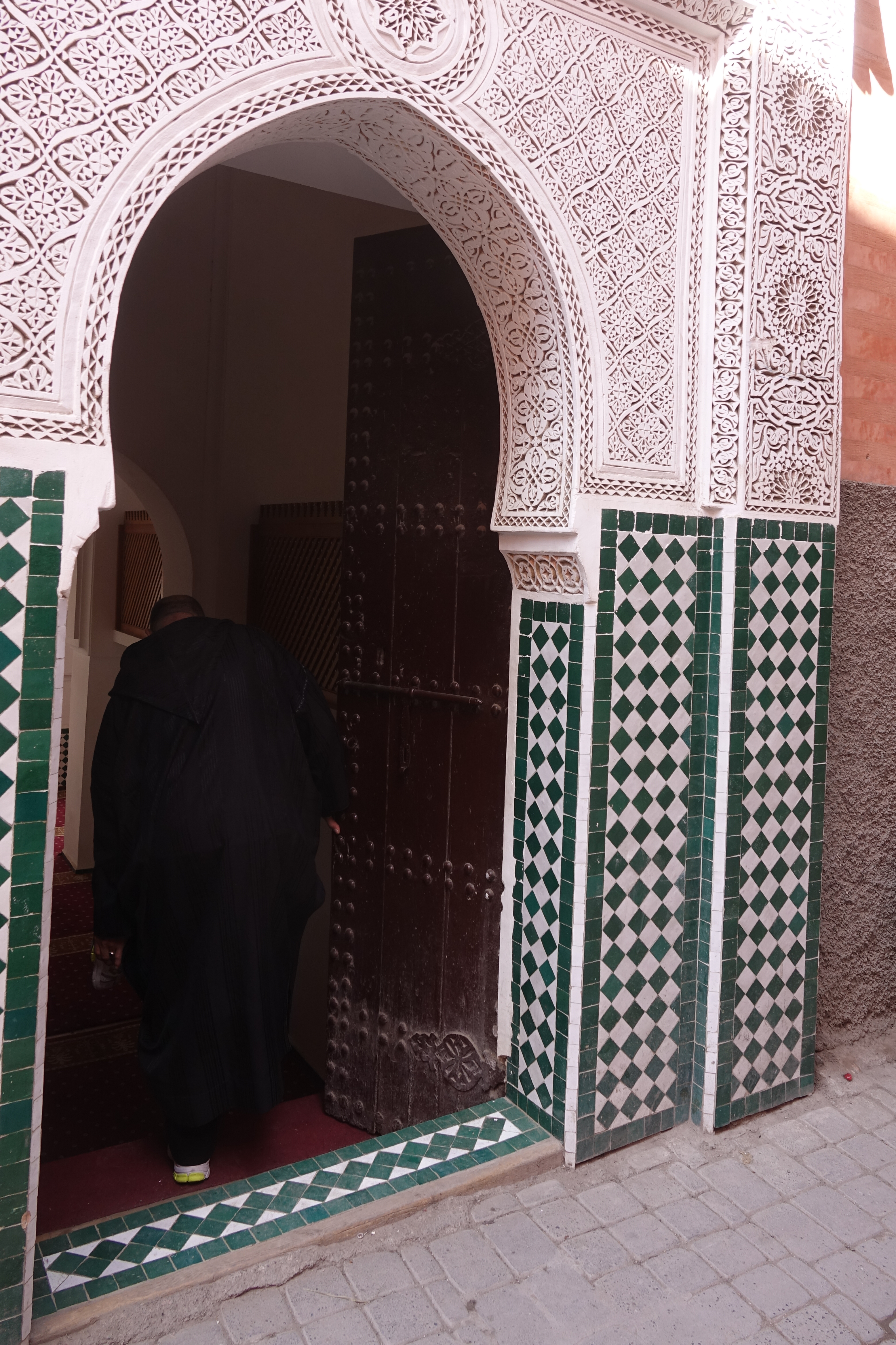 Mit dem Finden des Stellplatzes hatte unser Navi wieder seine Probleme. Letztendlich stranden wir in den winzigen Gässchen der Medina und können ein enges Tor nicht passieren. Ein netter Marrokaner weiß einen Ausweg. Er geht zu den Polizisten die den Verkehr regeln und bittet sie den Gegenverkehr anzuhalten, weil dort das Tor breiter und höher ist. Ein Polizist macht auch genau das und winkt uns durch das größere Tor, beschwert sich dann aber, dass wir die engen Gassen überhaupt befahren haben und will 400 Dirham von uns weil wir nun auf der Gegenfahrbahn stehen. Wir diskutieren, aber er bleibt hartnäckig, kontrolliert unsere Papiere, lässt sich aber nicht erweichen. Ganz zum Schluss kommt die obligatorische Frage: „Brauchen Sie eine Quittung?“. Wir verneinen und schon vermindert sich der Betrag auf 100 Dirham. Ja, das ist sicherlich nicht richtig weil es sich um Korruption handelt, aber wir haben uns mal wieder ungerecht behandelt gefühlt, weil wir aus eigenem Antrieb nicht auf die Spur des Gegenverkehrs gefahren wären.