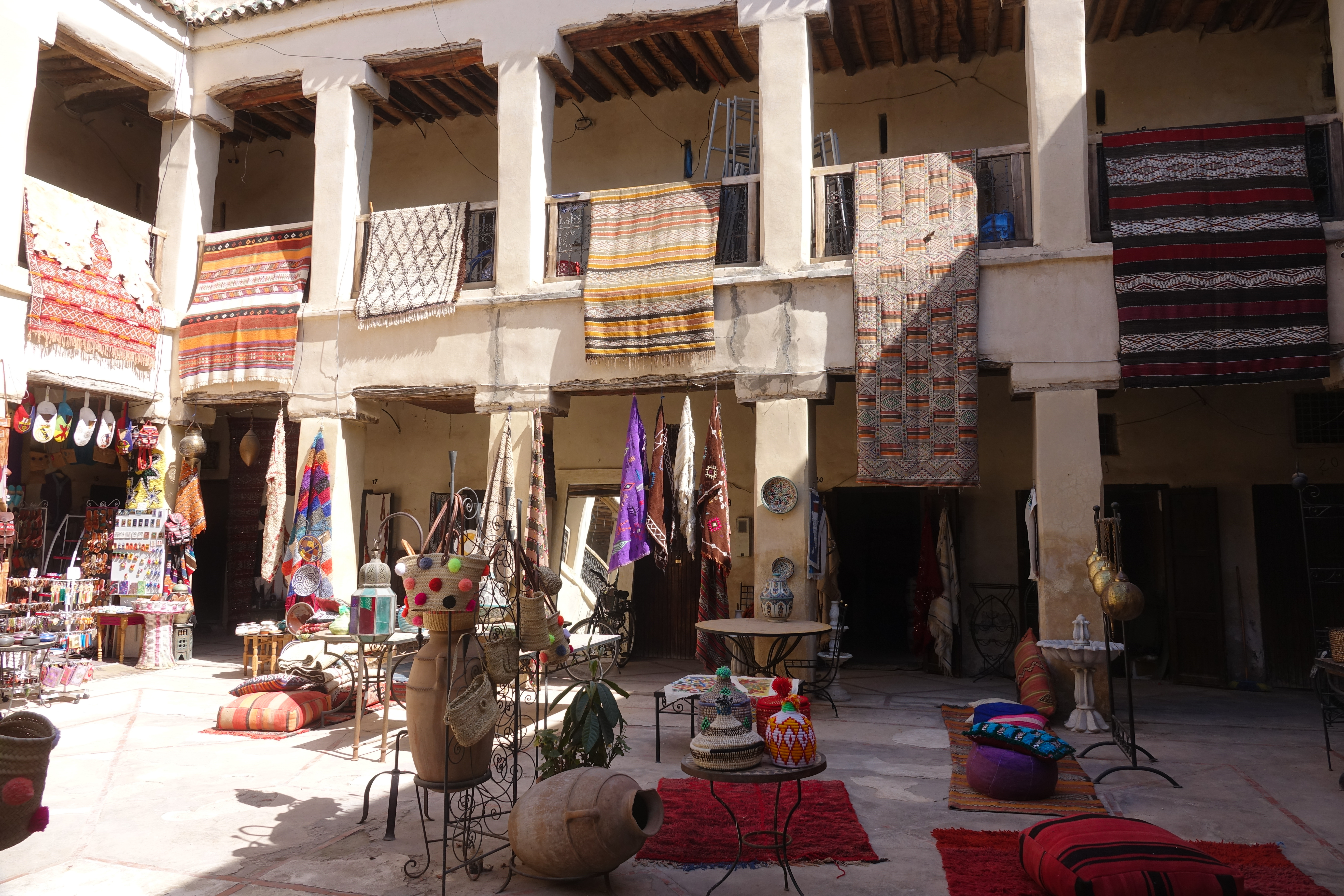 Vom Parkplatz an der Koutoubia Moschee bummeln wir wieder durch den Soukh. Das Kaufhaus, was Jan von seinem Freund empfohlen bekam, ist zwar ganz nett anzusehen, aber zum Kaufen sprengt es doch unser Budget. Immer wieder entdeckt man beim Bummeln nette Ecken.
