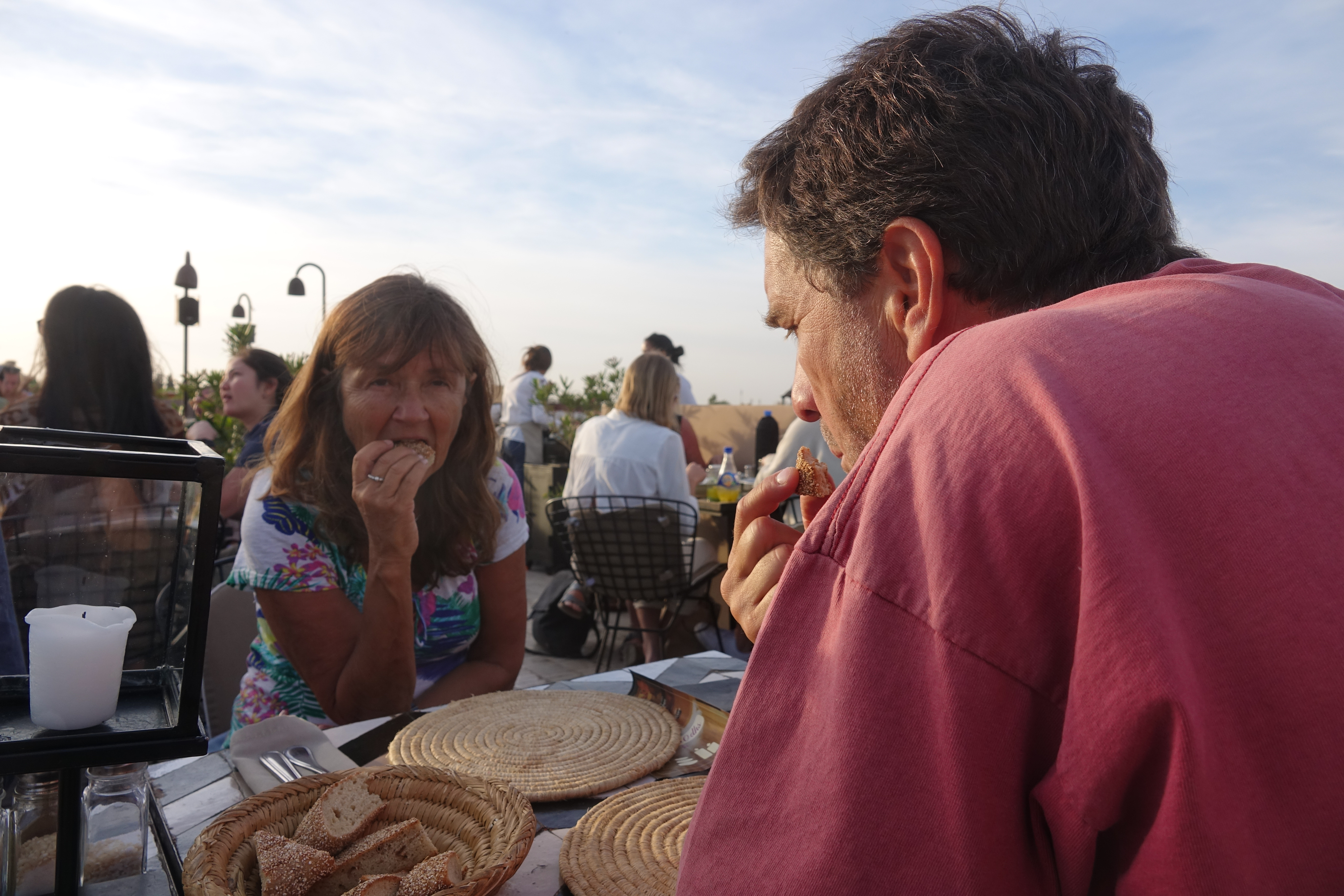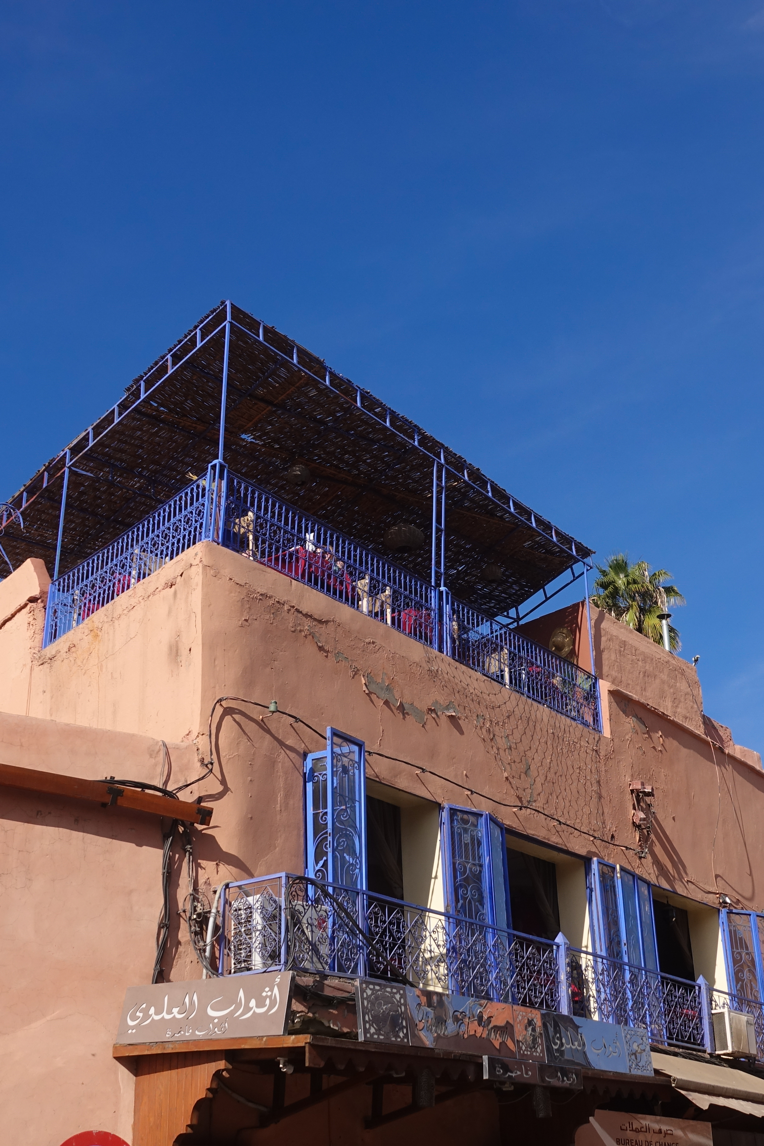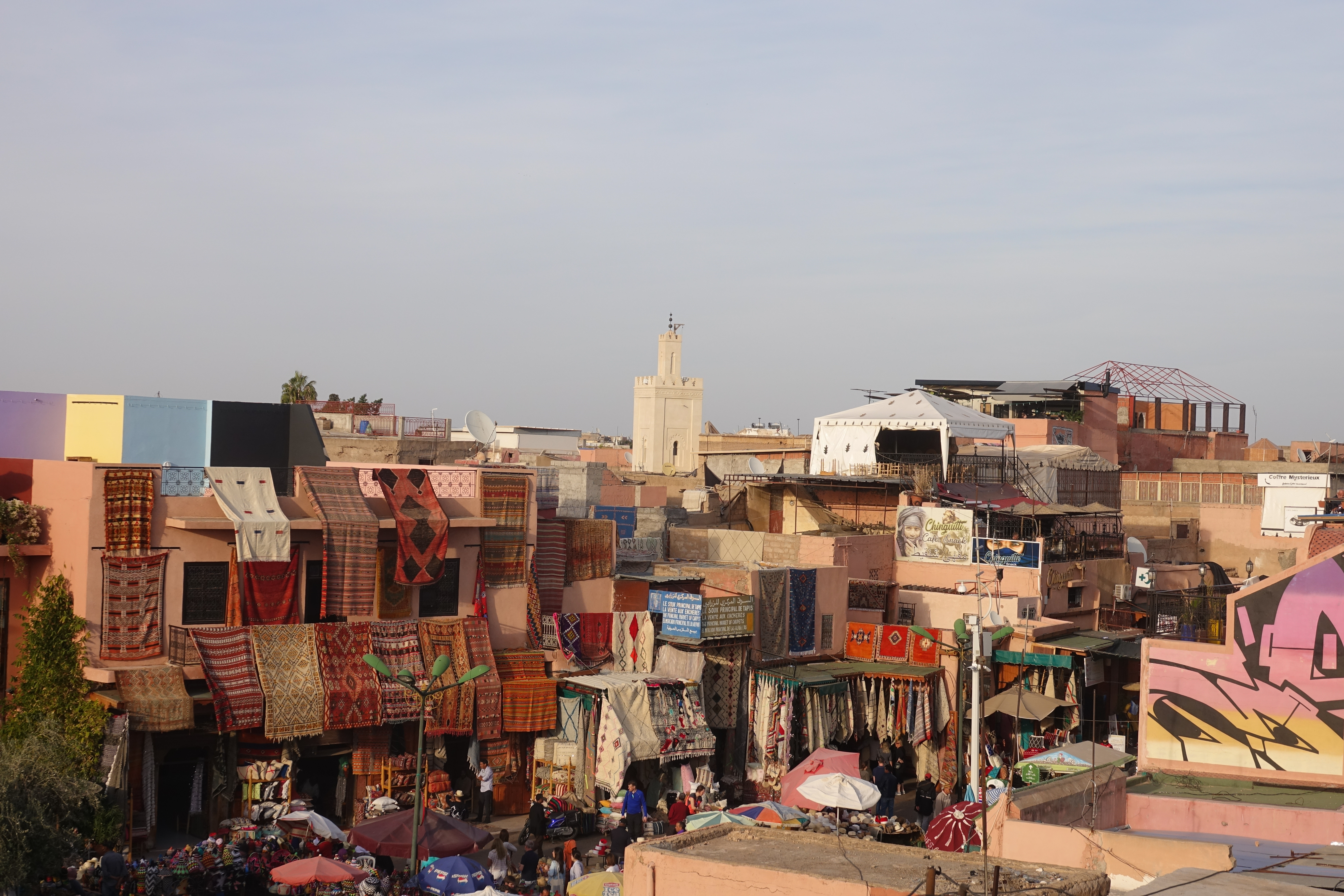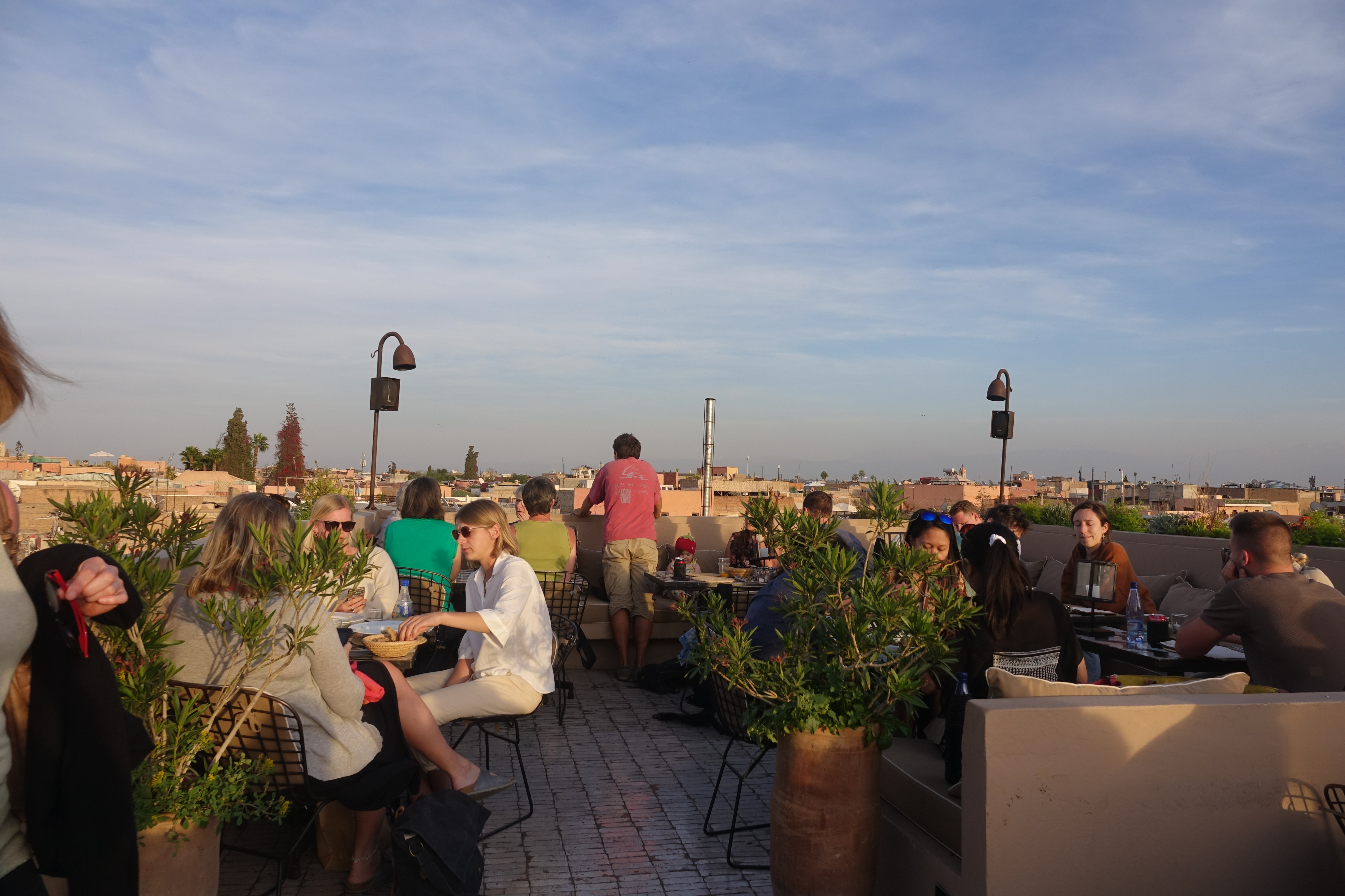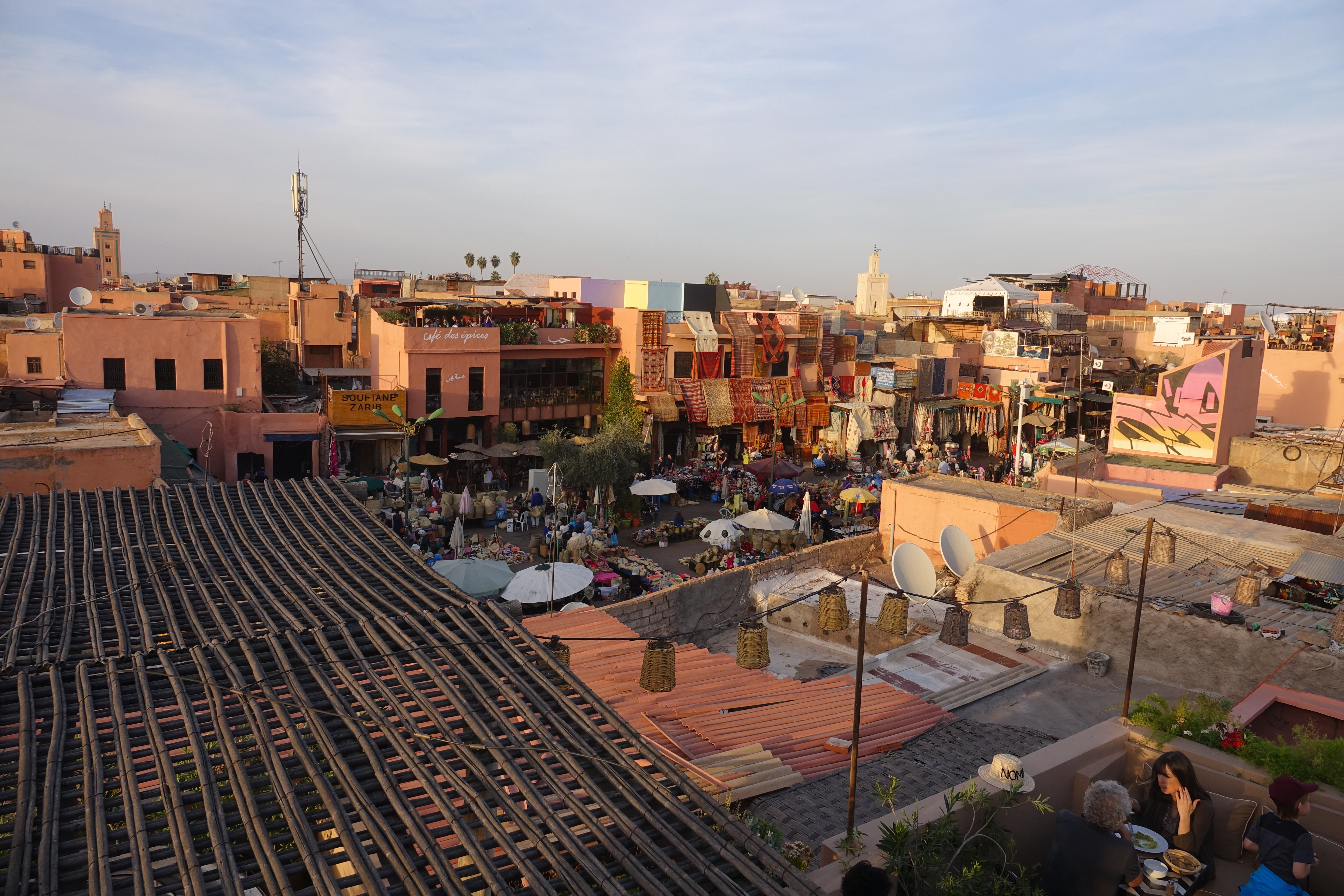 Von unserem Tisch im Le Nomad über den Dächern des Soukhs kann man sich das wilde Treiben mit etwas Abstand betrachten. Das Essen dort ist ausgezeichnet, aber nur angelehnt an die traditionelle marokkanische Küche. So gut gewürzt und kreativ verfeinert isst man sonst in Marokko eher nicht.