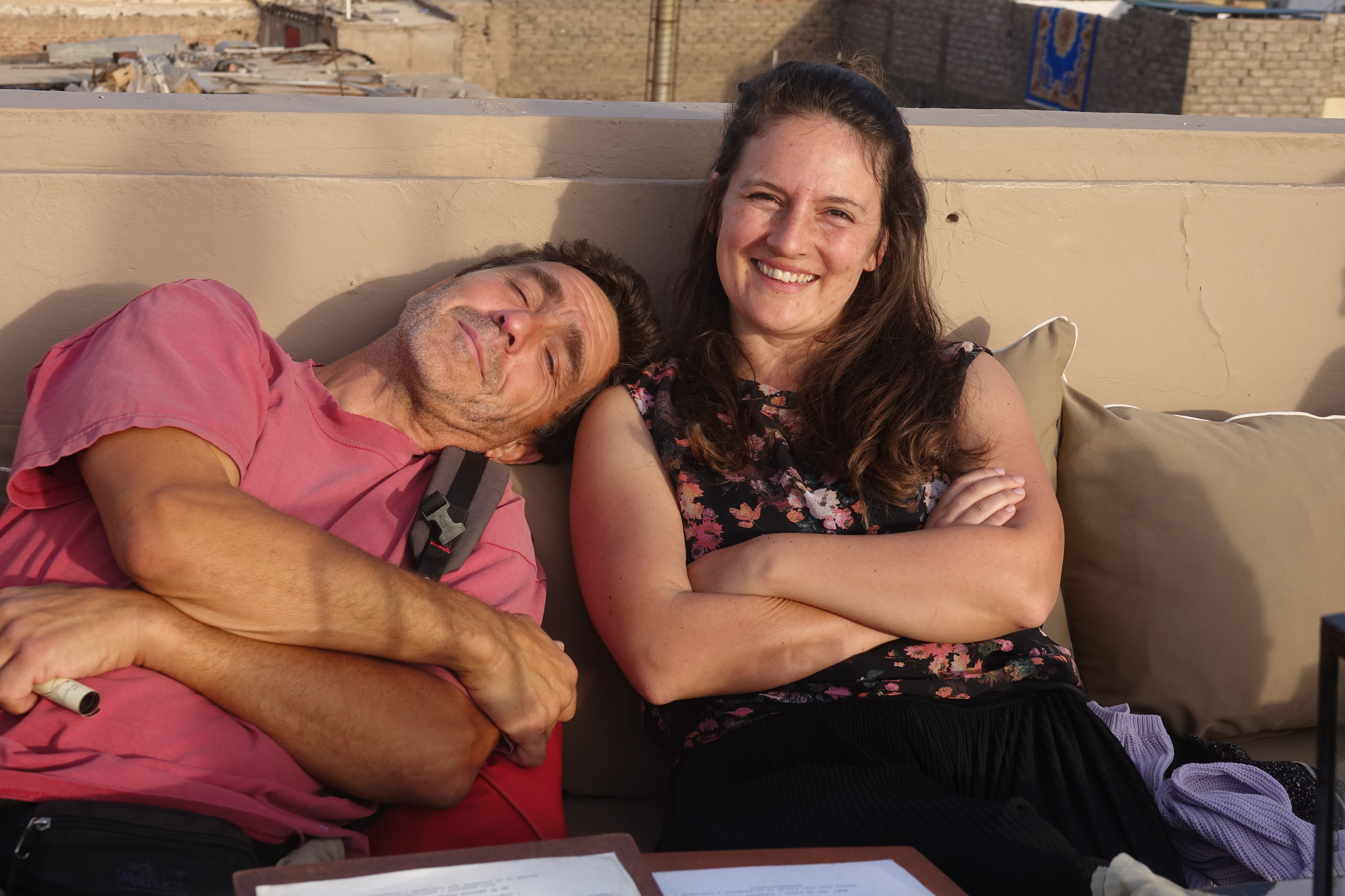 Auf unserem Parkplatz hinter der Koutoubia Moschee nehmen wir Abschied von Jan, Lisa und Amalchen. Morgen früh fliegen sie von Marrakesch nach Köln zurück und wir werden dann vom Gesang des Muezzins geweckt.