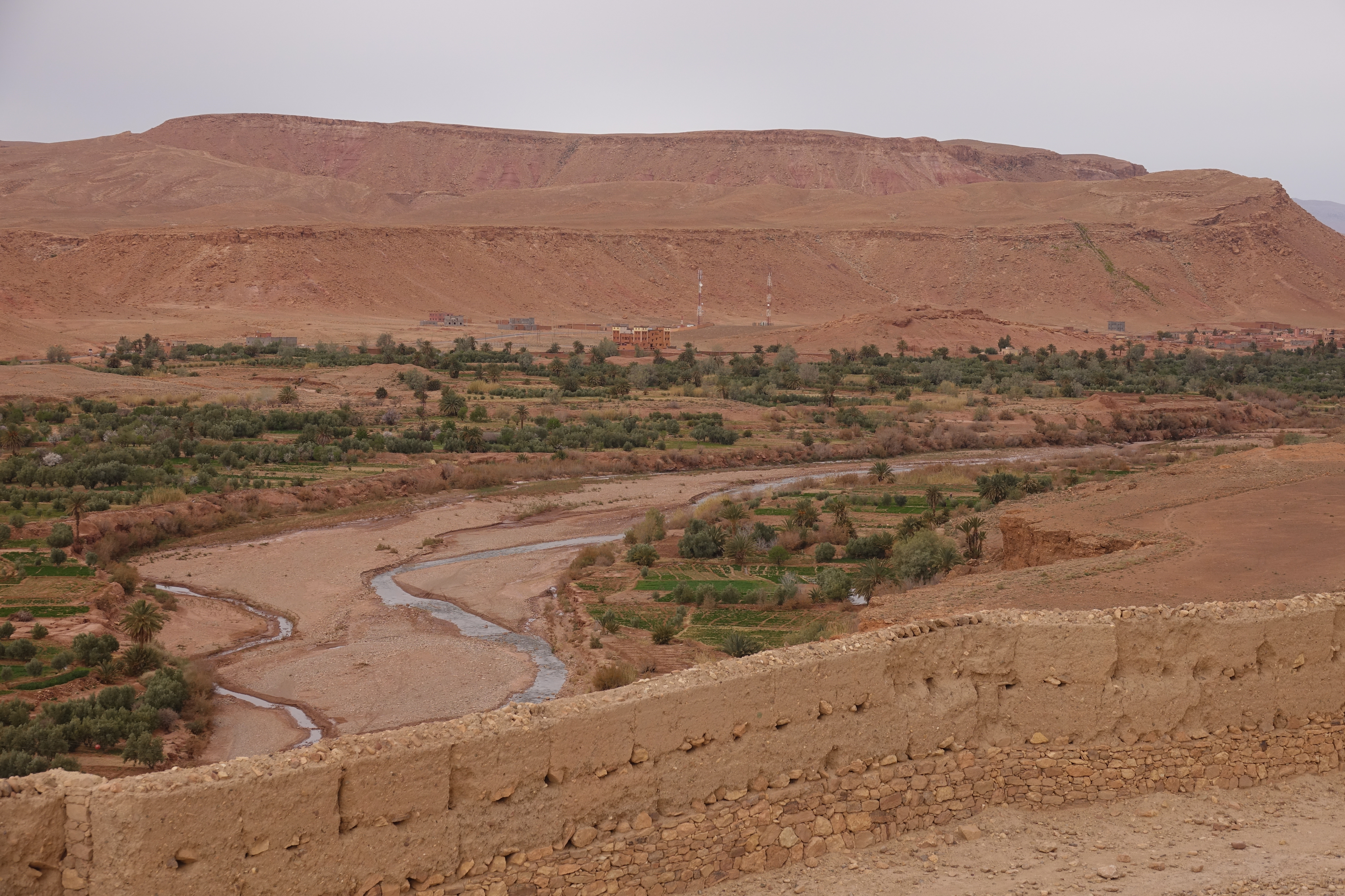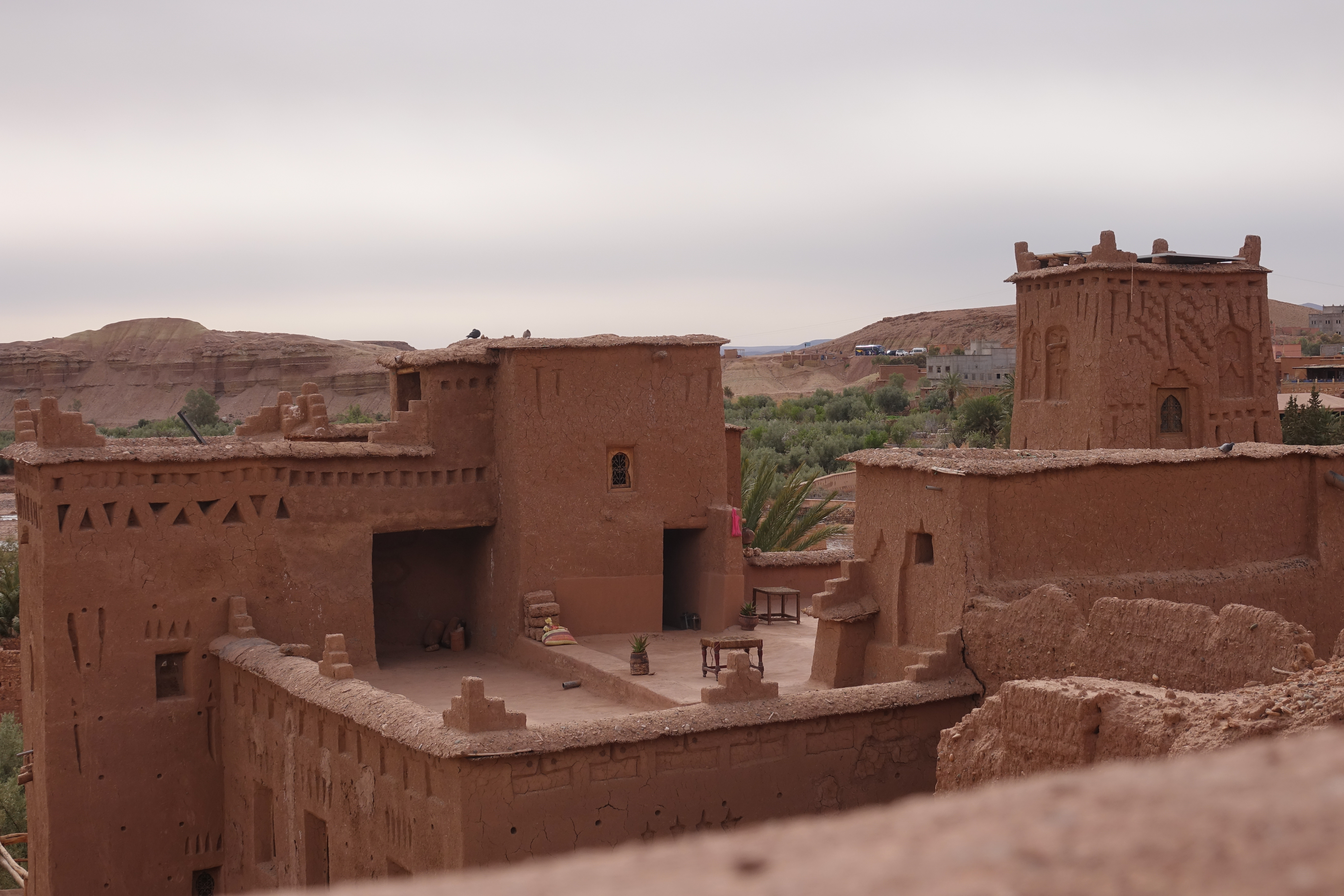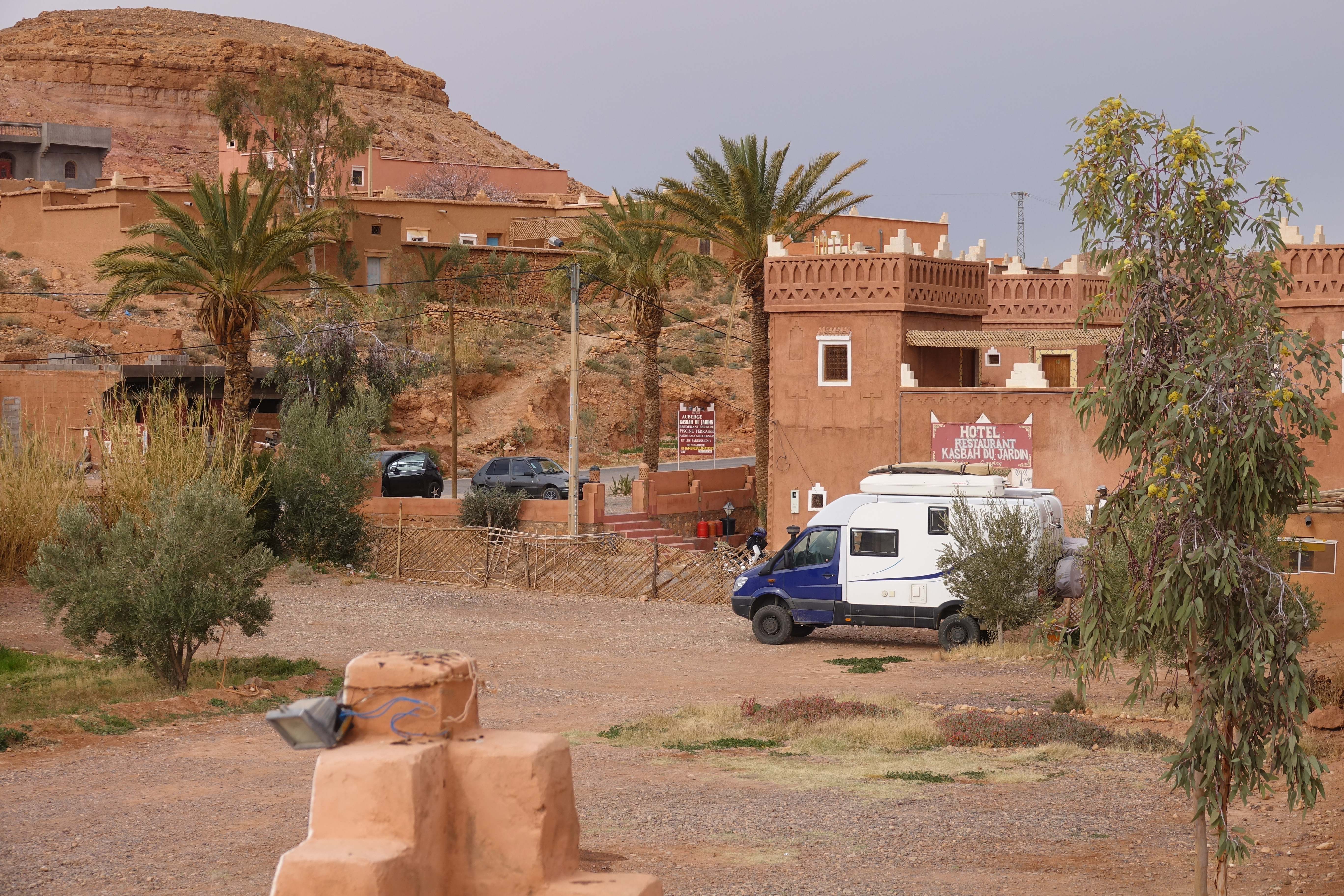 So ein Pech! Unser erster trüber Tag in Marokko! Das Licht ist nicht gut zum Fotografieren, aber noch eine Nacht hier verbringen, damit das Licht morgen besser ist, kommt auch nicht in Frage. Wir haben zwar ruhig übernachtet, aber außer der Besichtigung der alten Lehmburg kann man hier nichts machen.