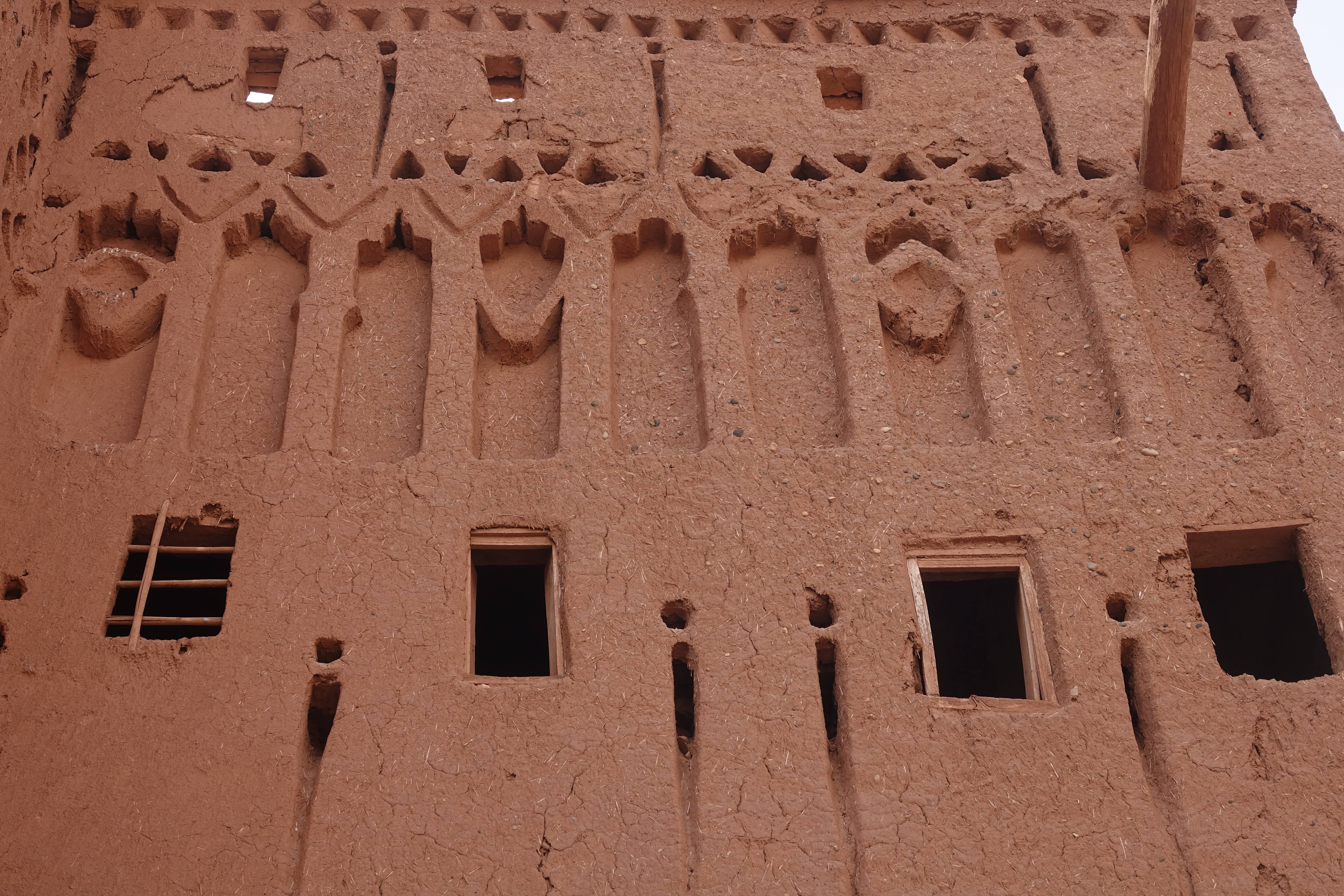 Diese Tighremts (eng aneinander gebaute und teilweise ineinander verschachtelte Wohnburgen) liegen an der alten Karawanenstraße zwischen Timbuktu in Mali und Marrakesch.