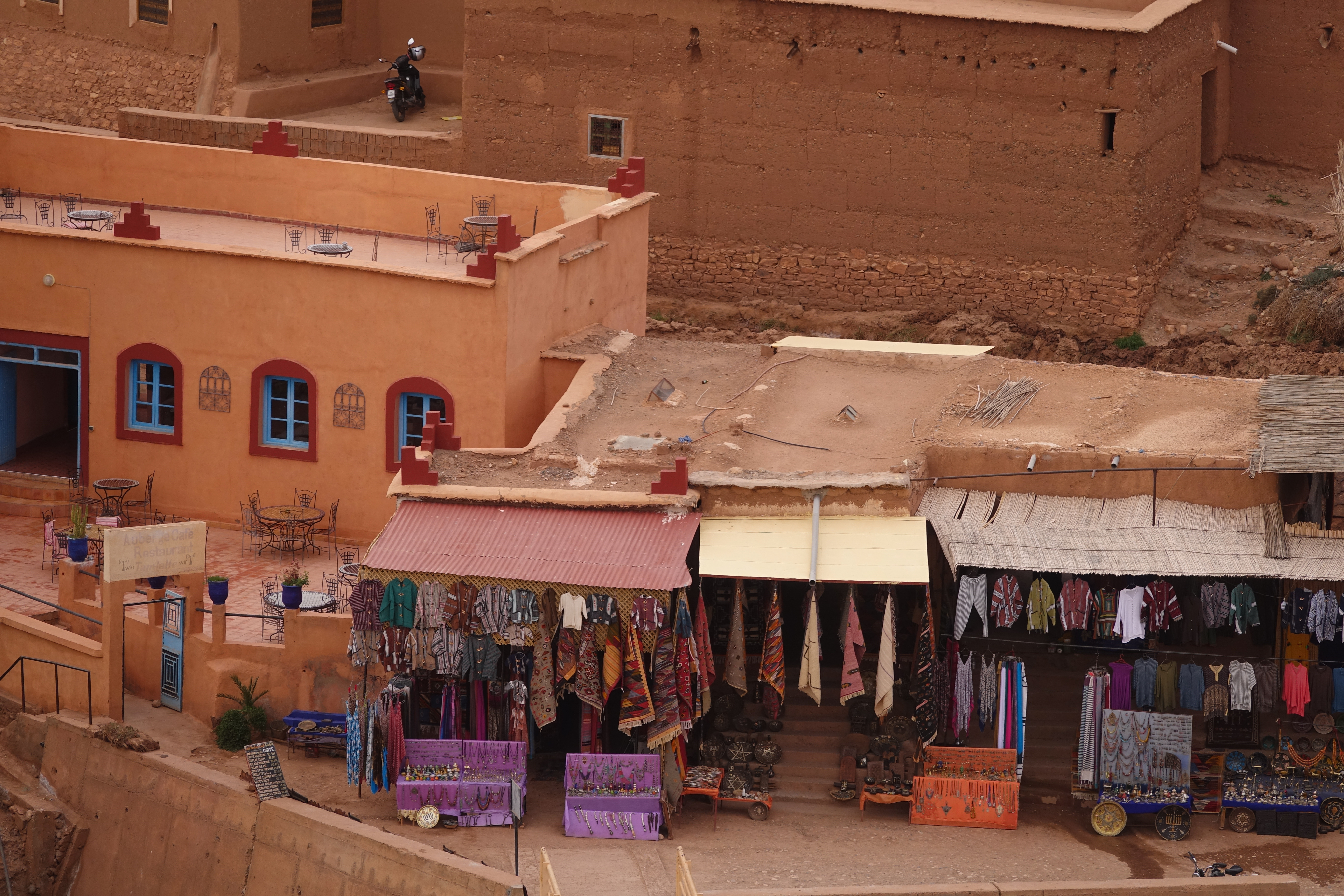 Wir sind ein bisschen enttäuscht. Obwohl Ait Benhaddou Geld von der UNESCO bekommt, machen die Marokkaner einen riesigen Andenkenladen aus der tollen Anlage. Vor 5 Jahren gab es nur ganz wenige Läden im unteren Bereich.