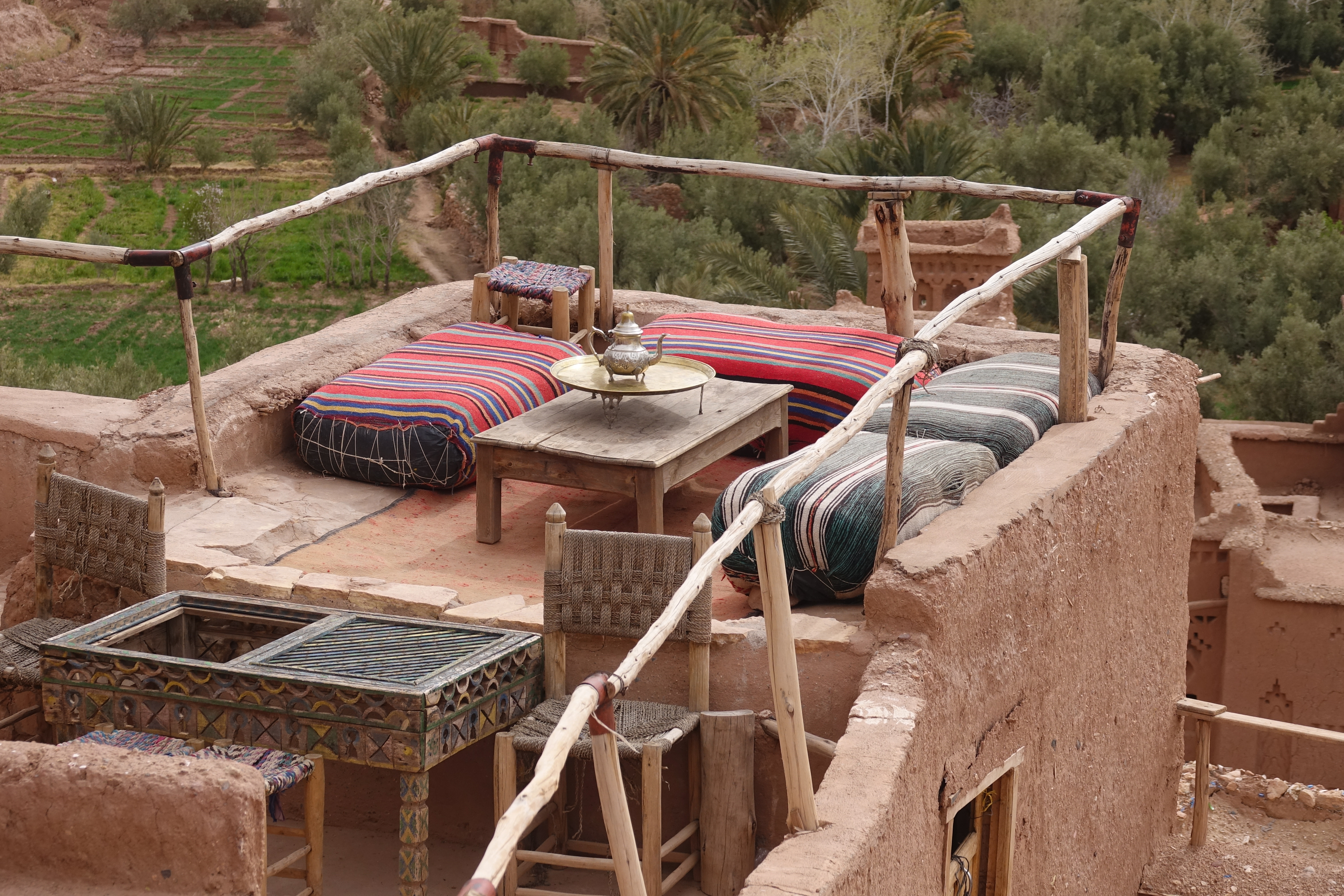 Man kann auch auf den Dachterrassen mit herrlicher Aussicht ins Tal sitzen und den leckeren Thé à la Menthe genießen.