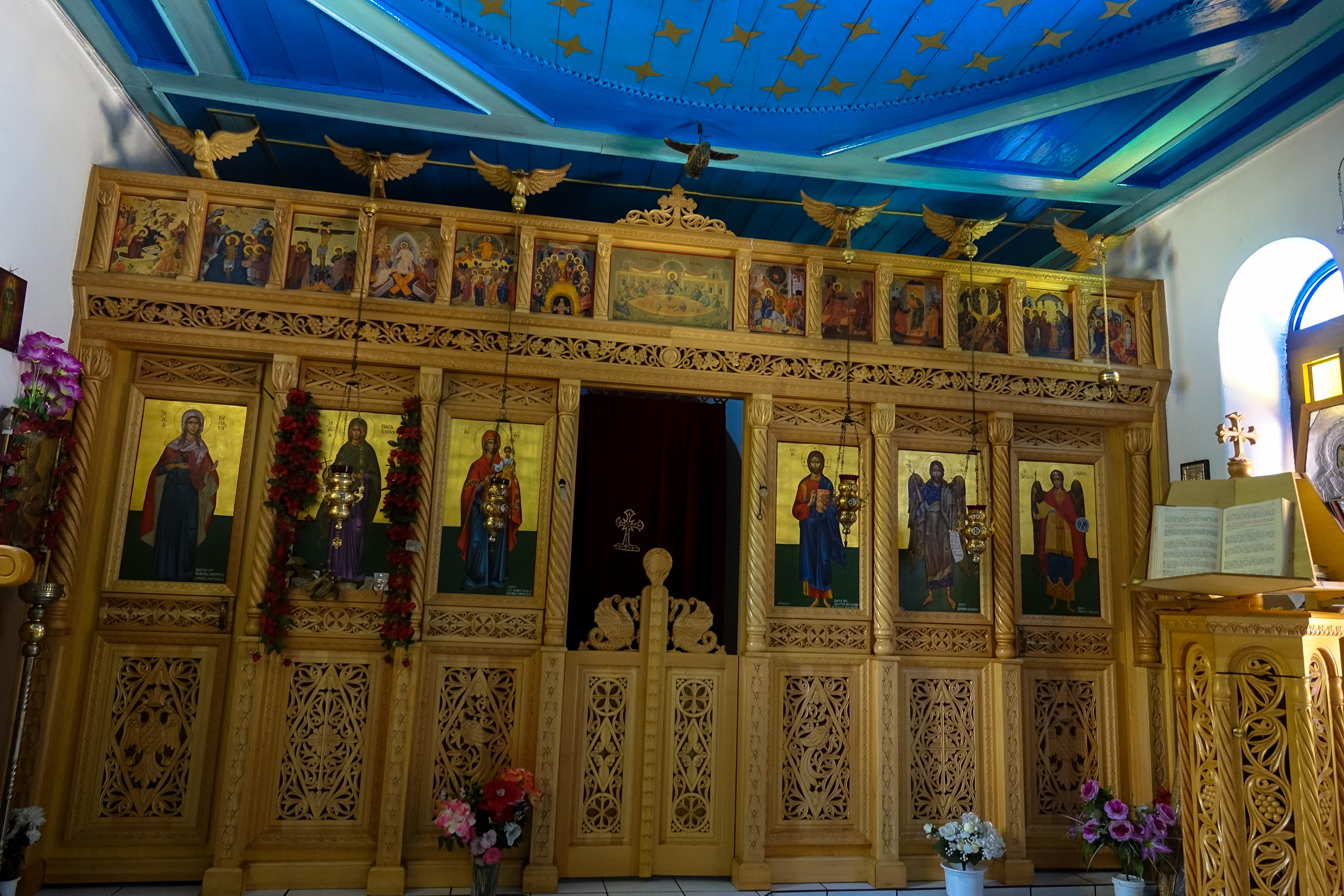 Die orthodoxen Kapellen sind immer mit vielen glitzernden Ikonen verziert.