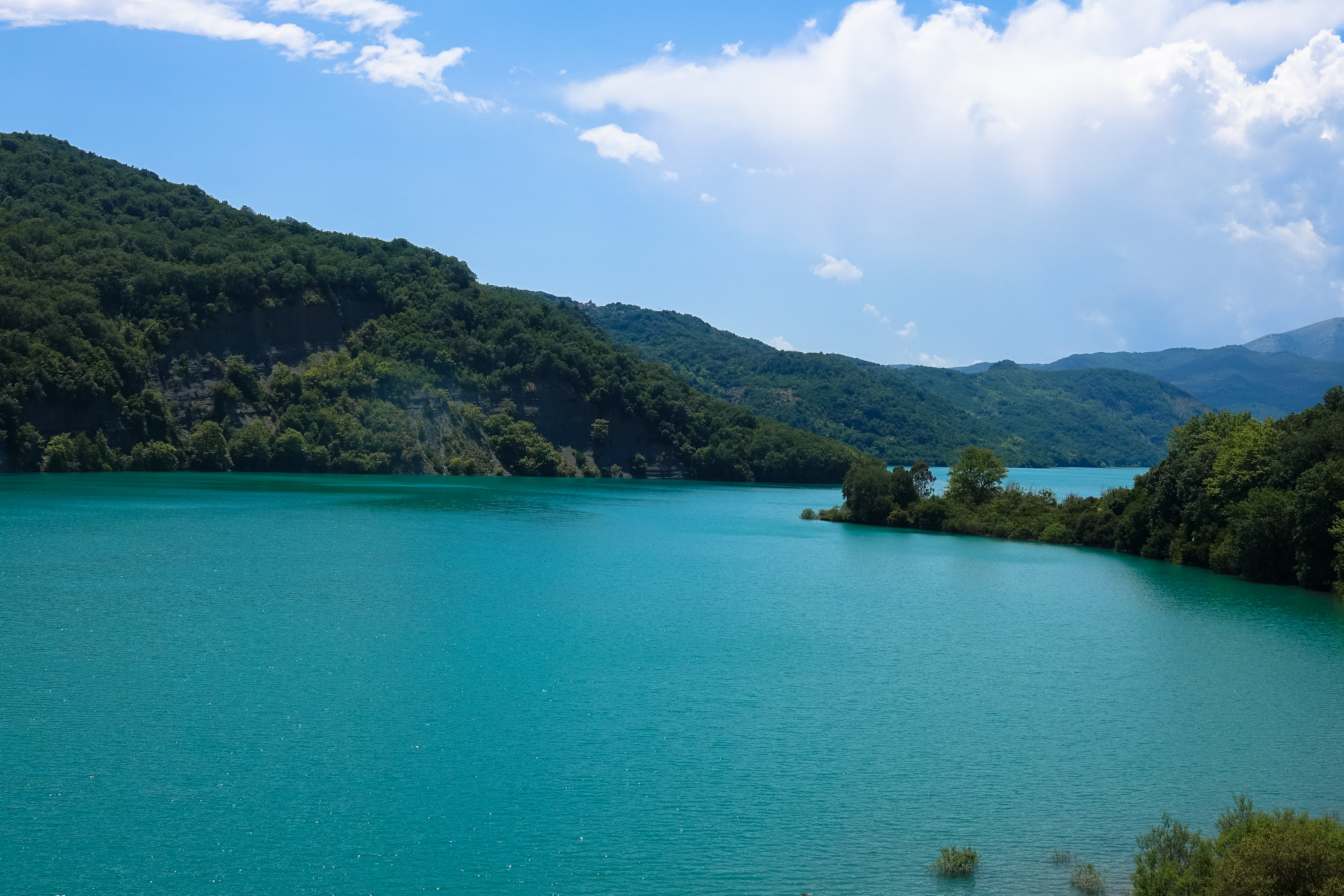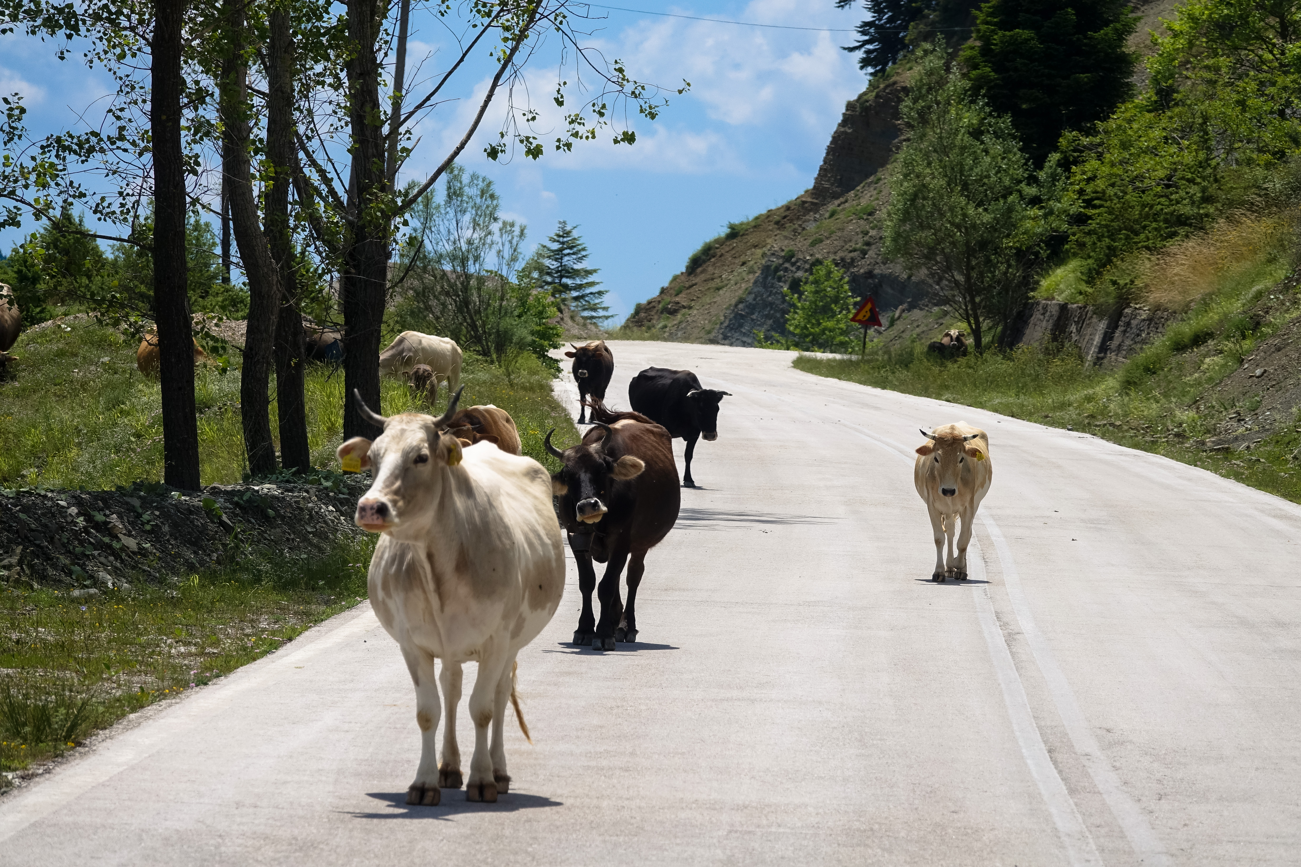 Unterwegs versperren immer wieder Kuhherden die Straße und einen schönen türkisfarbenen Bergsee sehen wir auch noch.