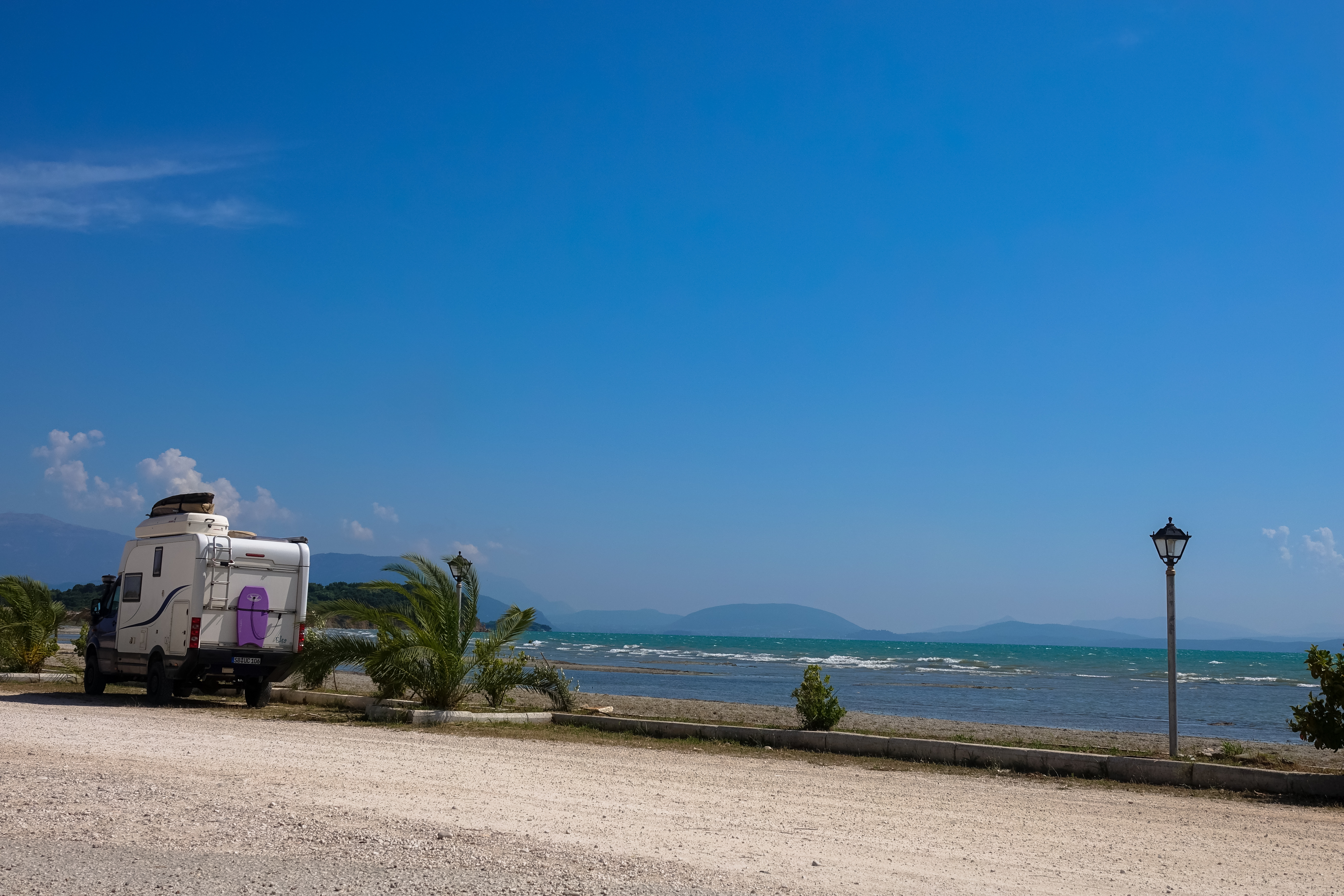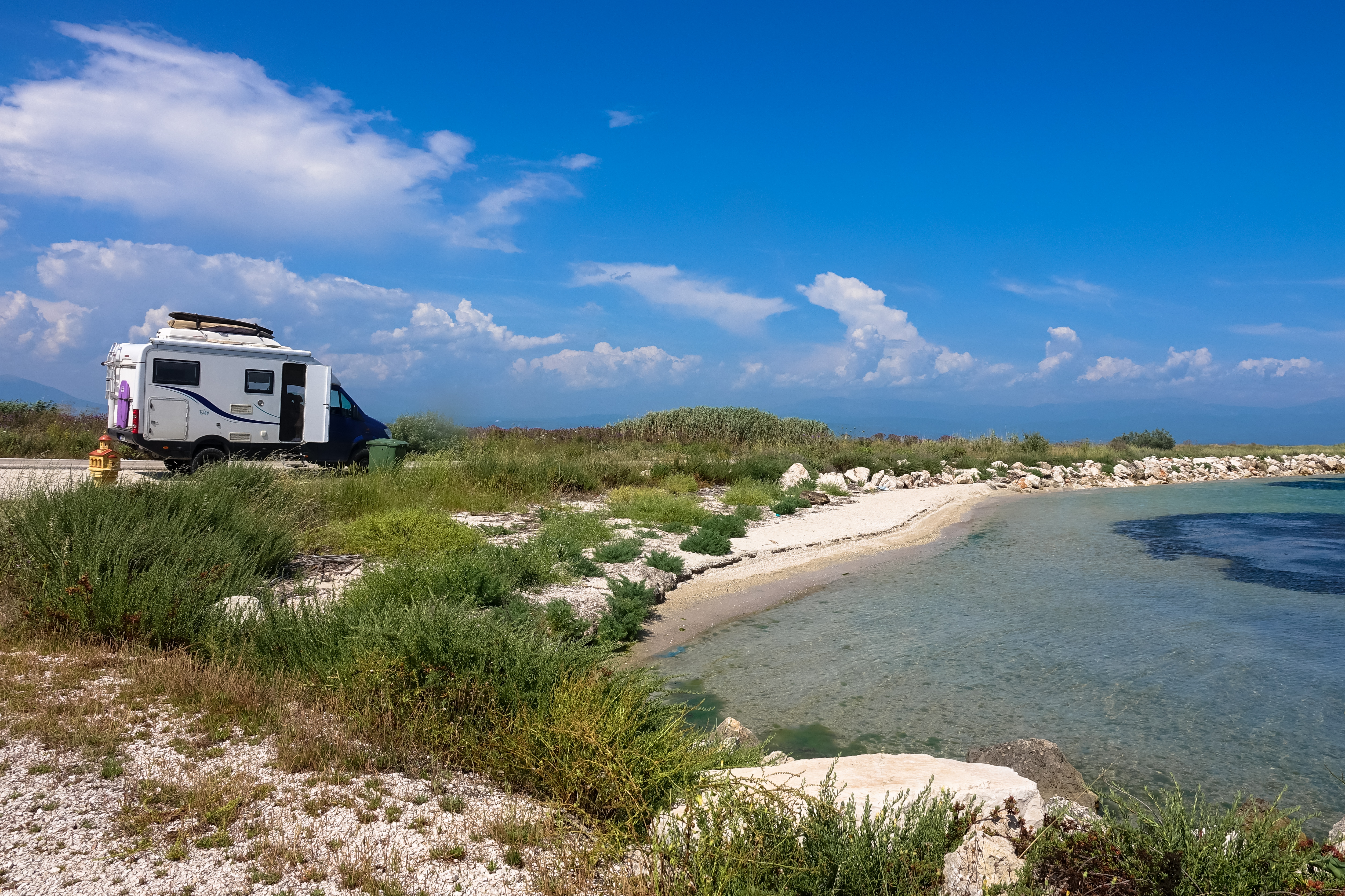 Unser Übernachtungsplatz für heute liegt direkt am Strand von Koronisia.