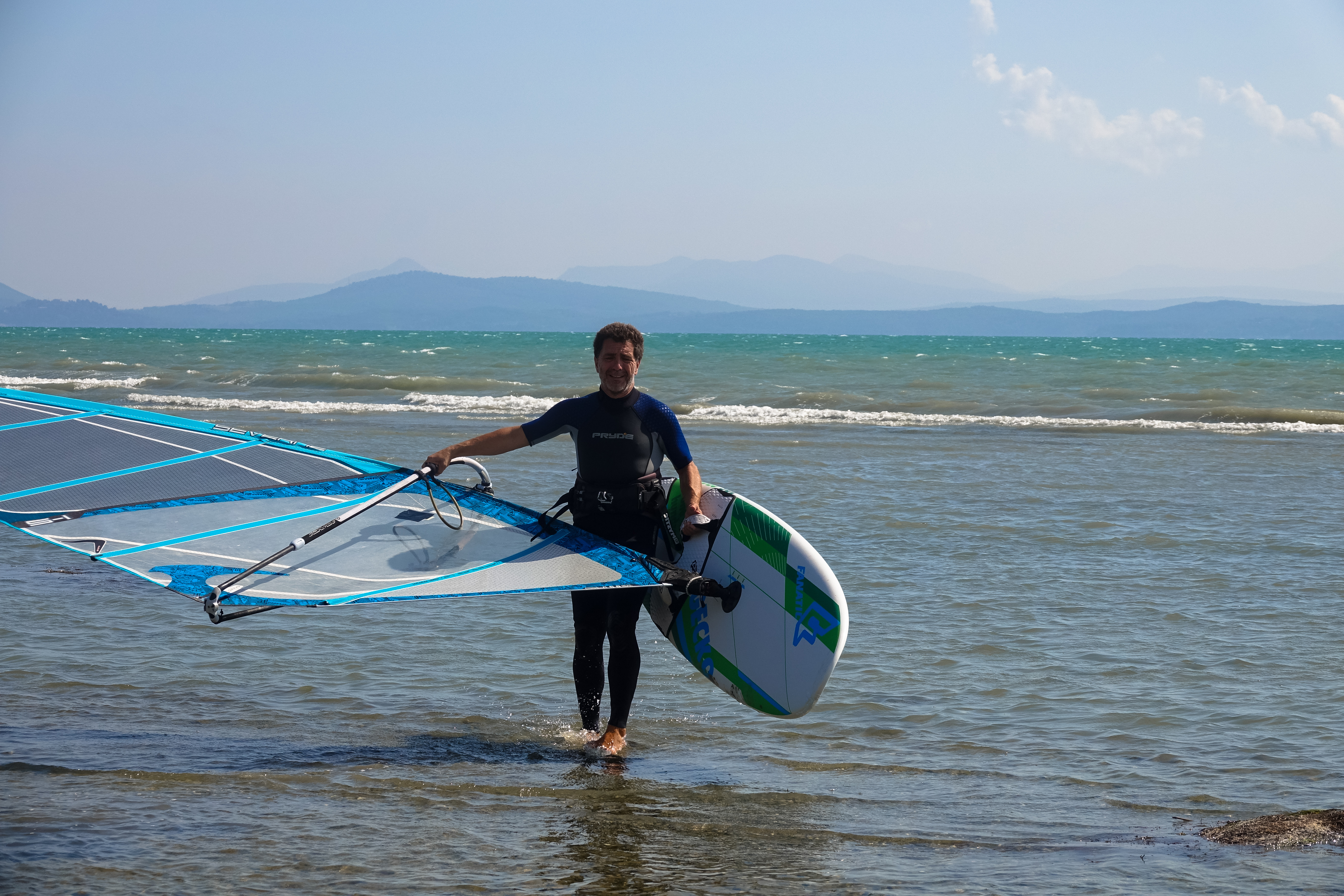Auf einer Halbinsel außerhalb von Koronisia, wollen wir uns niederlassen, entdecken aber einen tollen Surf- und Kitespot auf dem Weg dorthin. Tja! Klar, wie der Tag endet, oder?