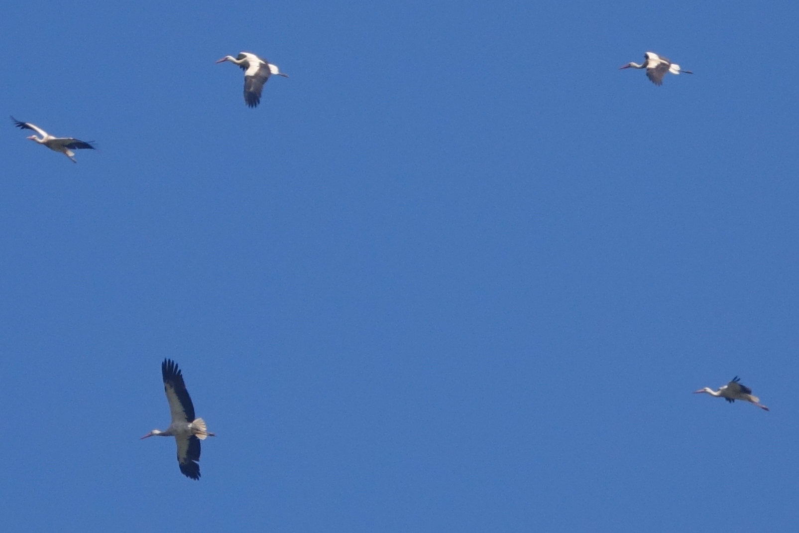 Aus welchem Grund auch immer, kreisen heute die Störche über uns. Zum Glück ist Carmen aus dem Alter raus in dem Storchenbisse gefährlich werden können.