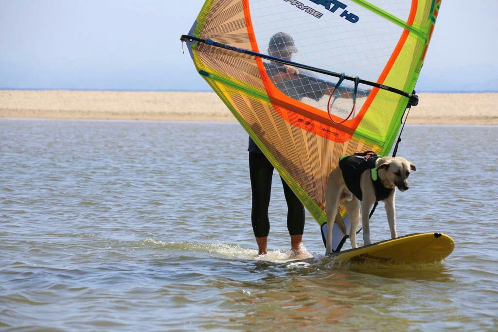 Unser Nachbar Holger macht nocht nur gute Smoothies, sondern surft auch in Begleitung seines Hundes Simba.