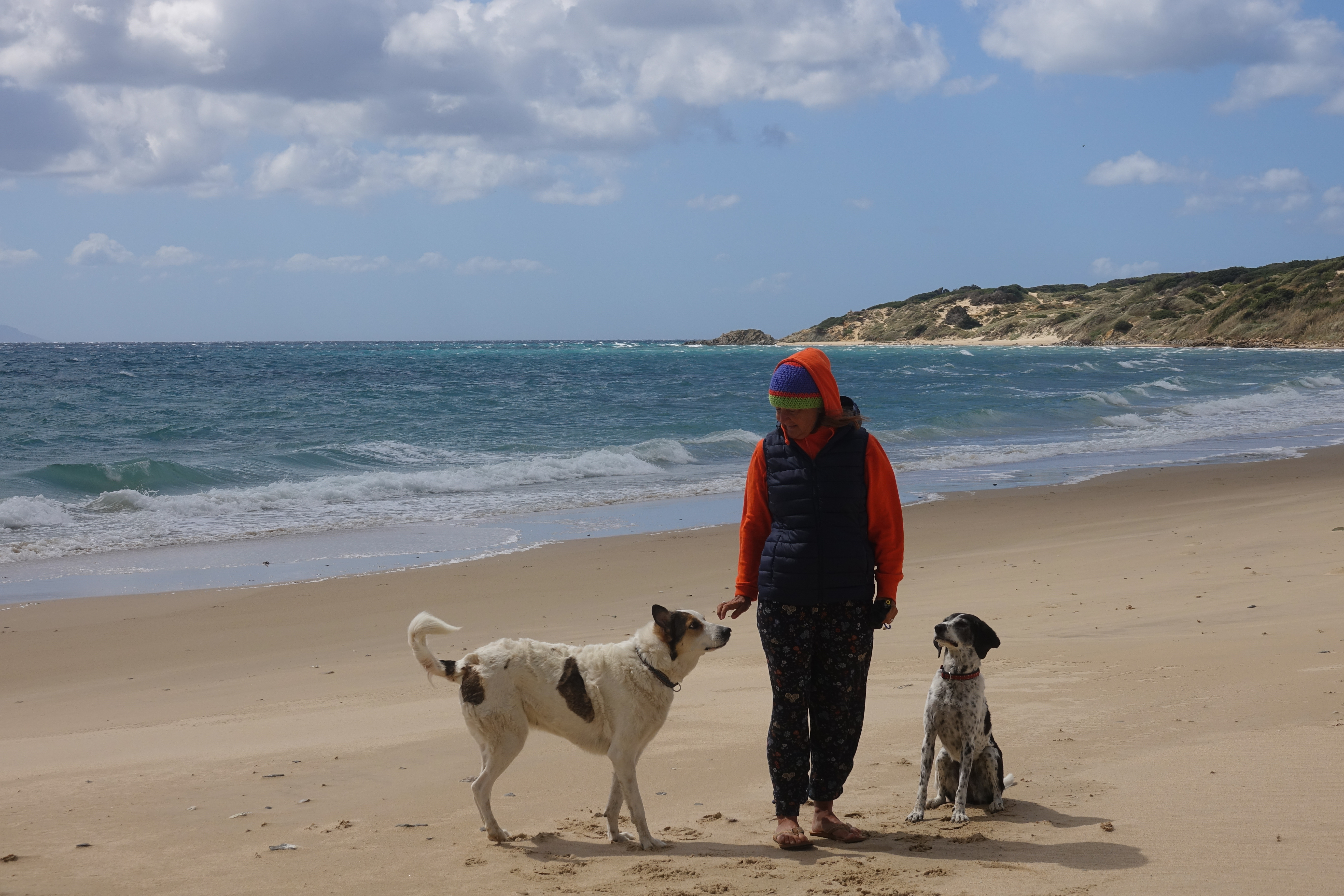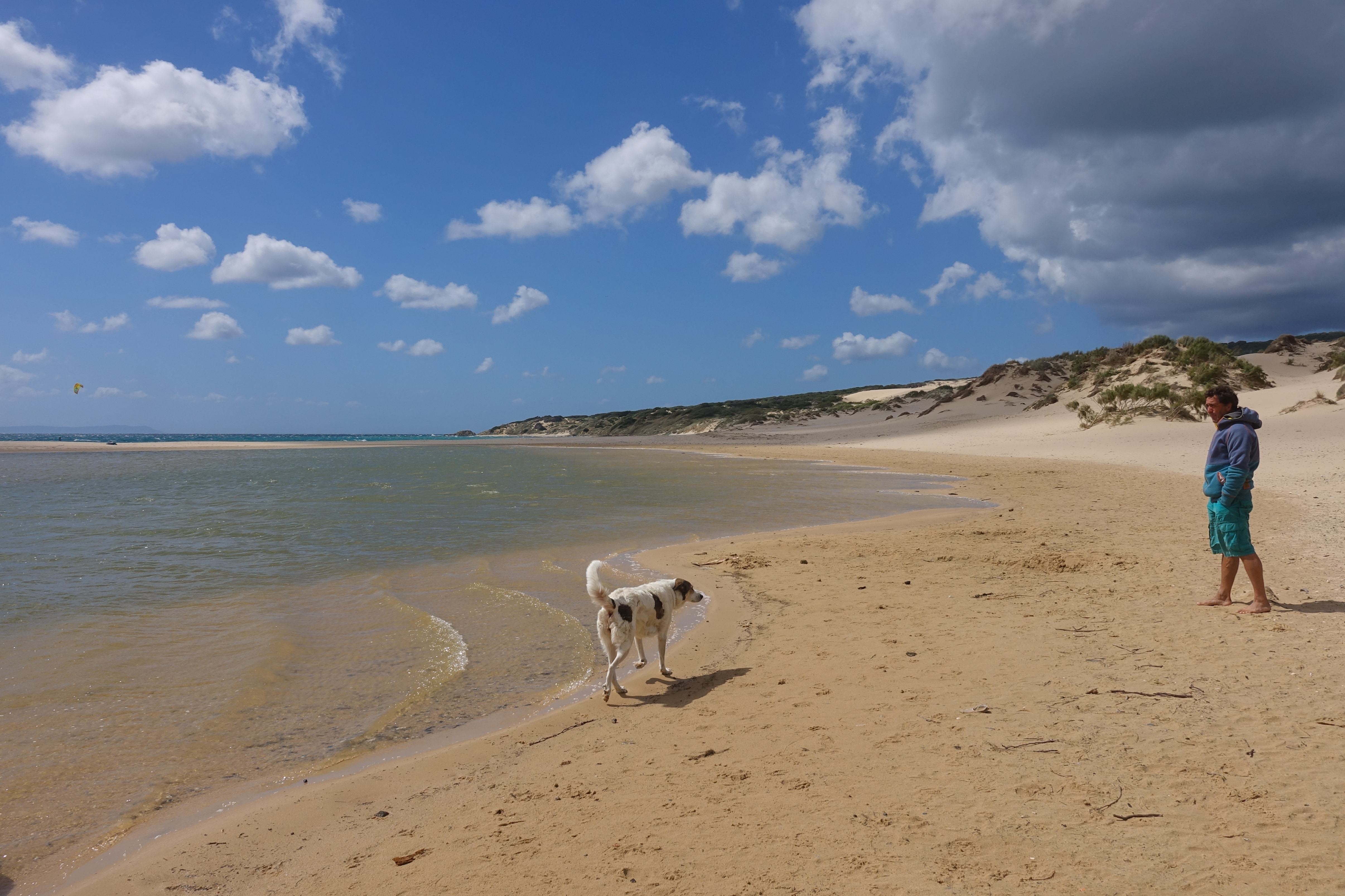 Normalerweise macht uns konstanter, leicht böiger Wind bis 34 Knoten nichts aus. Das hatten wir in Leucate schon einige Male, aber zwischen böig und böig gibt es noch Mal riesige Unterschiede. Und der Wind von heute war wirklich nicht mehr witzig. Das merkt man auch daran, dass der Parkplatz fast vollständig leer ist. Uwe hat kurz sein Glück versucht, das wird dann unter Sammeln von Erfahrungen abgespeichert. Für Strandspaziergänge und einen Sundowner hat es aber trotzdem noch gereicht und wir jammern mittlerweile auf hohem Niveau. In Holland würde man dieses Wetter im Sommer als tollen Tag verbuchen.