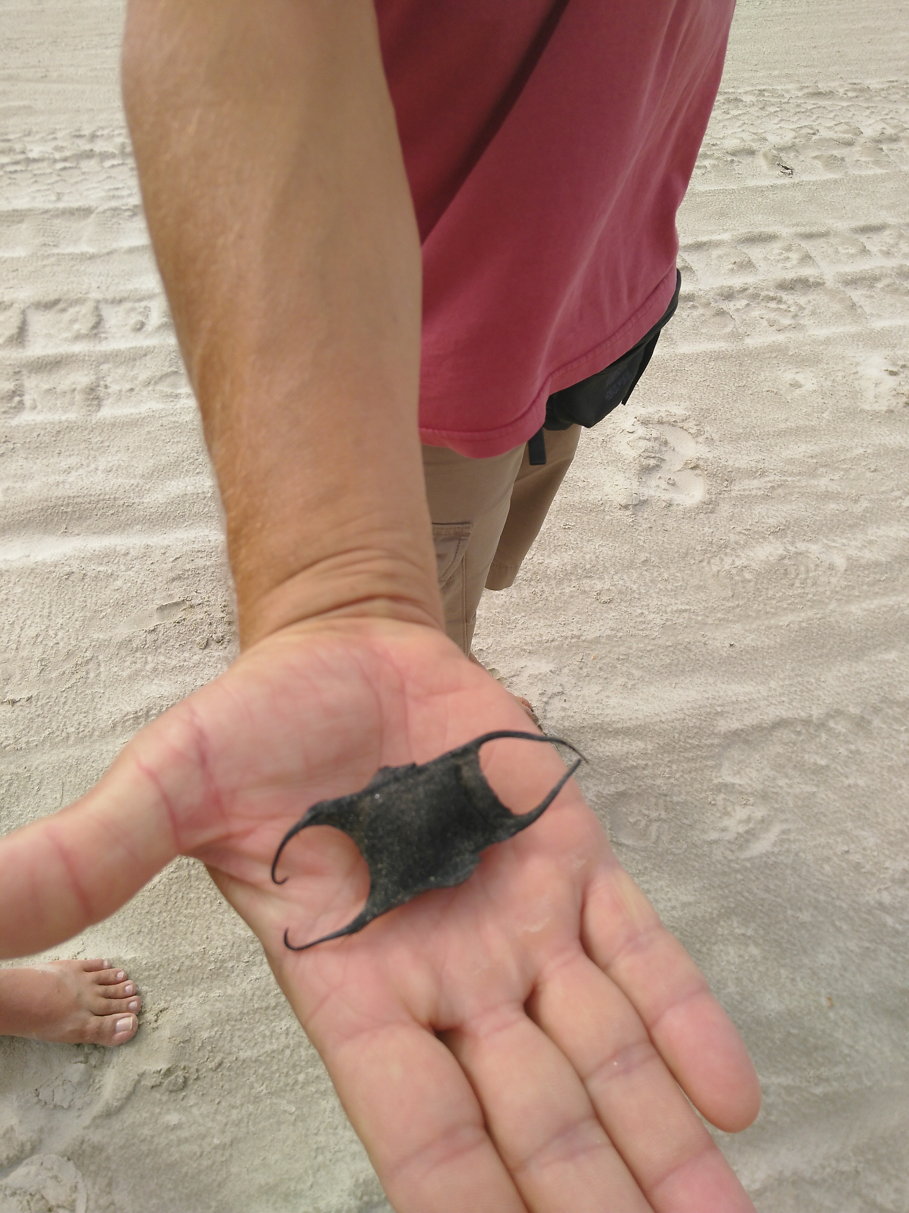 Bei einem Strandspaziergang entdecken wir ein Kunstwerk, das aus Strandgut erbaut wurde.