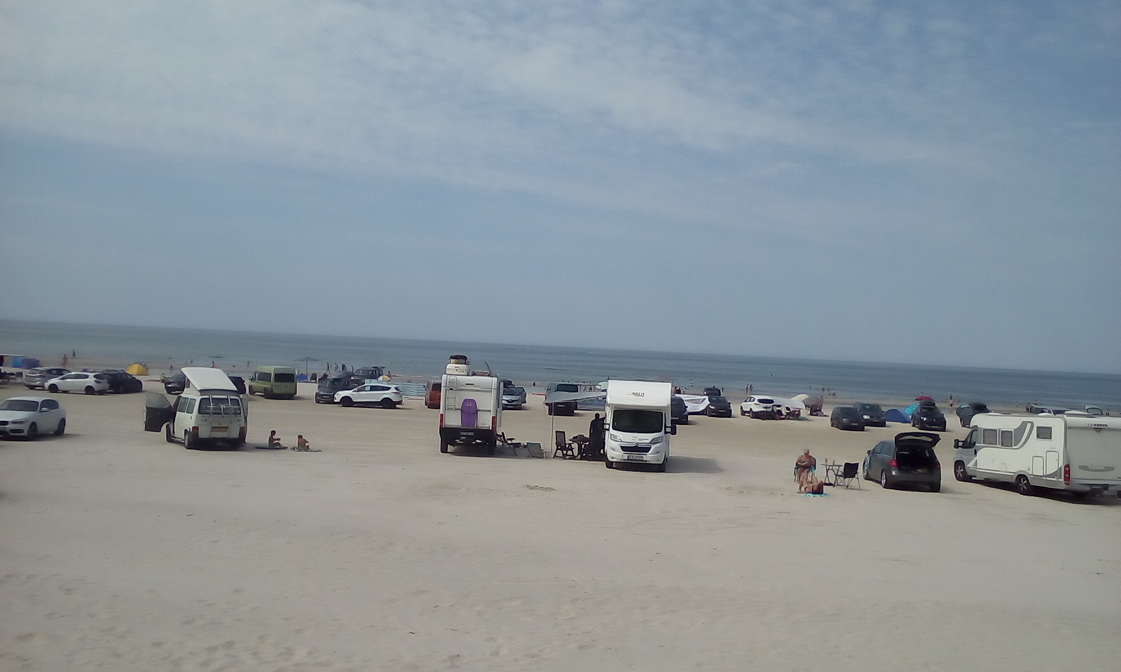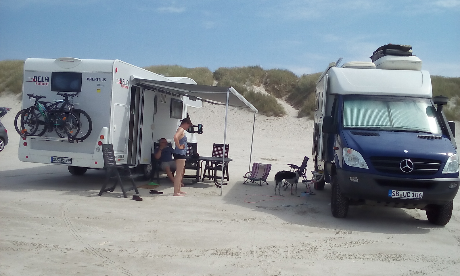Heute ist es endlich soweit. Wir fahren zum Vejersstrand. Leider ist es hier so voll, wie wir es noch nie erlebt haben. Für dänische Verhältnisse ist es zur Zeit auch sehr heiß, nämlich 32 Grad.