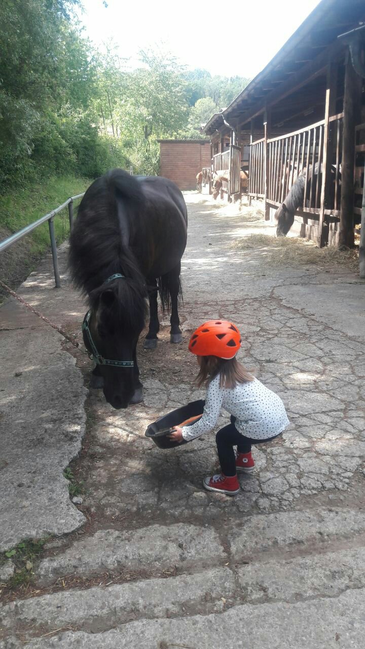 Zusammen mit Oma besuchte Mali auch die Isländer und hilft fleißig mit bei der Versorgung der Tiere.